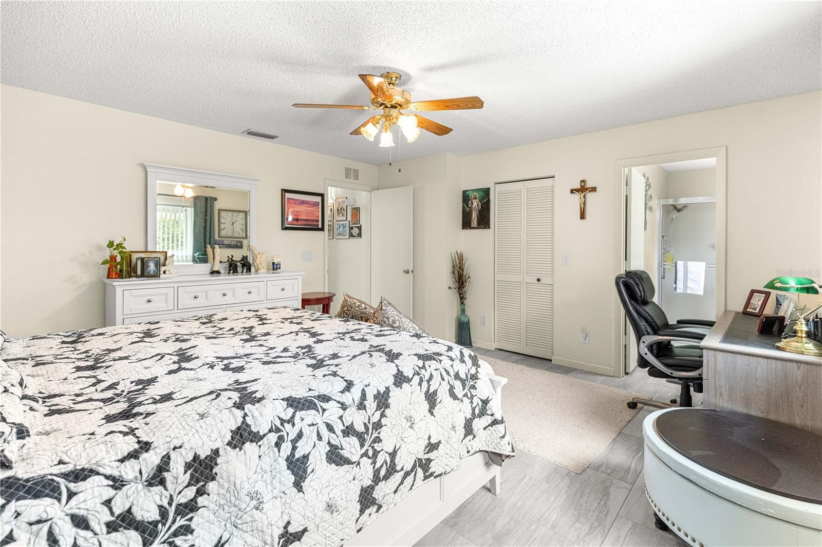 - Ceiling Fan(s), Eat-in Kitchen, Living/Dining Room, Main Level Primary, Thermostat, Walk-In Closet(s)