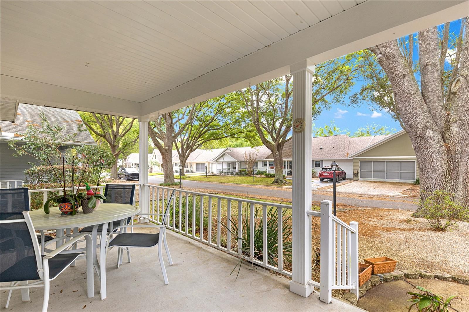 This Philadelphian is located in the much sought-after 55+ community of On Top of the World. It's on a pretty tree-lined street and ready for new owners. The front porch is the perfect spot for your morning coffee and to greet the day. Once inside you will see the beautiful, neutral tile flooring throughout the home. The kitchen has multiple updates such as stainless steel appliances, granite counter tops and white shaker cabinets with an eat in space. The enclosed lanai under heat and air gives extra living space. Primary bedroom has enough space for a king sized bed, and a spacious walk-in closet. The primary bath has a pretty, newer single sink vanity and step-in shower. The second bedroom is perfectly sized for guests and second bath features a step in shower and newer vanity. This community has over 150 different clubs, golf cart access to grocery store, restaurants and shopping, multiple pools and recreation facilities, 3 golf courses and so much more. Don't wait to call for your appointment to view today!