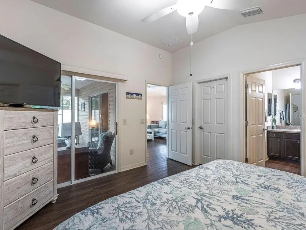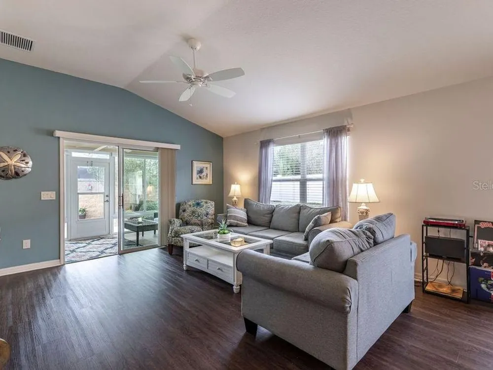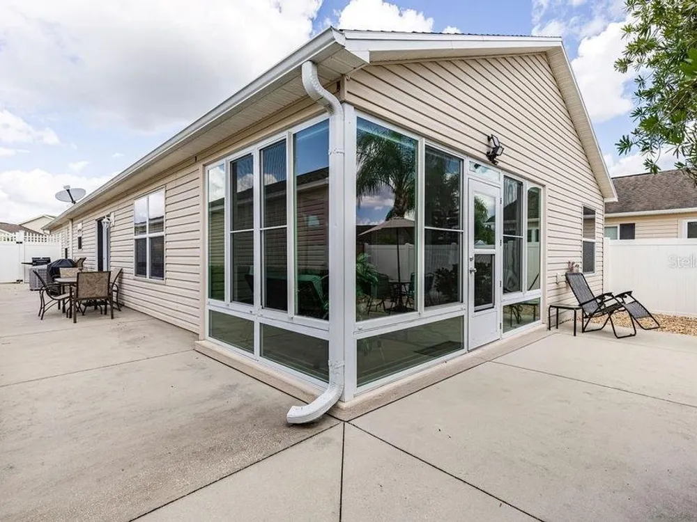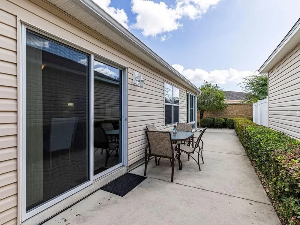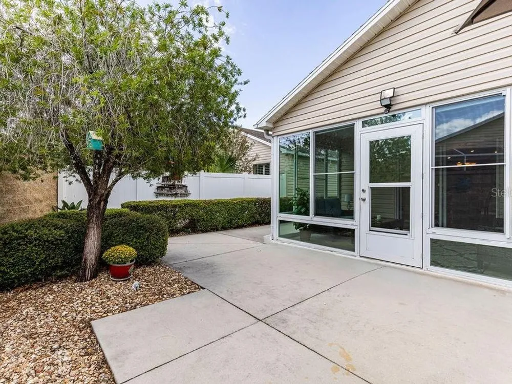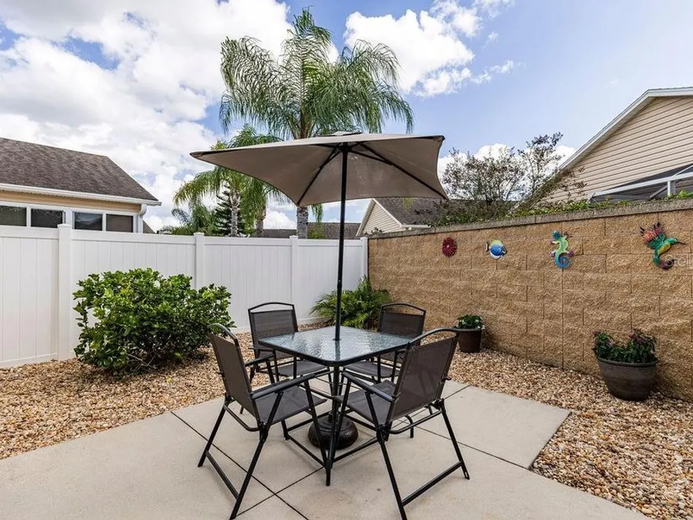 Welcome Home to Your Private Paradise in The Villages! Tucked inside the highly desirable & sought-after Amber Villas in the Beautiful and Popular Village of Charlotte, this beautifully maintained 3-bedroom, 2-bath Bonifay Model Courtyard Villa is the perfect blend of comfort, privacy, and low-maintenance living — and yes, it’s a dream come true for dog owners! Step through the screened front porch and into a light-filled open floor plan featuring luxury vinyl plank flooring throughout (no carpet), vaulted ceilings, and a spacious kitchen with ample cabinetry, pull-out shelving, pantry closet, and a breakfast bar — ideal for everyday living or entertaining friends. The primary suite offers direct access to the lanai and includes a Roman walk-in shower, dual vanities, and a large walk-in closet. What truly sets this home apart is its fully fenced, completely private backyard — perfect for letting your pets run free in total safety. The glass-enclosed lanai extends your living space year-round, providing the ideal spot to relax, read, or enjoy morning coffee while overlooking your beautifully landscaped courtyard. Additional highlights include a whole-home NOVA water filtration system, an indoor laundry room, and a covered front entry that adds charm and curb appeal. Located in a quiet, pet-friendly neighborhood, you’ll enjoy maintenance-free living and quick access (by golf cart!) to all that The Villages has to offer — championship and executive golf courses, recreation centers, pools, pickleball, fitness facilities, and nightly entertainment at the nearby town squares. If you’ve been searching for a private, pet-friendly retreat with a glassed-in lanai, modern upgrades, and The Villages lifestyle at your doorstep — this is it.
