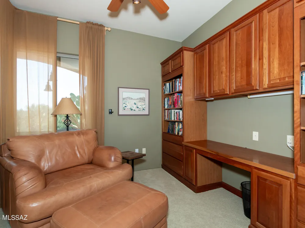Former model home! Available again! One owner. Just bring your suitcase and toothbrush! 2 bedroom 2 bath PLUS den/office. 18 inch tile in main areas. Carpet in bedrooms and den. Beehive gas fireplace in great room. Corian kitchen counters, stacked stone island, pendant lighting, pull outs in cabinets. Laundry room has separate hobby room to craft away at your leisure! Covered patio opens up to north facing backyard that backs to natural desert. This home is being sold FULLY FURNISHED including the refrigerator, washer, dryer, dishes, linens, all the things you need to just lock and go! Did I mention the seller is offering a home warranty? Peace of mind on the mechanicals of the home. Over $20,000 in furnishings included!