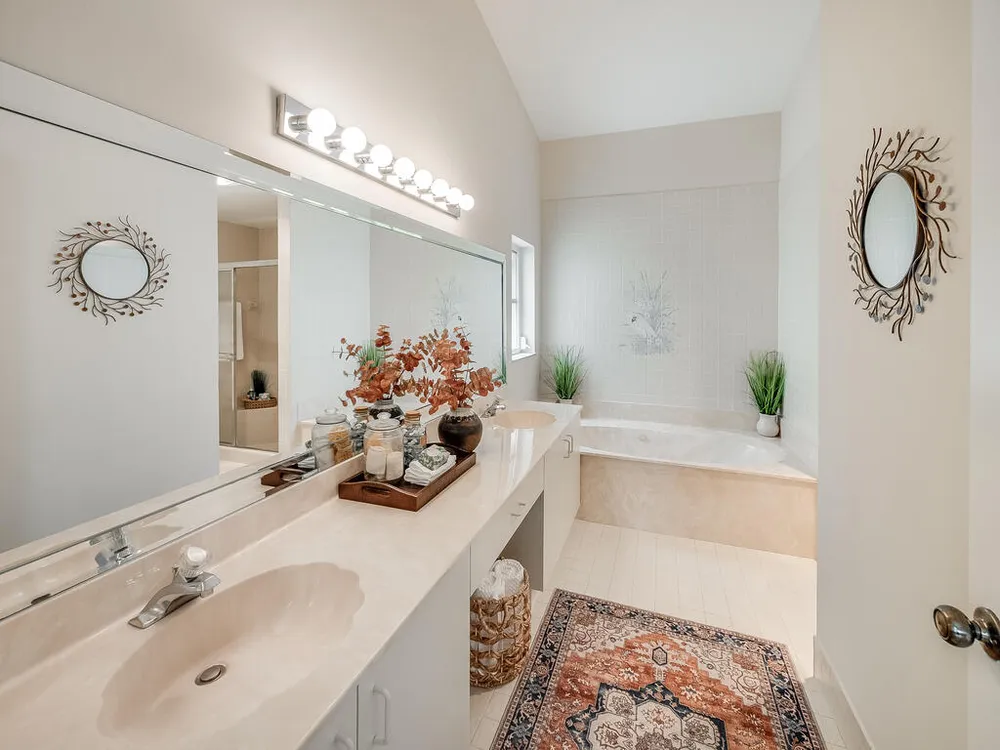 - Cathedral Ceiling(s), Entry Level Living Area, Skylights, High Ceilings, Walk-In Closet(s), Family Room, Living/Dining Room, Separate/Formal Dining Room, Dual Sinks, Primary Downstairs, Separate Shower, Bathtub, Hot Tub/Spa, Whirlpool, Storm Shutters