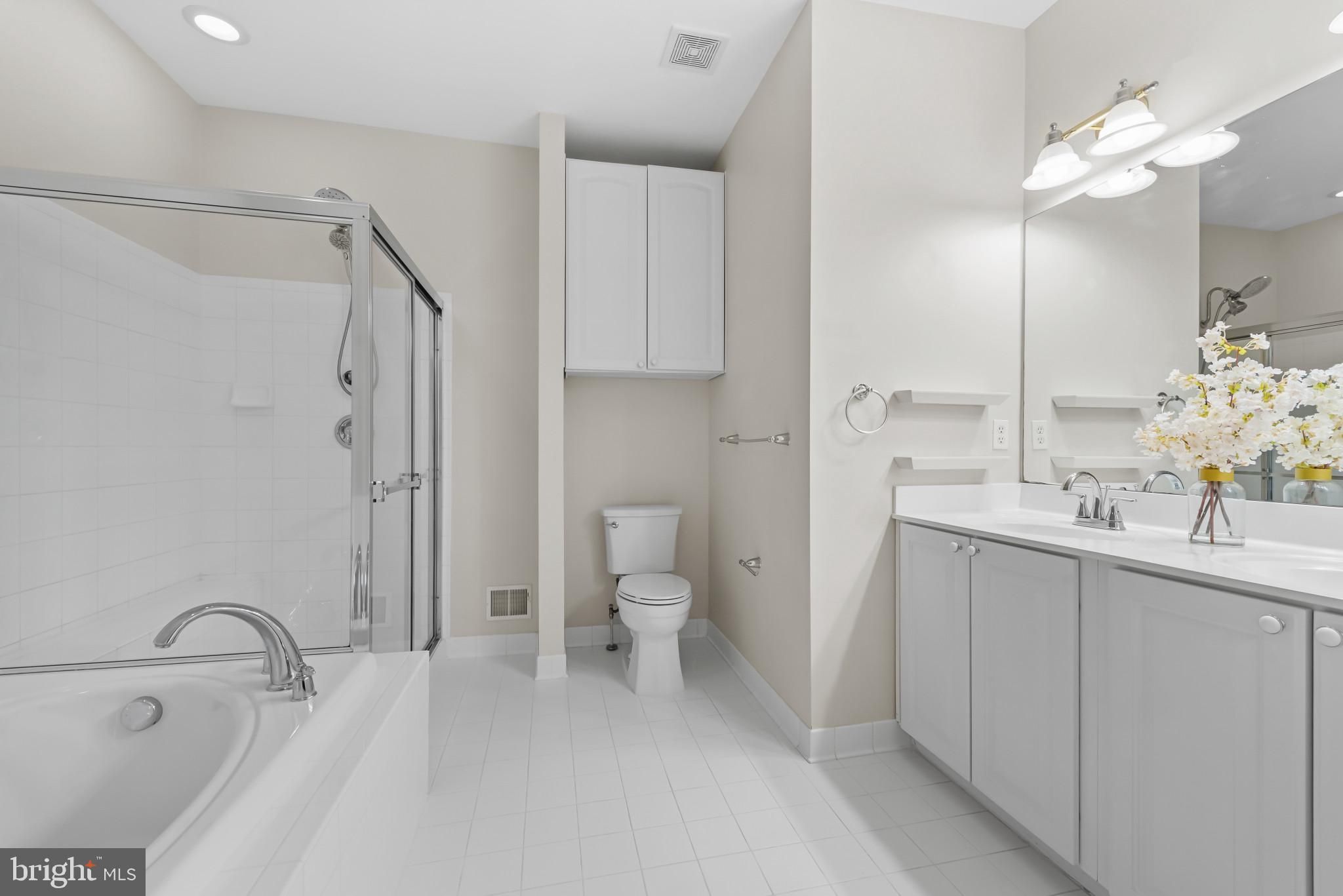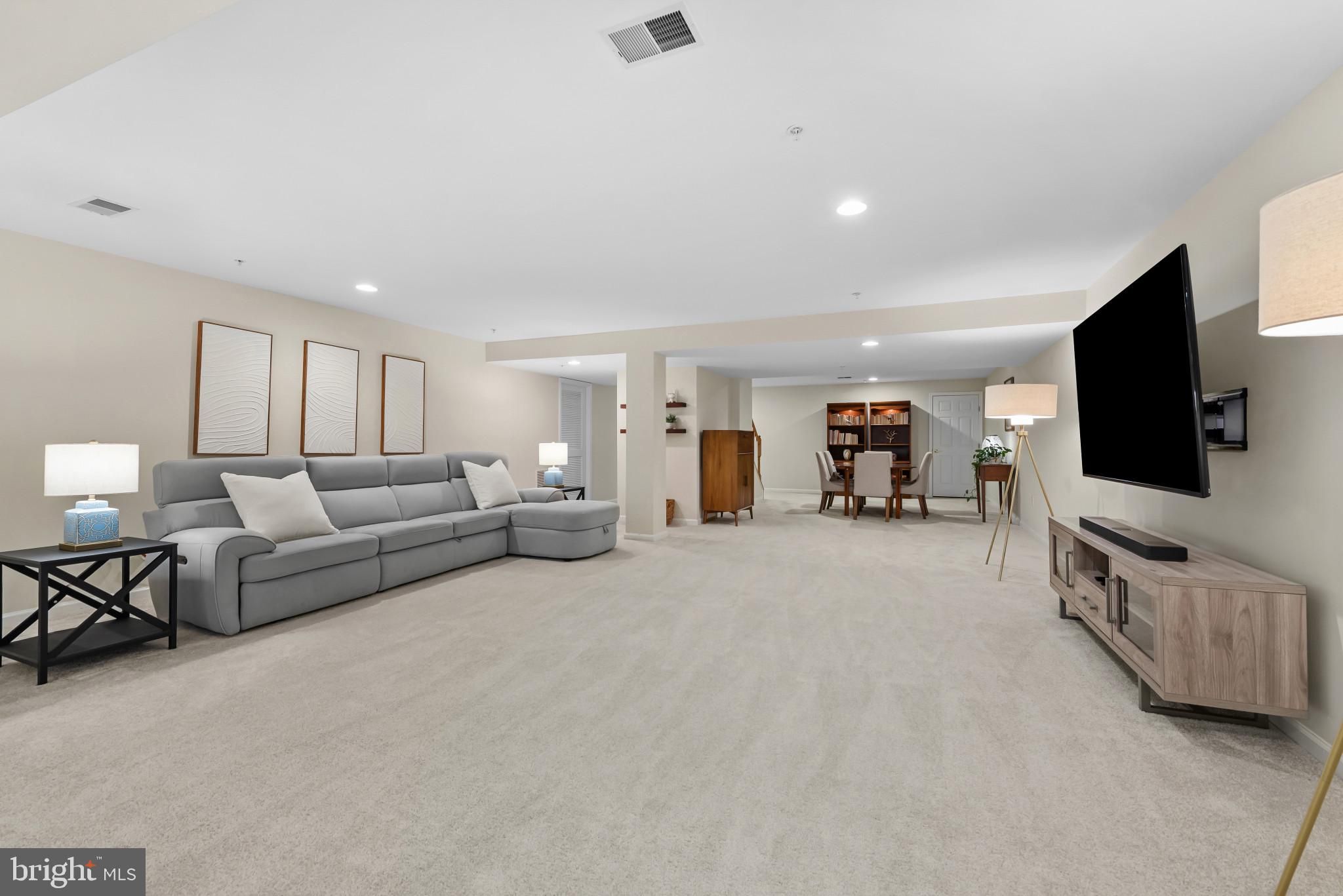 Elegant villa-style townhouse residence offering 3 bedrooms, 2 full bathrooms, 2 half bathrooms, 3,811 finished square feet, and a 1-car garage in desirable Villages at Woodholme. A beautifully landscaped front yard welcomes you into a bright, open, and airy interior where rich hardwood floors flow seamlessly throughout the main level. The inviting foyer opens effortlessly to the formal living room, highlighted by a soaring vaulted ceiling and upper windows that flood the space with natural light, while maintaining clear sightlines extending to the rear of the home. The eat-in kitchen is both stylish and functional, featuring rich cabinetry, stainless steel appliances—including double ovens, range, dishwasher, and microwave all replaced in 2023—and a cozy breakfast area with direct exterior access, perfect for everyday living and casual dining. Also on the main level is a convenient powder room and a spacious primary suite with hardwood flooring and a bright, well-appointed ensuite bath complete with a soaking tub, separate shower, and dual-sink vanity. The upper level offers a versatile loft overlooking the living space below, along with two generously sized, carpeted bedrooms, a bonus room ideal for a home office, and a full bathroom with double sinks. The partially finished lower level expands the living space with an open and expansive recreation room with carpeting, a half bathroom with a rough-in to be a future full, and a dedicated laundry room, along with an unfinished area offering ample storage or potential for future customization. Outdoor living is enhanced by a private deck with a privacy wall that steps down to the backyard, featuring a retaining wall and additional privacy wall. Recent updates include a hot water heater replaced in 2020 and HVAC replaced in 2023. A full roof replacement is scheduled for all homes in the community in the near future, and there is an annual $500 sewage/water fee.