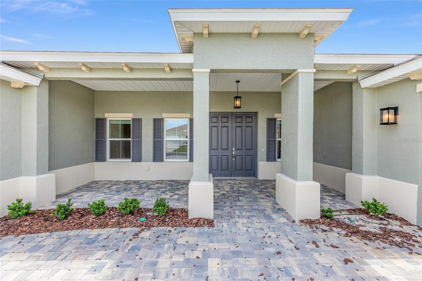 Welcome to the Aberdeen model in the desirable Balfour community at On Top of the World! This beautifully designed new construction home offers 3 bedrooms, 3 bathrooms, a flex room, and a 3-car split garage. The exterior features a paver driveway and walkway, along with elegant French entry doors that set the tone for what’s inside. Step into the open floor plan showcasing luxury vinyl flooring throughout the main living areas with tile in the bathrooms. A flex room with French doors at the front of the home provides the perfect space for a home office or den. The spacious living area features a 3-panel sliding glass door that opens to a screened lanai, extending your living space outdoors. The gourmet kitchen is a chef’s delight with a built-in oven and microwave, 5-burner cooktop with range hood, stainless steel refrigerator, walk-in pantry, large island, backsplash, quartz countertops, and under-cabinet lighting. The private owner’s suite is a retreat with French doors, five windows with blinds for abundant natural light, and a walk-in closet. The luxurious en suite includes his and her vanities with quartz counters, a zero-entry tiled shower with a built-in bench, and a linen closet. One guest bedroom also offers an en suite bathroom with a quartz vanity, a zero-entry tiled shower with a bench, and a walk-in closet. This home combines thoughtful design, modern finishes, and comfortable living—ready for you to make it your own.