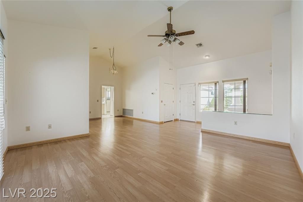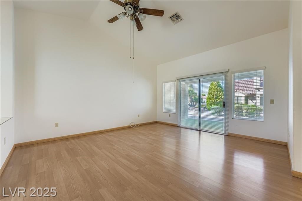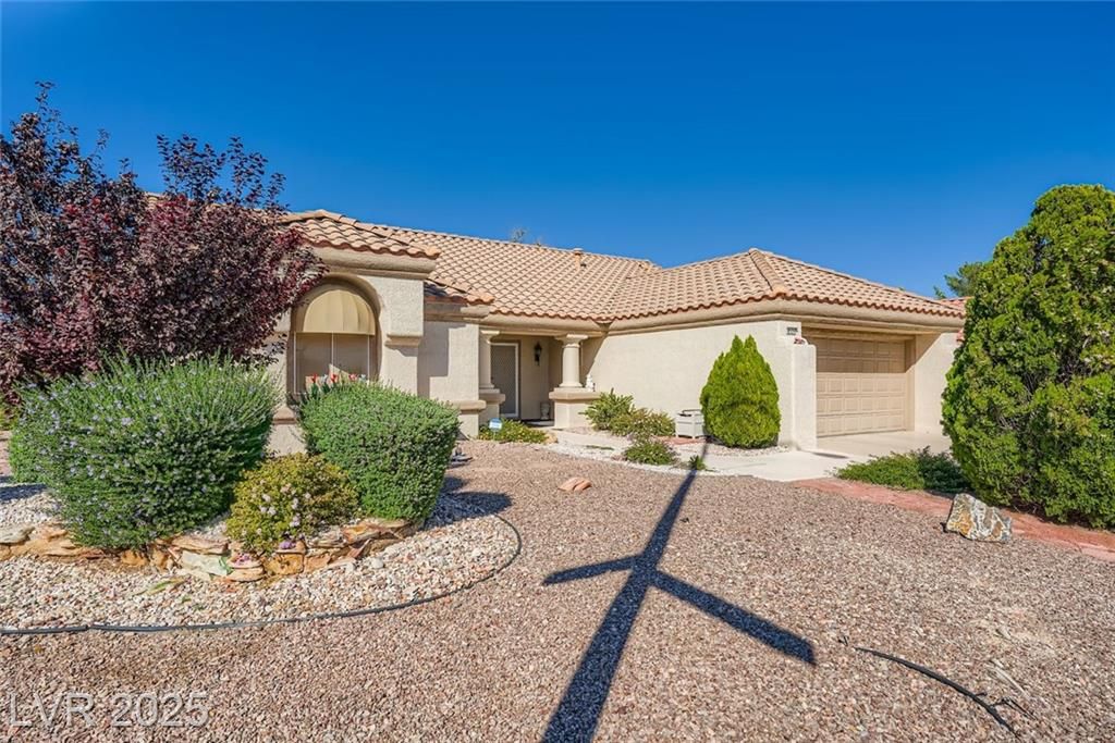 Single-story San Marino model in desirable Sun City Summerlin. This 2-bedroom, 2-bath home features an open, comfortable layout with manmade wood and tile flooring for easy care. Ceiling fans with lights throughout, new furnace, water softener, and updated sinks and faucets. The low-maintenance yard with mature shrubs offers easy upkeep and great curb appeal. Located in one of Las Vegas’ most popular 55+ communities with access to golf courses, pools, fitness centers, social clubs, and more. Move-in ready and well maintained—perfect for relaxed Sun City Summerlin living.