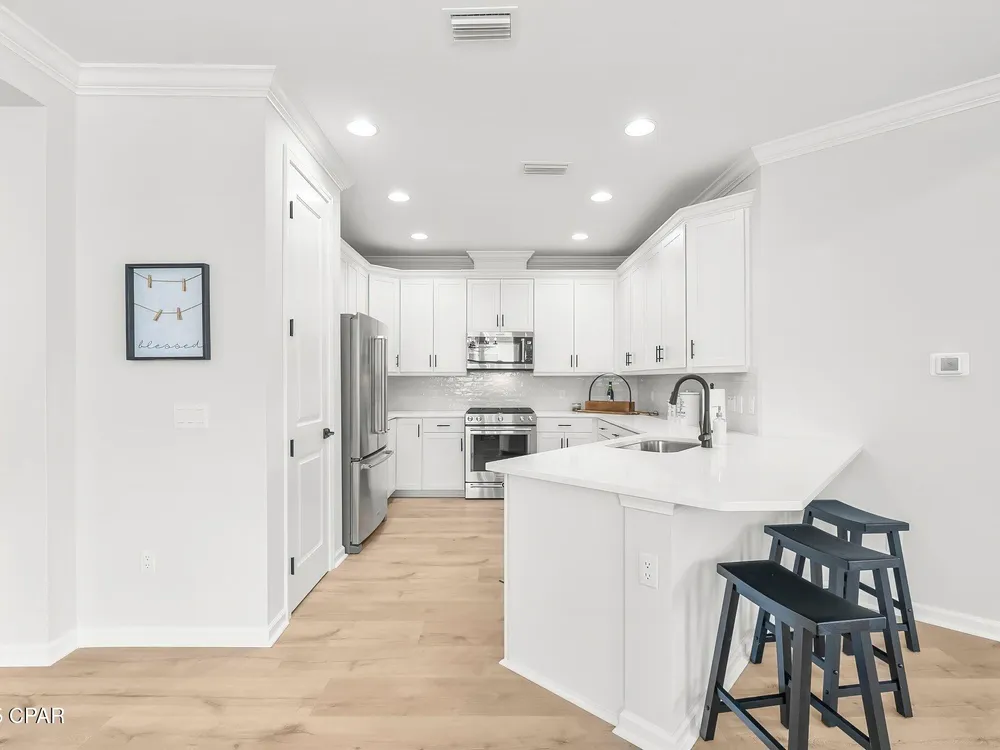 - Breakfast Bar, Crown Molding, Pantry, Window Treatments