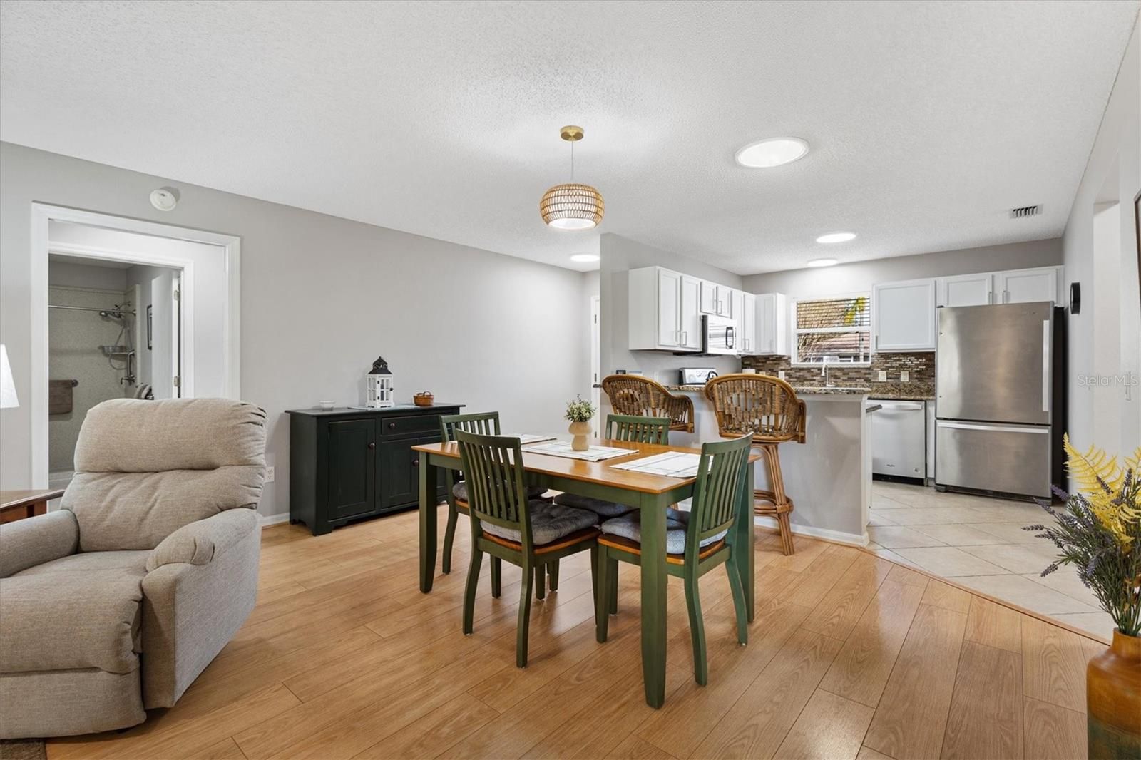 - Ceiling Fan(s), Eat-in Kitchen, Living/Dining Room, Open Floorplan, Main Level Primary, Solid-Wood Cabinets, Split Bedrooms, Stone Counters, Thermostat, Walk-In Closet(s), Window Treatments
