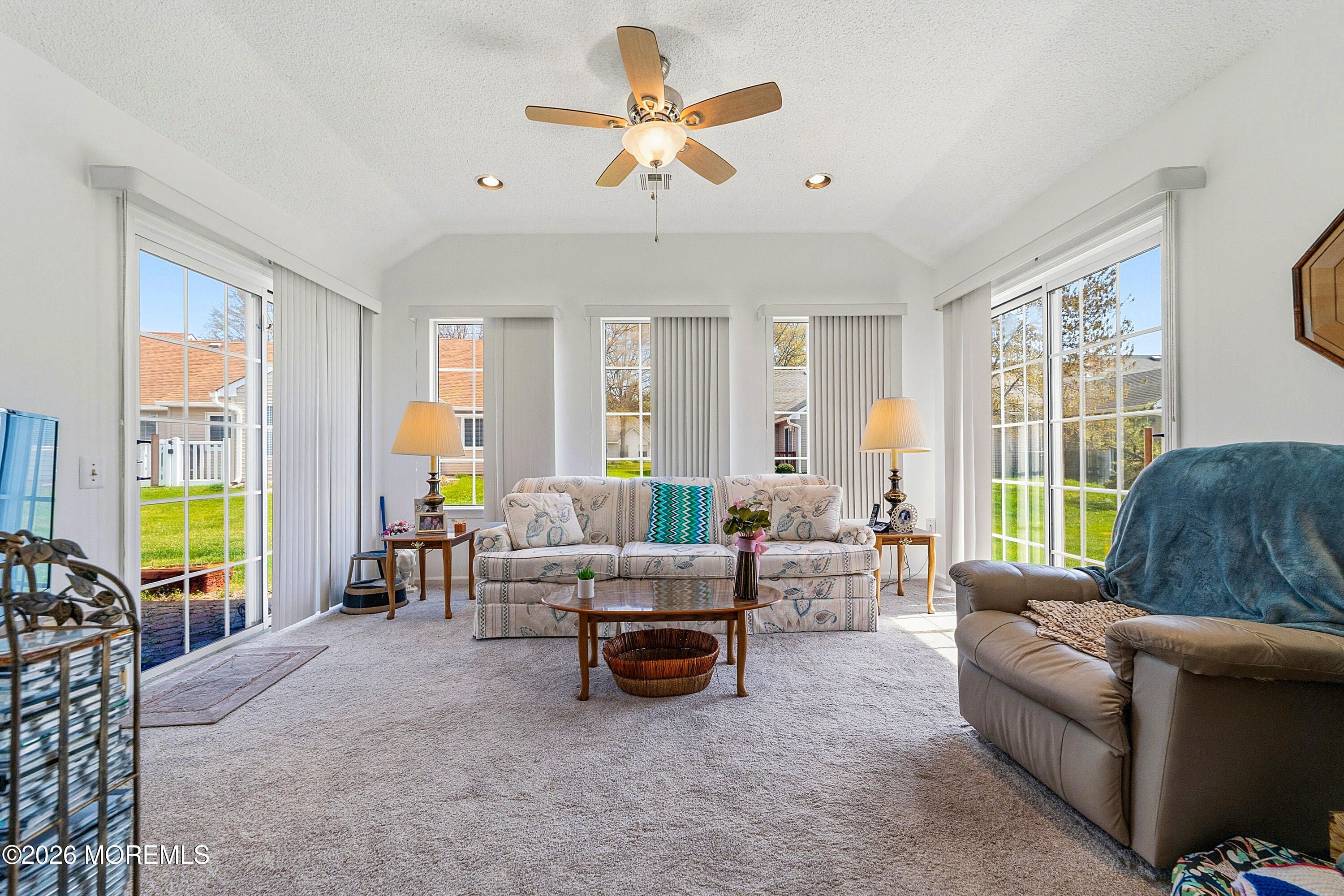 This is the one you've been waiting for! Beautifully maintained and thoughtfully designed, this charming home features two generously sized bedrooms and 1.5 baths, offering comfort and ease of living. Located in Clearbrook, a welcoming active adult 55+ community, residents enjoy a relaxed lifestyle in a vibrant and well established neighborhood. The spacious eat in kitchen flows seamlessly into a dedicated dining area and an inviting living space perfect for both everyday living and entertaining. A standout feature is the stunning enclosed sunroom, complete with cathedral ceilings and sliding doors that open to a private patio, creating a bright and relaxing retreat