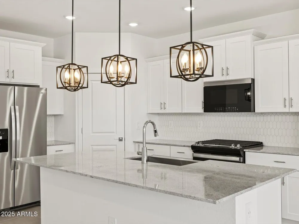 Brand new, energy-efficient home now ready! Entertain guests in the extensive great room, dining room and kitchen, or invite friends for a get together on the roomy patio. This kitchen has everything you need featuring white cabinets with hardware, granite countertops and a generous amount of tile complementing this spacious plan. Live where every day feels like a vacation—our vibrant community center features a thrilling waterpark, serene lap pool, full gym, climbing wall, and lush park spaces, all just steps from beautifully designed homes with modern touches like blinds, pendant lighting, and included washer, dryer, and fridge. Each of our homes is built with innovative, energy-efficient features designed to help you enjoy more savings, better health, real comfort and peace of mind.