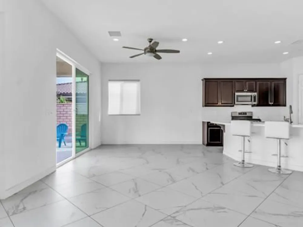 Save thousands with Seller financing to qualified buyers! No points to pay to bank! More house for the money in this community. Quick closing! Move-in Ready! Enviable Four Seasons at Terra Lago, 55+ Gated Community. Decorator's Dream Home, Painted Canyon Floor Plan. Huge House Small Price per Sq. Ft. 3 Bedrooms + 2.5 Baths + Office/Den can be 4th bedroom, + full 3-Car Garage, Insulated with lots of storage space & controlled attic fan, + 6-Parking spaces off street, oversized lot situated on a private, quiet, cul-de-sac street in Prime Location. South facing frontage. Surrounded by scenic mountain & hillside views. Luxurious Primary suite has panoramic windows, large walk-in closet, dual sinks, separate tub & shower. Gorgeous Gourmet Kitchen, Quartz island for entertaining, walk-in pantry, Stainless steel appliances, washer/dryer & refrigerator included. Great room, Large Glass doors open to 30 Ft. Covered Patio & Huge pool sized yard & Large Side yard is a gardener's delight. High Ceilings, Open, Airy, Light & Bright. Stunning 24'' Horizontal Veined Tile flooring and plush carpeting. Many upgrades! 6-Ceiling fans, Satin finished Hardware & faucets, Extra Large Laundry room with sink & cabinets. Energy efficient HVAC, Close to Clubhouse. Enjoy all the many amenities & activities The Lodge has to offer, Gym, fitness center, 2 pools, indoor & outdoor, + spa, BBQ area, Billiards, bocce court, tennis, pickleball, nearby Golf, Casinos, restaurants, shopping & Palm Springs Int'l Airport. Location! Location! Location! Don't let this one get away!