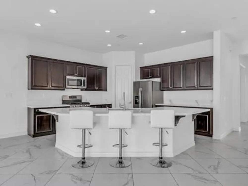 - Gas Cooktop, Microwave, Gas Oven, Vented Exhaust Fan, Refrigerator, Disposal, Dishwasher, Tankless Water Heater