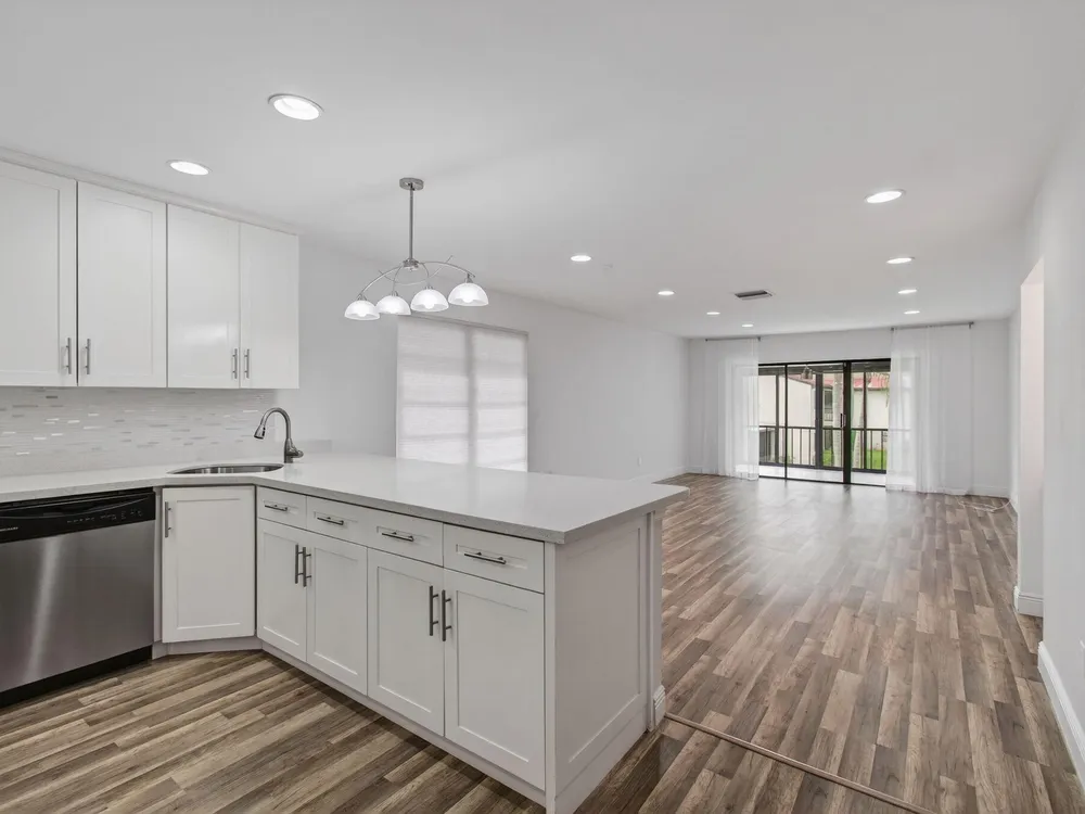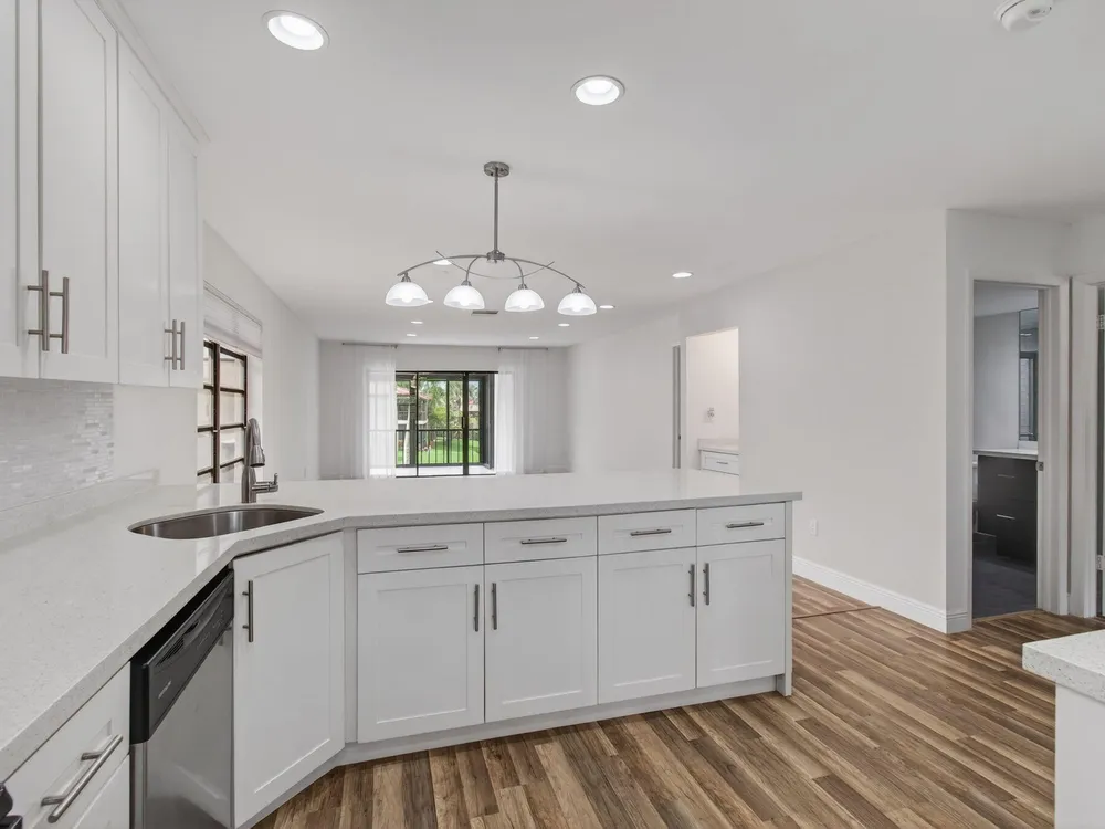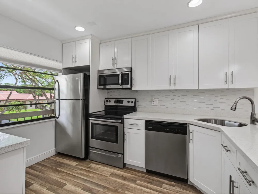 Gorgeously updated 2BR/2BA corner unit with private entrance in the sought-after 55+ gated community of Fairways of Boca Lago. This bright, airy home features an open-concept layout with Calacatta quartz countertops, custom cabinetry, and high-end finishes throughout. The spacious primary suite includes a luxurious bath with marble flooring, dual vanities, and a shower/tub combo accented with designer tile. Primary suite also features Three oversized closets offering unmatched storage. The guest bath is equally impressive with a walk-in glass shower and modern stone detailing. You'll love the upgraded flooring, oversized baseboards, and fresh paint throughout. The enclosed balcony is a peaceful retreat, offering 180 degree water front views and floor-to-ceiling windows READ MORE--->>>>>>