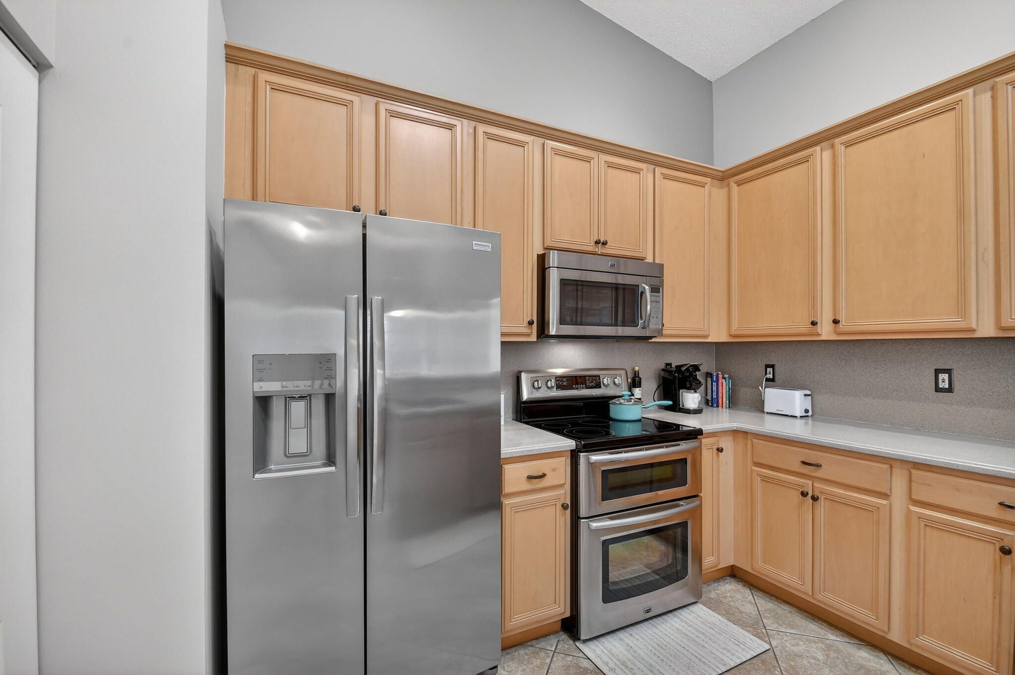 This very desirable end-unit villa is open,bright,& tastefully decorated in neutral tones.Tile flooring throughout.The 3rd bedroom can also serve as a den or office,& the 2nd bedroom features built-in closet organizer.The kitchen is highlighted by a skylight,stainless steel appliances,& a brand-new refrigerator.The spacious primary suite has a walk-in closet w/ a new ceiling fan & bath w/ walk-in shower.The expansive great room featuring both living/dining spaces includes a built-in bar,for entertaining.Step outside to your private,covered,& screened-in patio for year-round enjoyment.The community has a new clubhouse,a well-equipped fitness center, two pools,pickleball & tennis courts,& a variety of clubs & activities.Conveniently located near shopping,dining,Turnpike,& much more.