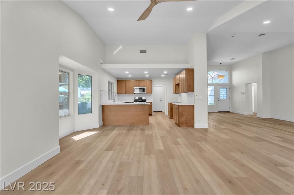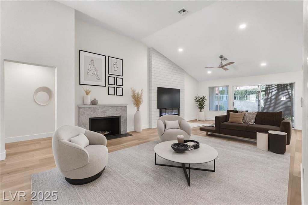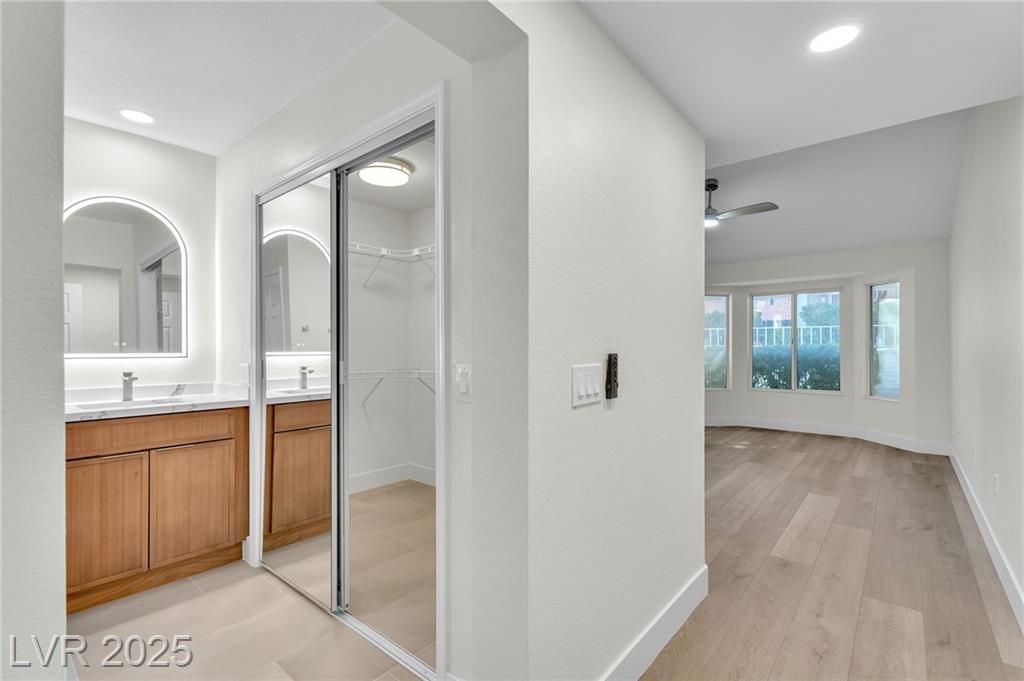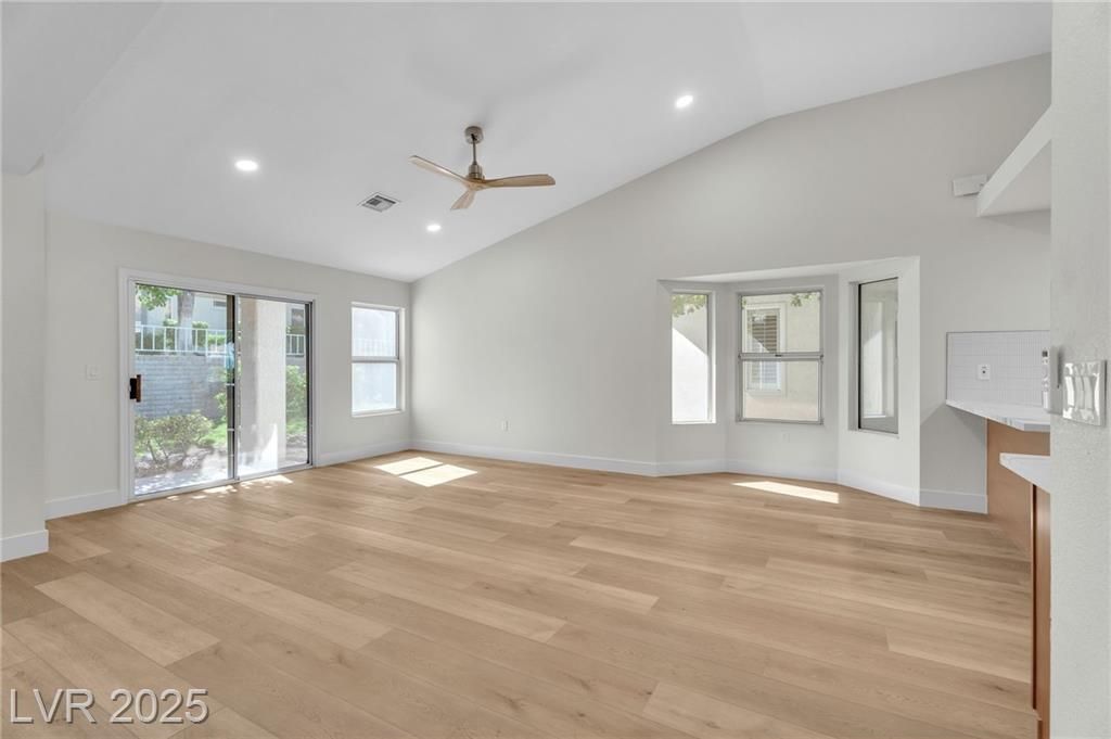 SELLER TO PAY NORA FEE if property closes before 12/31/25!!Linden Model Townhouse located in the highly sought-after 55+ Sun City Summerlin golf course community, this upgraded townhouse offers two bedrooms and two bathrooms. The kitchen is equipped with updated cabinets, quartz countertops, and stainless steel appliances, providing a modern and functional space. The master bathroom features a custom shower, double vanity, and a walk-in closet, while the secondary bathroom includes a tub/shower combo for added convenience. The home is finished with vinyl plank flooring throughout, offering durability and style. Residents enjoy the full range of amenities and benefits that come with living in Sun City Summerlin.