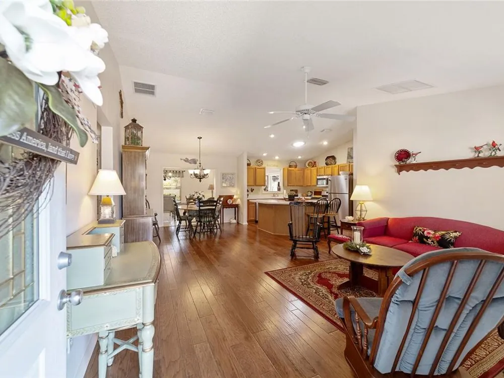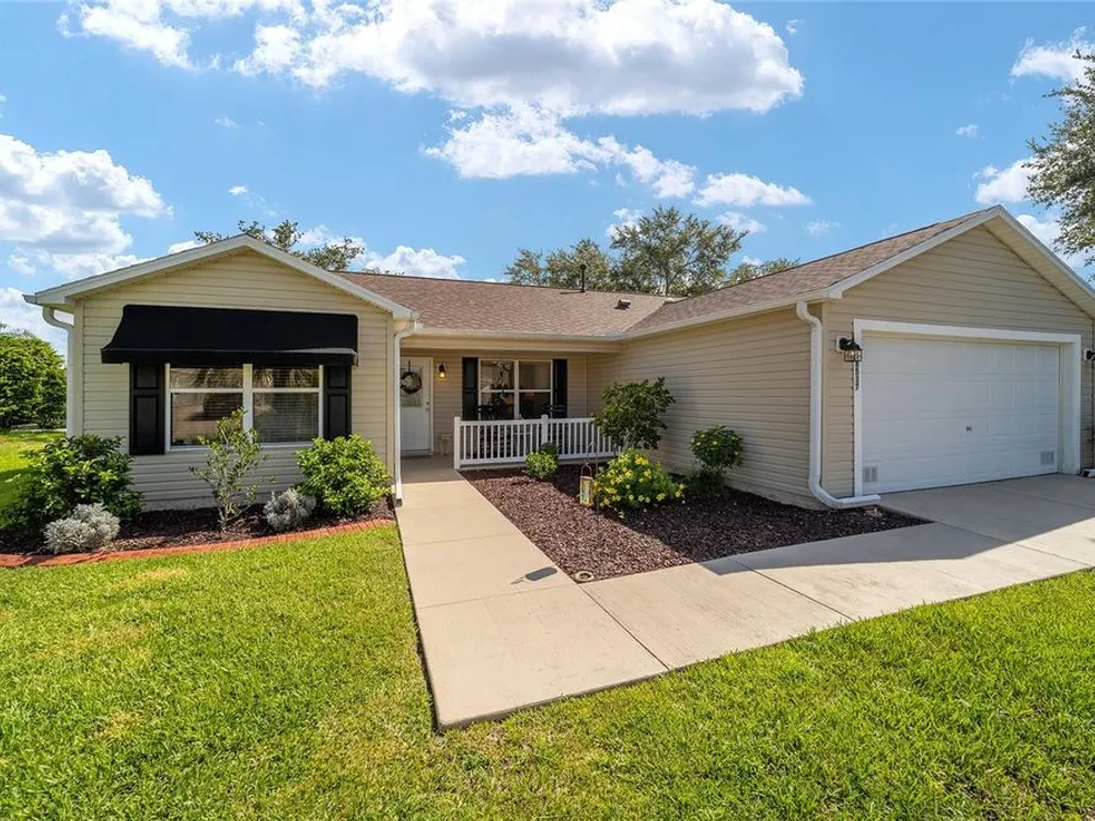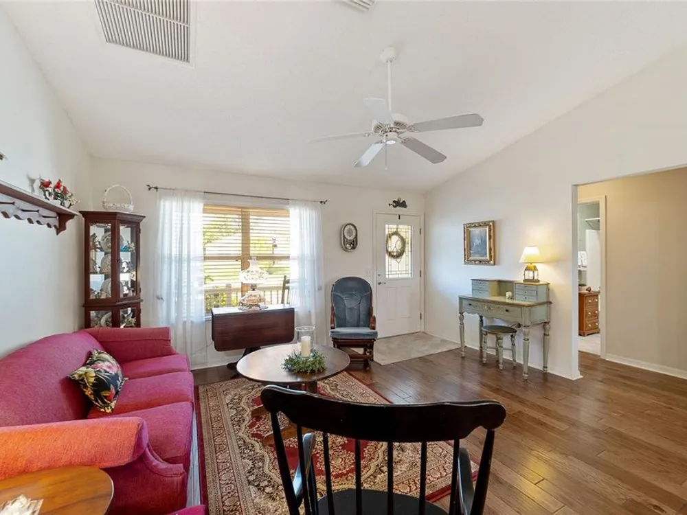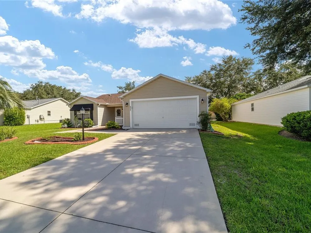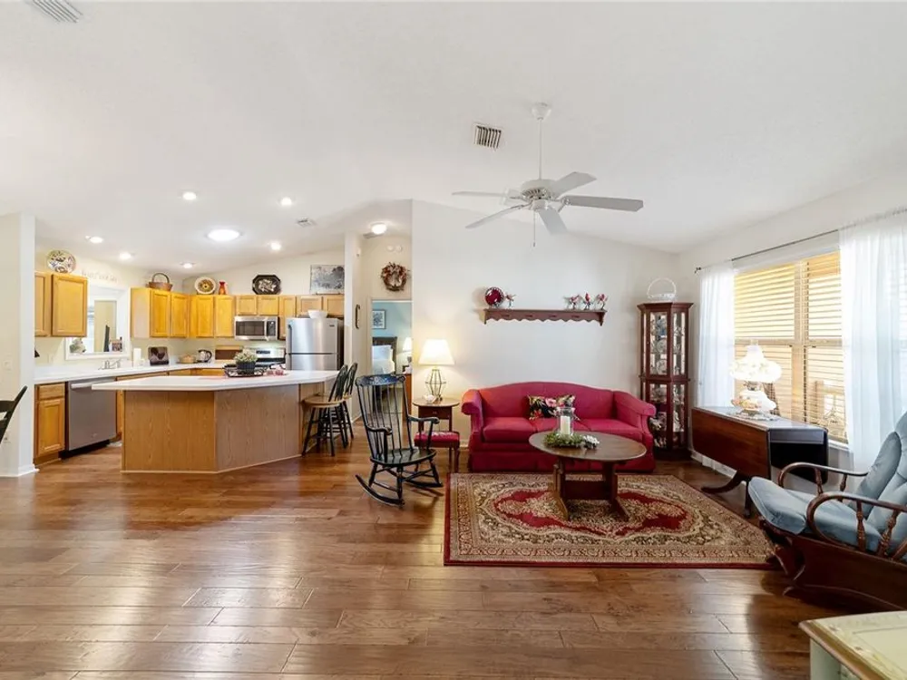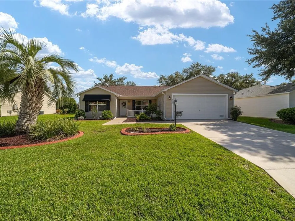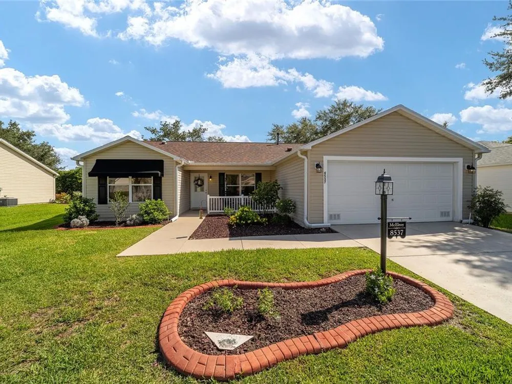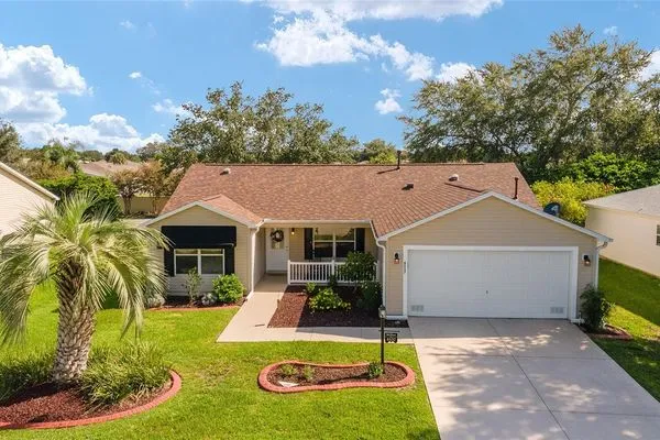 EXPANDED Amarillo Model with a 325 ft² FLORIDA ROOM added in The Villages. BOND IS PAID! No need to worry about ANYTHING because it has IMPRESSIVE upgrades and is METICULOUSLY MAINTAINED! *New ROOF: 2020 *New Trane AC unit: 2018 ***Be sure to WATCH the VIDEO @ https://youtu.be/6bkS_2T3QZk?si=yMq32mxWlxIuDObR *** LOCATED in the highly desired VILLAGE of PIEDMONT; just minutes from championship golf courses: Nancy Lopez Legacy and Glenview, as well as 4 Executive golf courses. Conveniently close to the Mulberry Regional Recreation Center, First Responders Recreation Center, and Calumet’s adult-only pool. Of course, in The Villages, you are close to shopping, restaurants, and squares with nightly live entertainment. The VA hospital and UF Health - The Villages Hospital, are both less than a 10 minute drive away, as well as many surrounding medical offices. BEAUTIFUL curb appeal with a welcoming and cozy front porch. As you enter; the first thing you notice is the STUNNING Hickory Engineered Harwood flooring! This OPEN CONCEPT, split bedroom plan, home has an added 25 x13 family room with plenty of windows. The natural light illuminates the exquisite transition of the natural tones in the ceramic tile floor and the beautifully stained hardwood floor in the main living area. Kitchen has all UPGRADED Stainless Steel appliances including a gas 5 burner stove. Primary bedroom has Engineered Hardwood Floors. Both guest bedrooms have carpet (replaced in 2021.) Guest bathroom has upgraded tile, and a solar tube light. Spacious PRIMARY BEDROOM has a walk-in-closet, and en-suite bathroom: Upgraded diamond patterned tile, counter top and shower with matching cultured marble, and solar tube light. Additional info:* (HVAC has an additional transferable warranty through 9/2028.) *Stainless Steel appliances: 2022 * SS Microwave: 2024 * Primary en-suite bathroom upgrade: 2018 * Termite Bond through 10/2029 (transferable to new owner.) * Tinted double pane windows * New garage door opener, remote, rollers, and springs: 2022 * Garage Floor Repainted: 2024 * Gutters and Downspouts = A MUST with Florida's downpours. ***Video on YouTube: https://youtu.be/6bkS_2T3QZk?si=yMq32mxWlxIuDObR