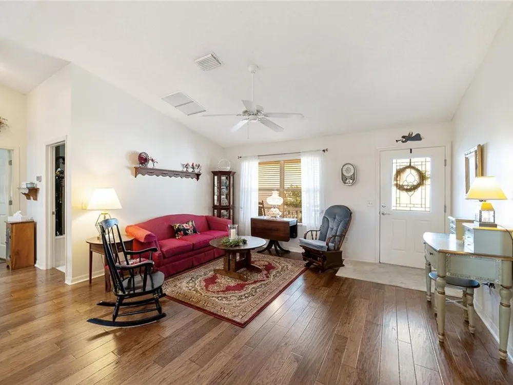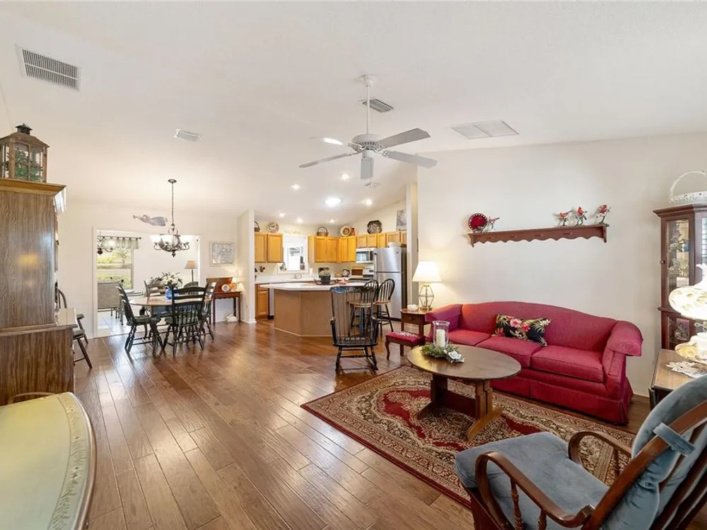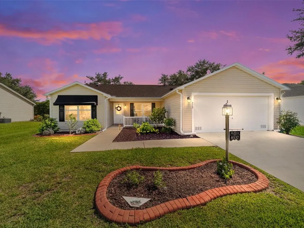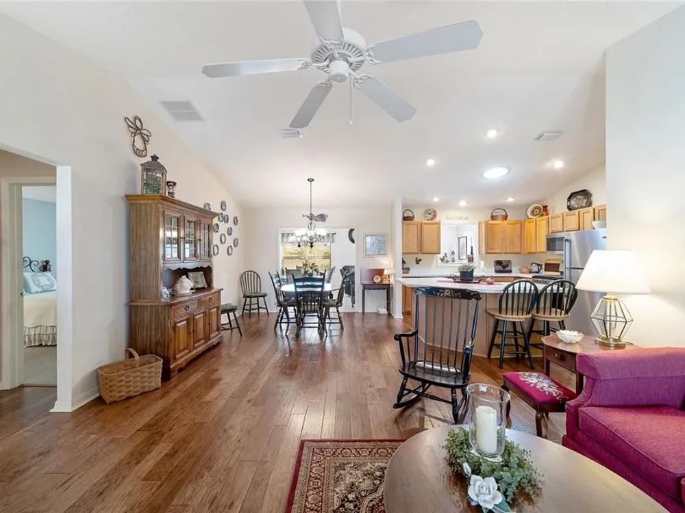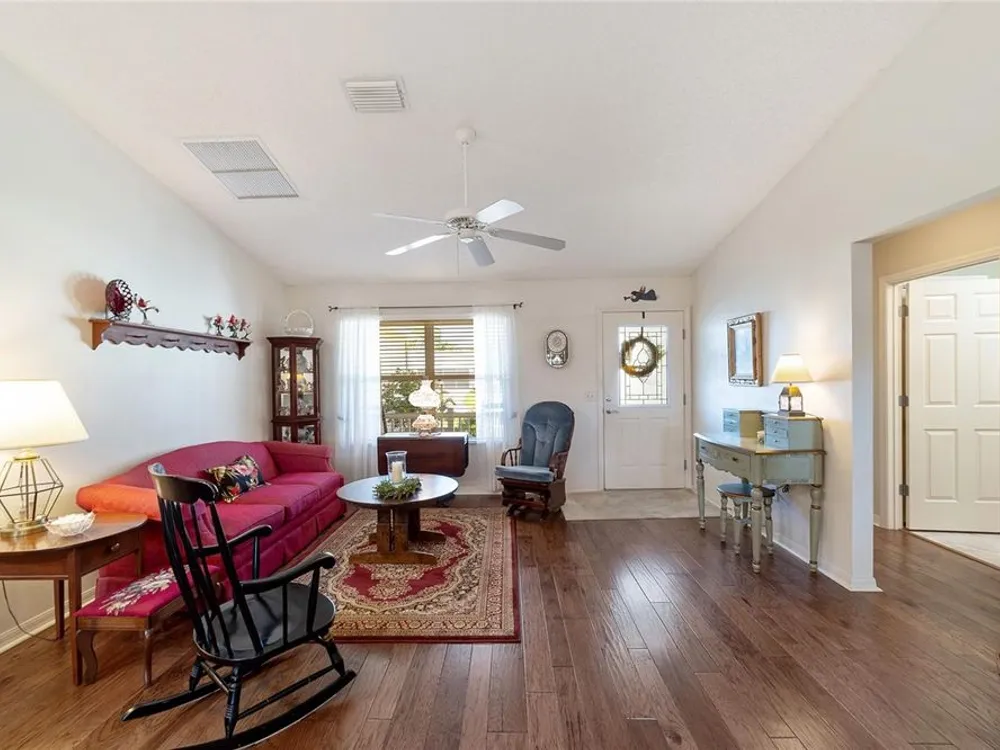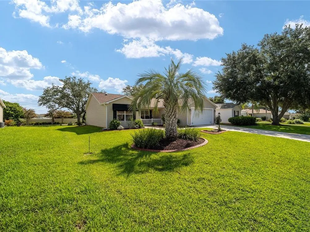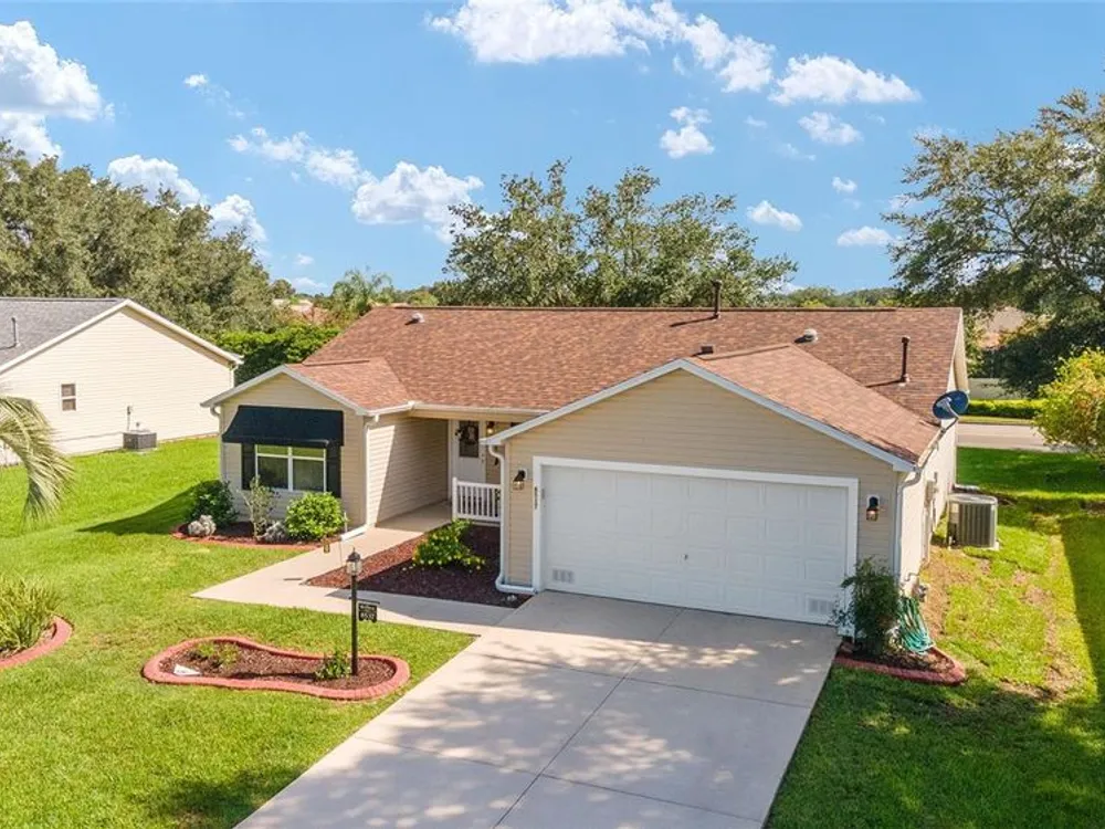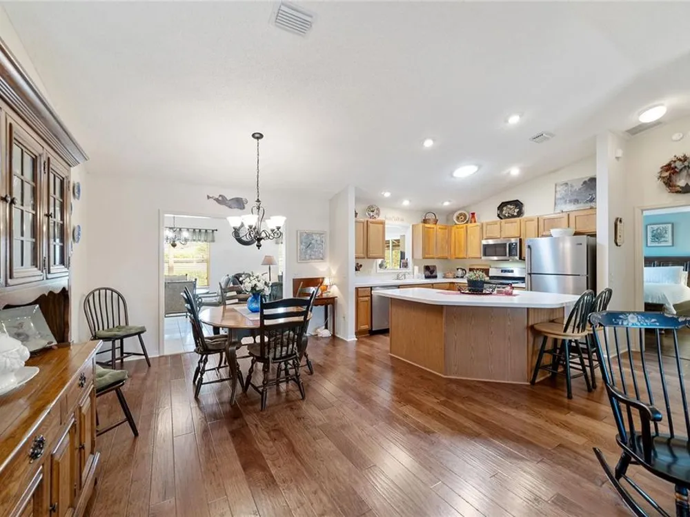 EXPANDED Amarillo Model with a 325 ft² FLORIDA ROOM added in The Villages. BOND IS PAID! No need to worry about ANYTHING because it has IMPRESSIVE upgrades and is METICULOUSLY MAINTAINED! *New ROOF: 2020 *New Trane AC unit: 2018 ***Be sure to WATCH the VIDEO @ https://youtu.be/6bkS_2T3QZk?si=yMq32mxWlxIuDObR *** LOCATED in the highly desired VILLAGE of PIEDMONT; just minutes from championship golf courses: Nancy Lopez Legacy and Glenview, as well as 4 Executive golf courses. Conveniently close to the Mulberry Regional Recreation Center, First Responders Recreation Center, and Calumet’s adult-only pool. Of course, in The Villages, you are close to shopping, restaurants, and squares with nightly live entertainment. The VA hospital and UF Health - The Villages Hospital, are both less than a 10 minute drive away, as well as many surrounding medical offices. BEAUTIFUL curb appeal with a welcoming and cozy front porch. As you enter; the first thing you notice is the STUNNING Hickory Engineered Harwood flooring! This OPEN CONCEPT, split bedroom plan, home has an added 25 x13 family room with plenty of windows. The natural light illuminates the exquisite transition of the natural tones in the ceramic tile floor and the beautifully stained hardwood floor in the main living area. Kitchen has all UPGRADED Stainless Steel appliances including a gas 5 burner stove. Primary bedroom has Engineered Hardwood Floors. Both guest bedrooms have carpet (replaced in 2021.) Guest bathroom has upgraded tile, and a solar tube light. Spacious PRIMARY BEDROOM has a walk-in-closet, and en-suite bathroom: Upgraded diamond patterned tile, counter top and shower with matching cultured marble, and solar tube light. Additional info:* (HVAC has an additional transferable warranty through 9/2028.) *Stainless Steel appliances: 2022 * SS Microwave: 2024 * Primary en-suite bathroom upgrade: 2018 * Termite Bond through 10/2029 (transferable to new owner.) * Tinted double pane windows * New garage door opener, remote, rollers, and springs: 2022 * Garage Floor Repainted: 2024 * Gutters and Downspouts = A MUST with Florida's downpours. ***Video on YouTube: https://youtu.be/6bkS_2T3QZk?si=yMq32mxWlxIuDObR