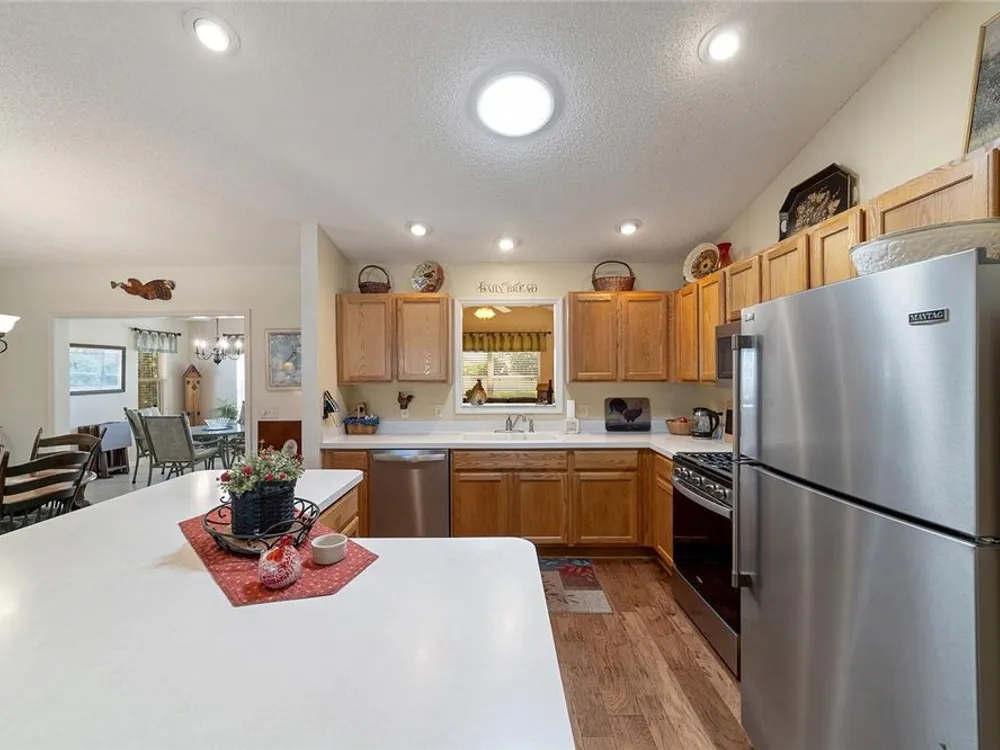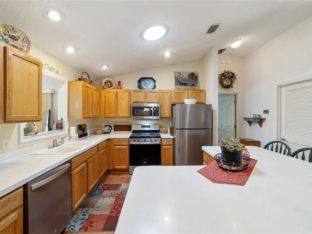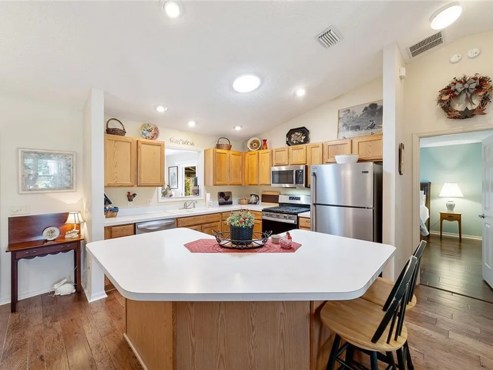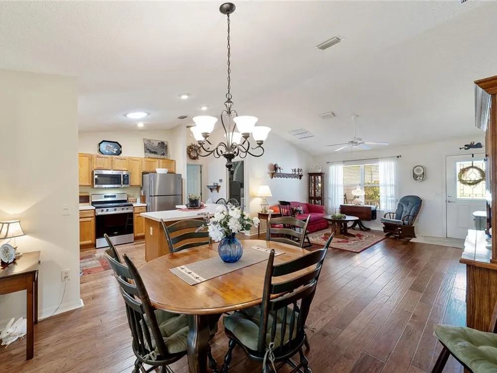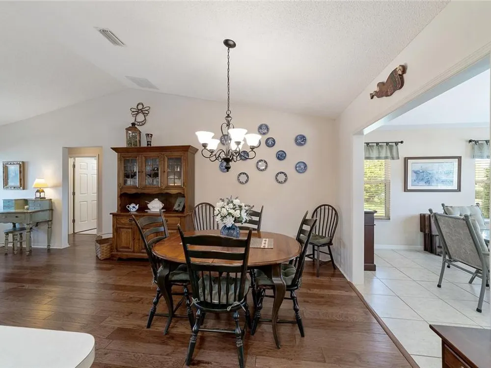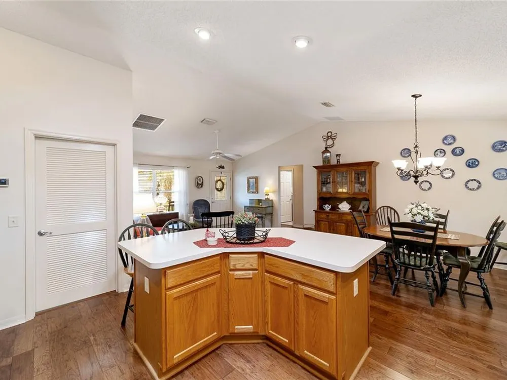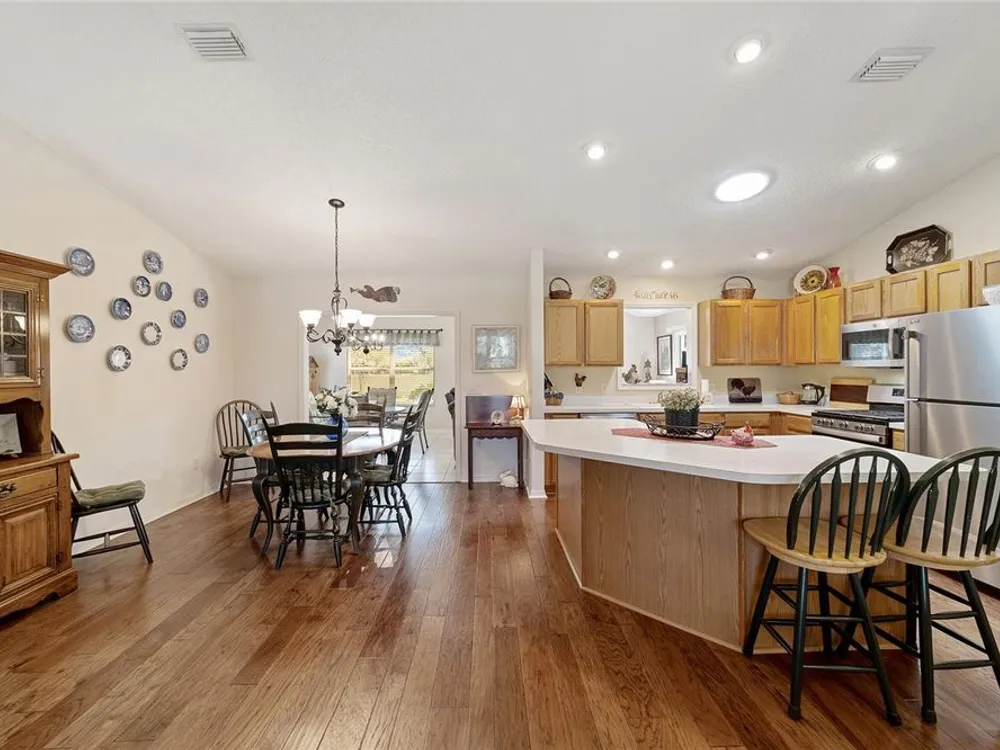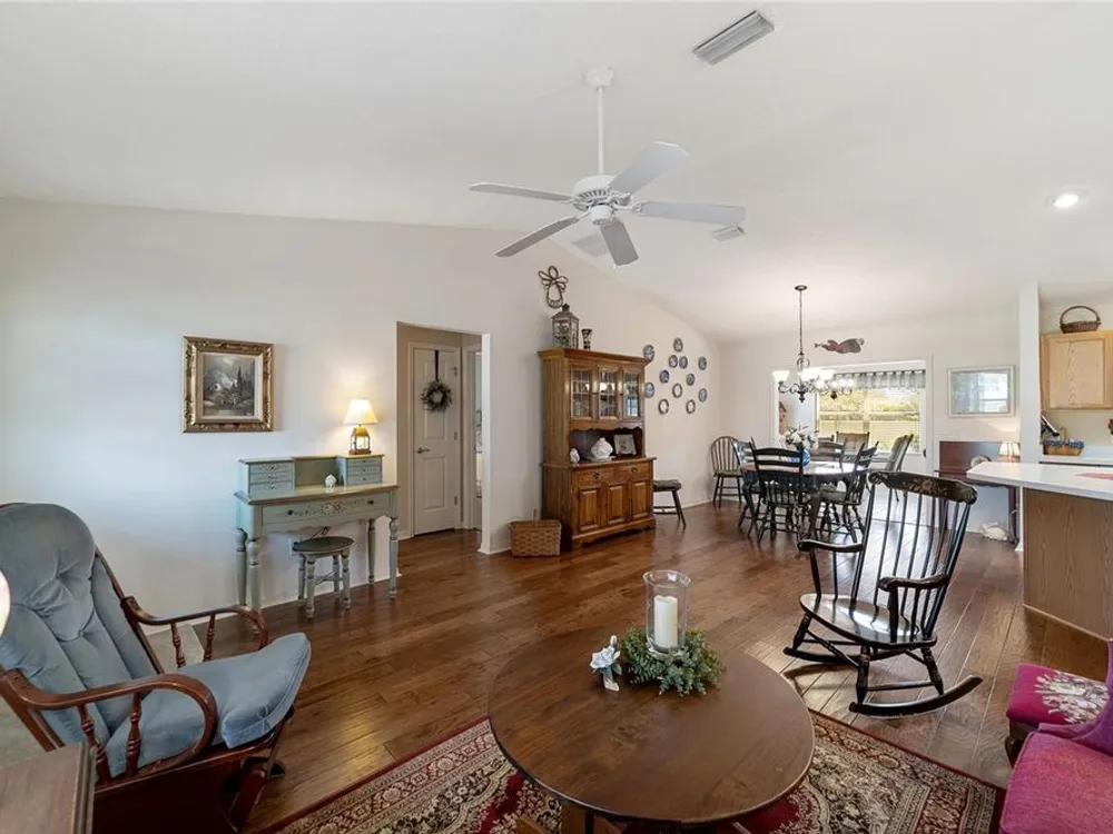 EXPANDED Amarillo Model with a 325 ft² FLORIDA ROOM added in The Villages. BOND IS PAID! No need to worry about ANYTHING because it has IMPRESSIVE upgrades and is METICULOUSLY MAINTAINED! *New ROOF: 2020 *New Trane AC unit: 2018 ***Be sure to WATCH the VIDEO @ https://youtu.be/6bkS_2T3QZk?si=yMq32mxWlxIuDObR *** LOCATED in the highly desired VILLAGE of PIEDMONT; just minutes from championship golf courses: Nancy Lopez Legacy and Glenview, as well as 4 Executive golf courses. Conveniently close to the Mulberry Regional Recreation Center, First Responders Recreation Center, and Calumet’s adult-only pool. Of course, in The Villages, you are close to shopping, restaurants, and squares with nightly live entertainment. The VA hospital and UF Health - The Villages Hospital, are both less than a 10 minute drive away, as well as many surrounding medical offices. BEAUTIFUL curb appeal with a welcoming and cozy front porch. As you enter; the first thing you notice is the STUNNING Hickory Engineered Harwood flooring! This OPEN CONCEPT, split bedroom plan, home has an added 25 x13 family room with plenty of windows. The natural light illuminates the exquisite transition of the natural tones in the ceramic tile floor and the beautifully stained hardwood floor in the main living area. Kitchen has all UPGRADED Stainless Steel appliances including a gas 5 burner stove. Primary bedroom has Engineered Hardwood Floors. Both guest bedrooms have carpet (replaced in 2021.) Guest bathroom has upgraded tile, and a solar tube light. Spacious PRIMARY BEDROOM has a walk-in-closet, and en-suite bathroom: Upgraded diamond patterned tile, counter top and shower with matching cultured marble, and solar tube light. Additional info:* (HVAC has an additional transferable warranty through 9/2028.) *Stainless Steel appliances: 2022 * SS Microwave: 2024 * Primary en-suite bathroom upgrade: 2018 * Termite Bond through 10/2029 (transferable to new owner.) * Tinted double pane windows * New garage door opener, remote, rollers, and springs: 2022 * Garage Floor Repainted: 2024 * Gutters and Downspouts = A MUST with Florida's downpours. ***Video on YouTube: https://youtu.be/6bkS_2T3QZk?si=yMq32mxWlxIuDObR