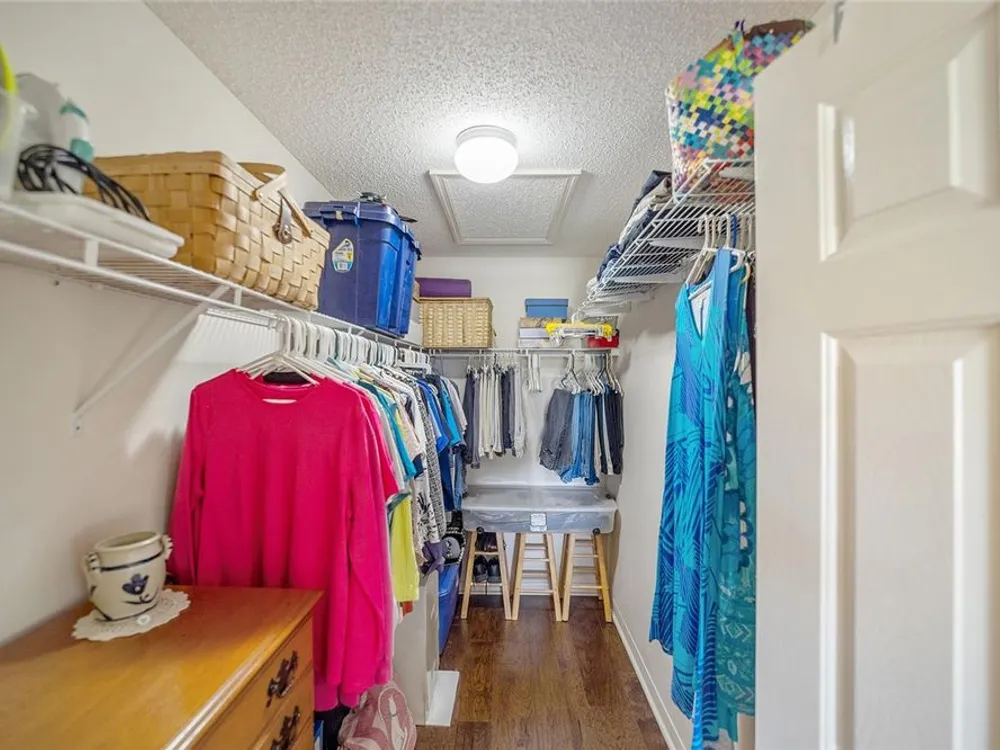 - Ceiling Fan(s), High Ceilings, Living/Dining Room, Open Floorplan, Main Level Primary, Split Bedrooms, Thermostat, Walk-In Closet(s), Window Treatments