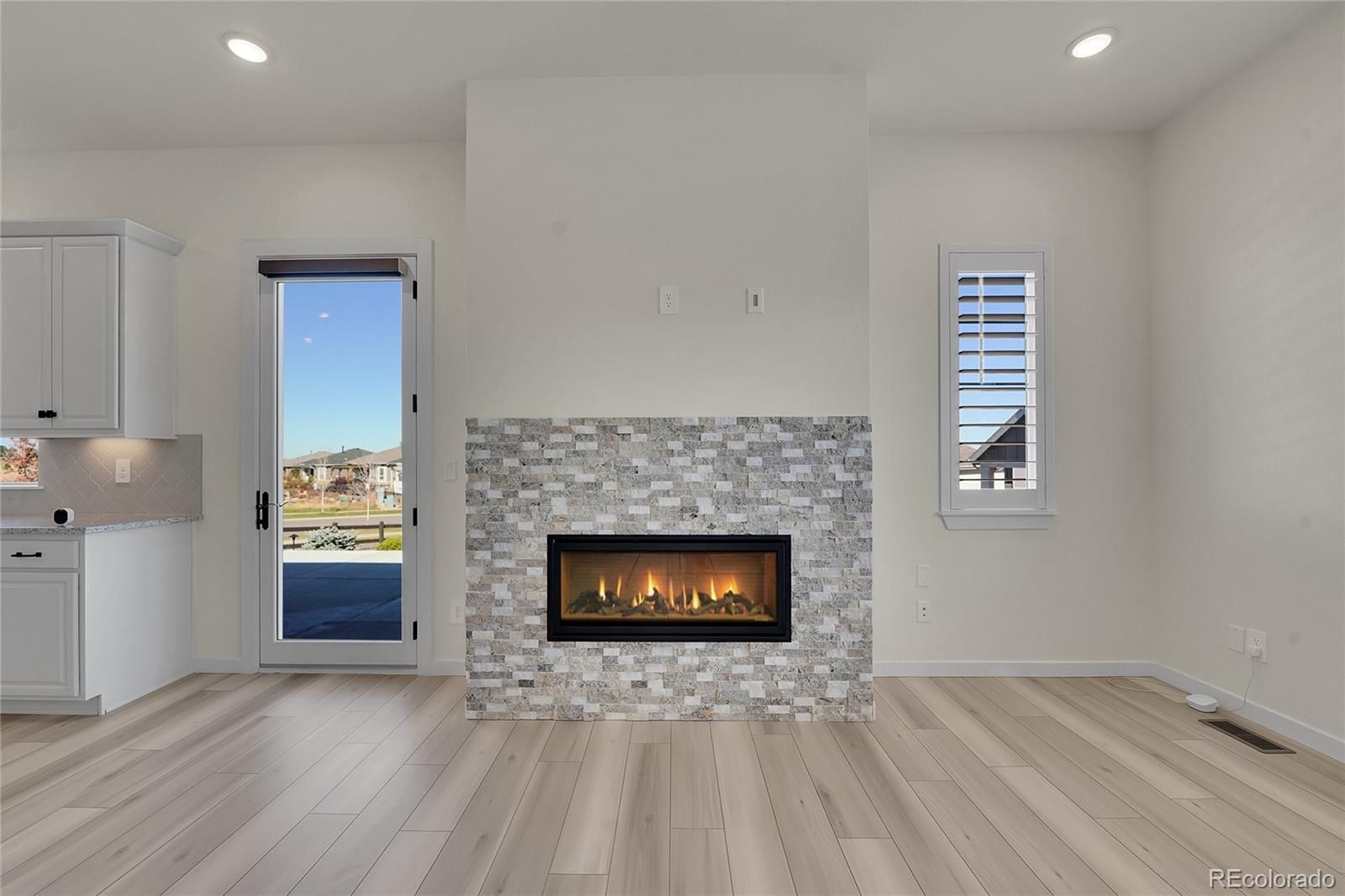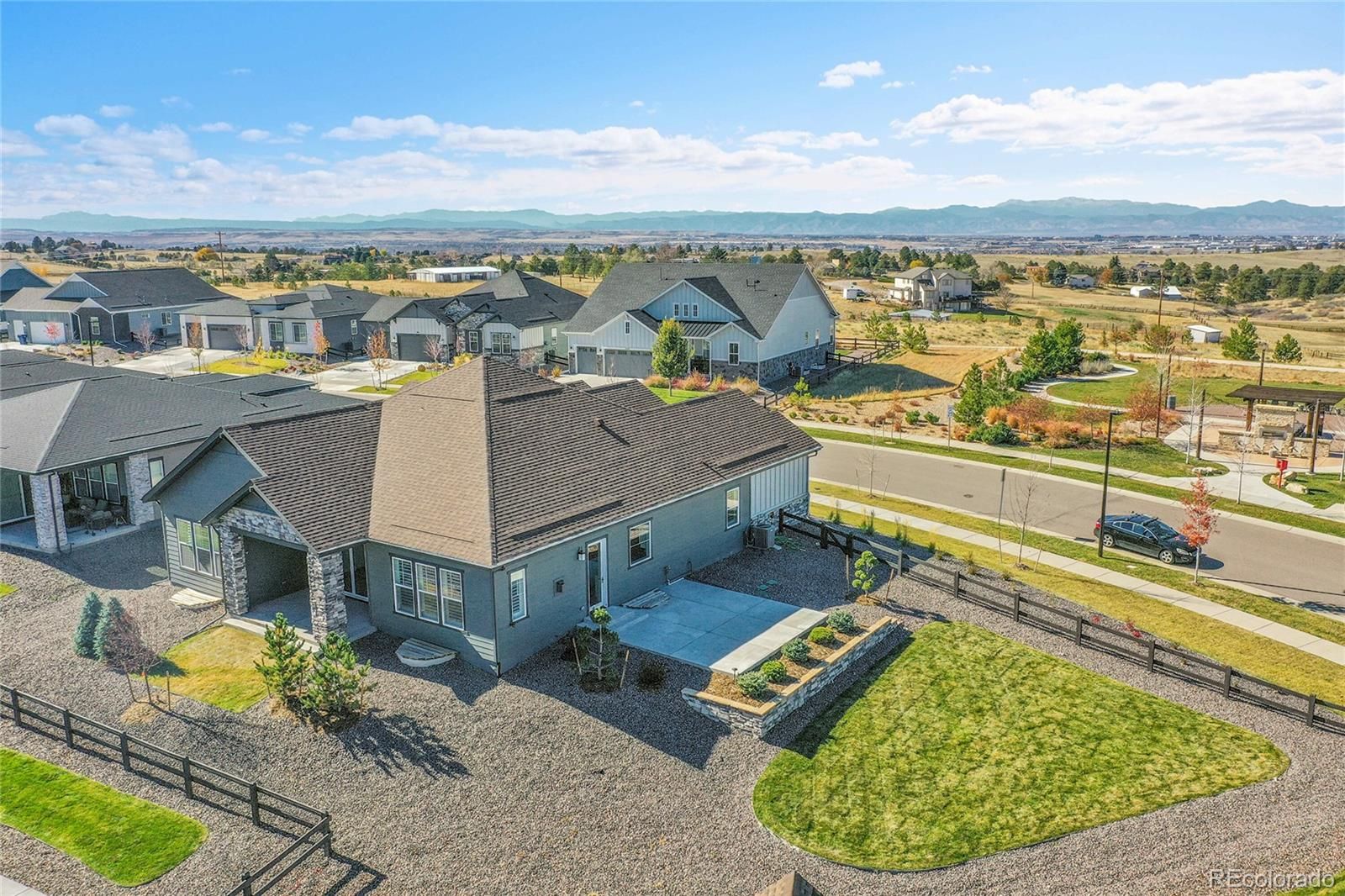Come see the best mountain views in this wonderful Active Adult 55+ community!! This modern 3-bedroom, 3-bathroom, ranch-style home boasts a 3-car garage and is situated on an extra-large, .31-acre lot. Located just across the street from Sunset Park, you’ll enjoy entertaining guests on the expansive, custom-side-patio where you’ll see stunning views of the majestic Rocky Mountains. The spacious living area features a cozy fireplace that radiates warmth, inviting you to unwind after a day of exploring the vast walking/biking trail system throughout this vibrant community. The heart of the home boasts a gourmet kitchen equipped with stainless steel appliances, gleaming granite countertops, and pristine white cabinets. The extra-large island offers ample prep space and seating for four – perfect for intimate gatherings or casual breakfasts with friends. Relax and rejuvenate! Experience the comfort of three well-appointed bedrooms, each a tranquil retreat designed for rest and rejuvenation. The additional office space offers the ideal setting for creative pursuits or remote work, ensuring you have a dedicated area to focus and inspire. Step outside to discover your personal slice of paradise. With two patios, one in back and one on the side, you will enjoy delightful afternoons hosting summer barbecues or enjoying peaceful evenings under the stars in your spacious outdoor oasis. Community Living at Its Best. Located in an award-winning “Inspiration” an Active Adult 55+ community, where you will find a vibrant neighborhood with like-minded individuals who share your zest for life. Engage with neighbors at community events, or take advantage of the myriad amenities available, from walking trails and parks to recreational facilities that promote an active, fulfilling lifestyle. Do not miss this incredible opportunity to make this dream home your reality. Schedule your private showing today!
