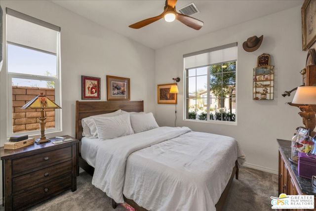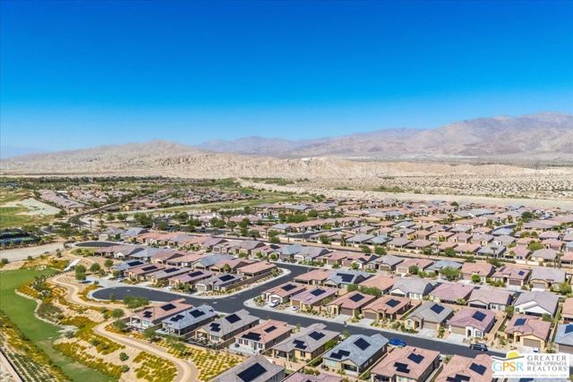 Price Improvement - Seller Highly Motivated! Priced to Sell Bring -- All Offers! Now offered at $410,000, this beautifully upgraded 2022-built home in Four Seasons at Terra Lago presents an exceptional opportunity in a boutique-style 55+ guard-gated resort community. Designed for both comfort and modern living, the home features 2 bedrooms plus a versatile den/office and an open-concept layout with tile flooring, a spacious kitchen island, upgraded cabinetry, elegant countertops and backsplash, stainless steel appliances, built-in microwave, pull-out kitchen drawers, and a walk-in pantry. The living and dining areas flow seamlessly, creating an ideal space for everyday living and entertaining. This home stands out with fully owned solar (valued at approximately $25,000) for long-term energy savings, along with IID electric service, helping keep utility costs lower. The exterior offers low-maintenance desert landscaping, a covered patio with mountain views, and an attached garage with dedicated golf cart parking and overhead storage. Four Seasons at Terra Lago offers a more intimate, boutique resort-style atmosphere with outstanding amenities including a clubhouse, pools, spas, fitness center, pickleball courts, and a vibrant social calendar. Conveniently located with easy access to I-10 and just minutes from Acrisure Arena, golf, dining, shopping, and the renowned BNP Paribas Open, this home combines value, lifestyle, and convenience. Seller is serious and ready to sell don't miss this opportunity!