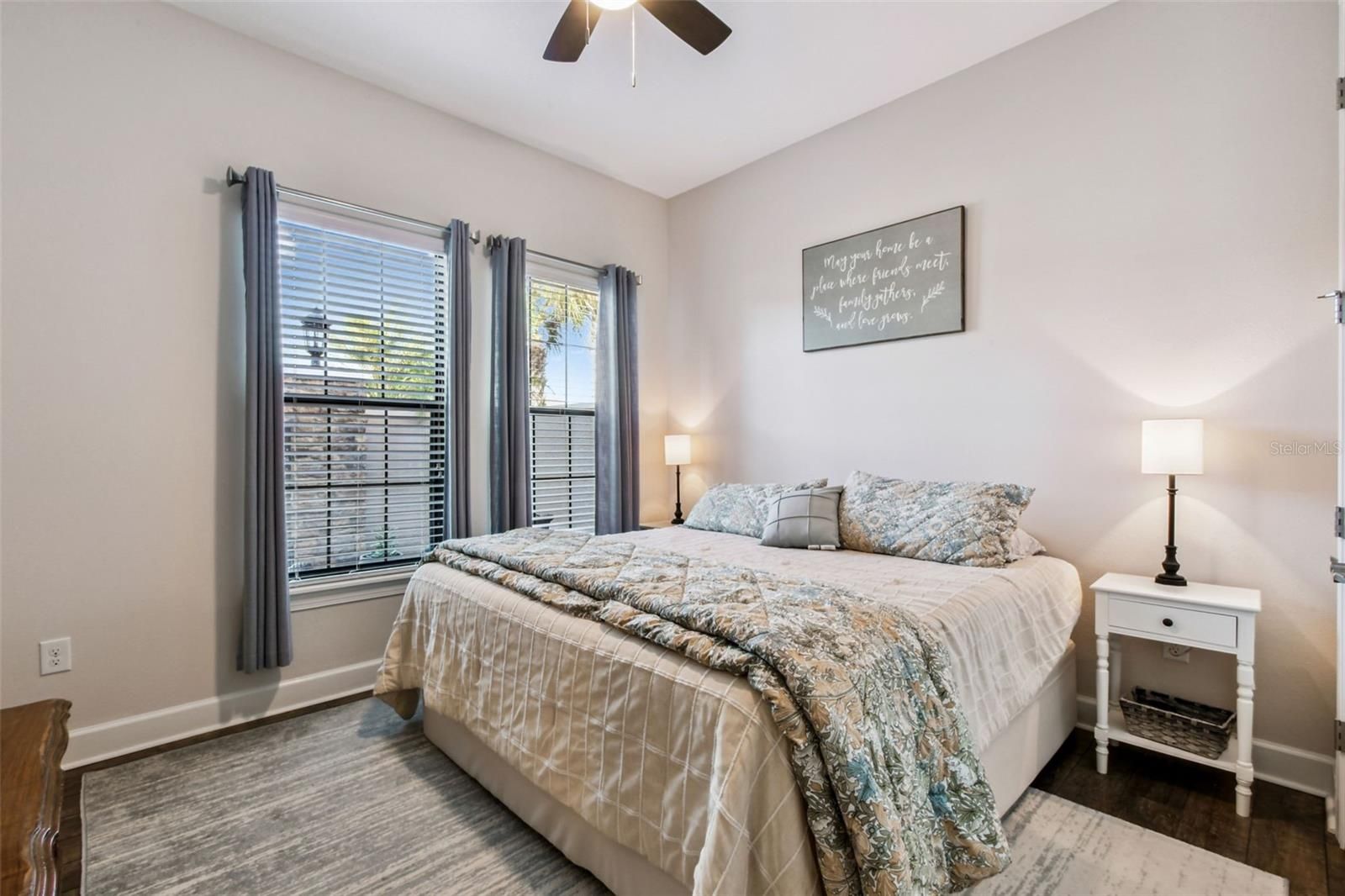 - Ceiling Fan(s), Crown Molding, Dry Bar, High Ceilings, Kitchen/Family Room Combo, Open Floorplan, Main Level Primary, Solid-Wood Cabinets, Stone Counters, Thermostat, Tray Ceiling(s), Walk-In Closet(s)