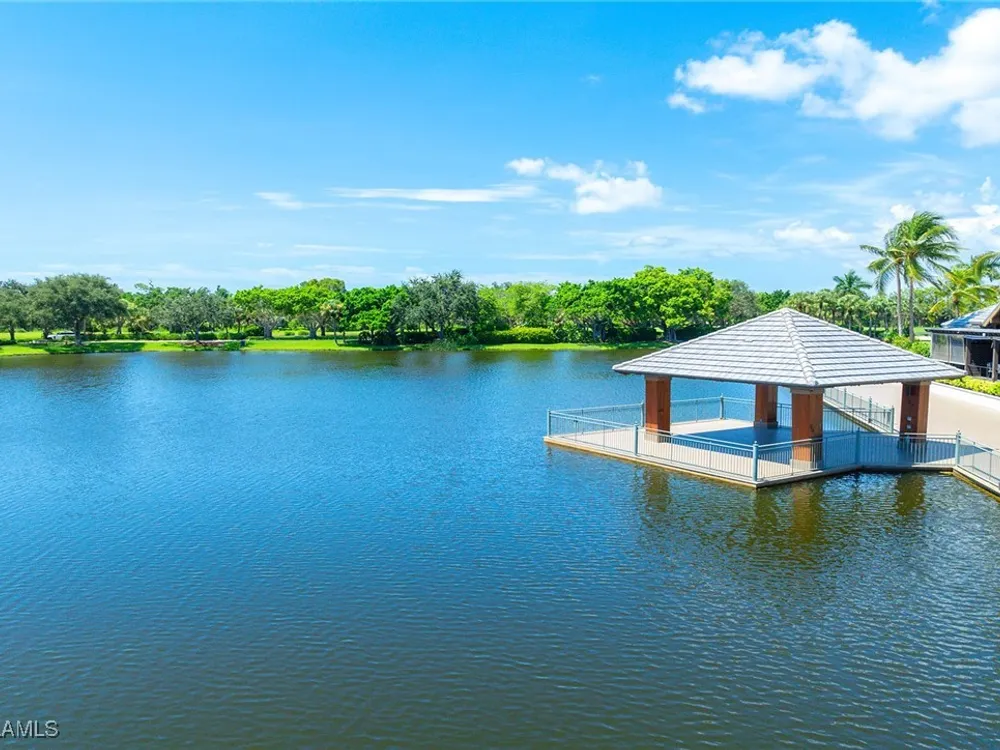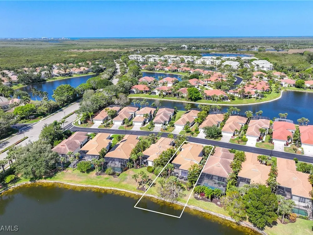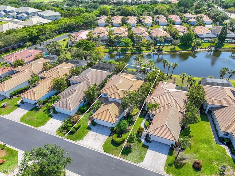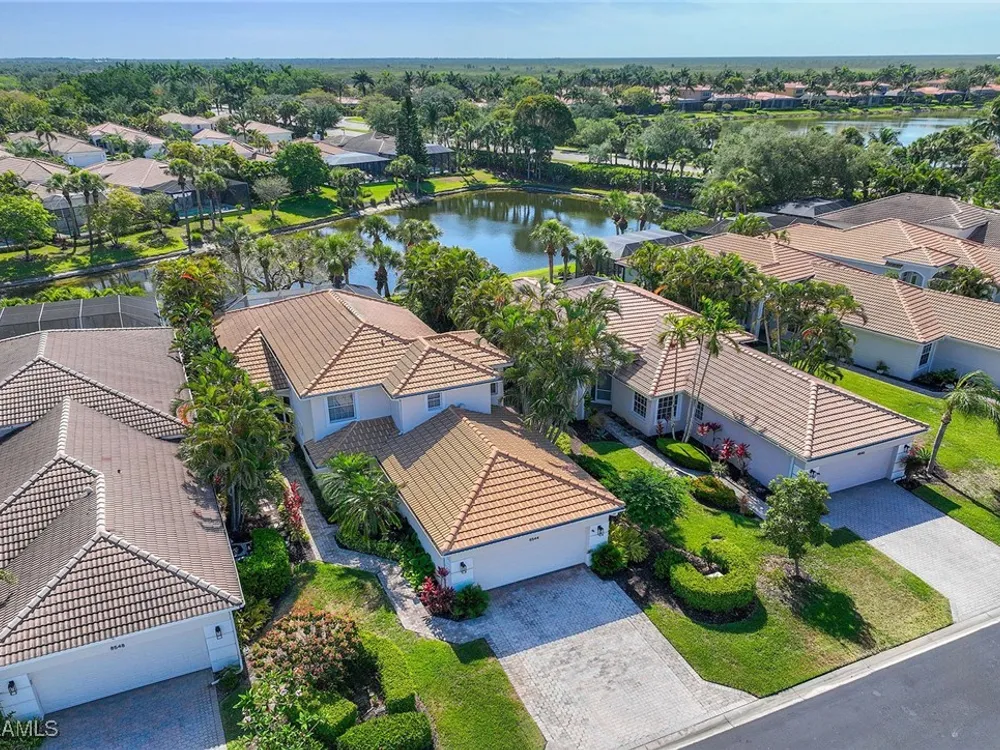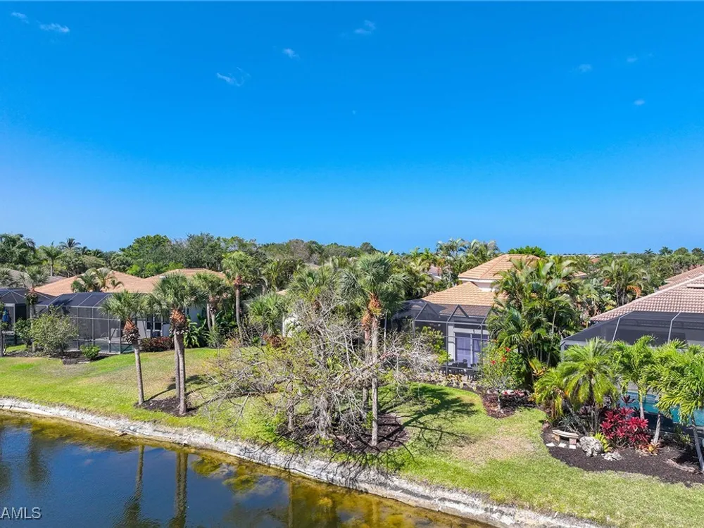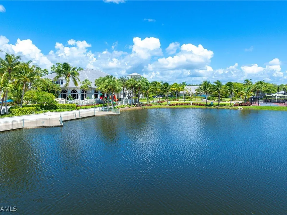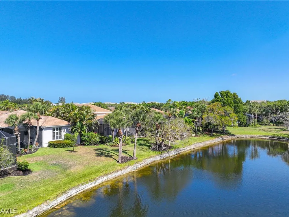Great location in Fiddler's Creek, this charming single-family home in Pepper Tree is minutes from the main entrance as well as the world-class club, spa and fitness center. Ideally with a stunning lake view, this exceptional two-story home includes four bedrooms, three baths and the warm feeling that embraces the essence of South Florida living. The expansive combination living and dining area is roomy and open, drawing you into the open vaulted ceilings and the additional Jack and Jill guest bedrooms of the second floor. A spacious family room and an open kitchen create a bright environment that rivals only the sun-drenched patio of the back lanai. Two-story high ceilings with crown moldings enhance this newly painted, delightful home. The recently remodeled kitchen and lighting throughout are also special features. The extra-large outdoor space is fully screened with room for a full-sized pool and spa. The fourth bedroom, on the main level with a full bath, can efficiently serve as an office or den. Across the hall, the primary bedroom suite opens to the rear lanai and includes two walk-in closets. The master bath with dual sink, separate shower, and garden bath is roomy and bright. Stunning new wood flooring adds to the home's comfortable and sophisticated feel. Additional features of this exceptional home include a remodeled laundry room, central vacuum system and a 10-year transferable warranty for the air conditioner. The refinished garage floor, overhead enclosed cabinetry, extra-wide driveway and plantation shutter window treatments show attention to detail. Fiddler's Creek is an amenity-rich country club environment with a full-service spa, fitness and wellness center with pickleball, bocce ball, tennis and more. A full-time recreation director and two exceptional restaurants complete the picture of luxurious living, close to everything South Florida has to offer.