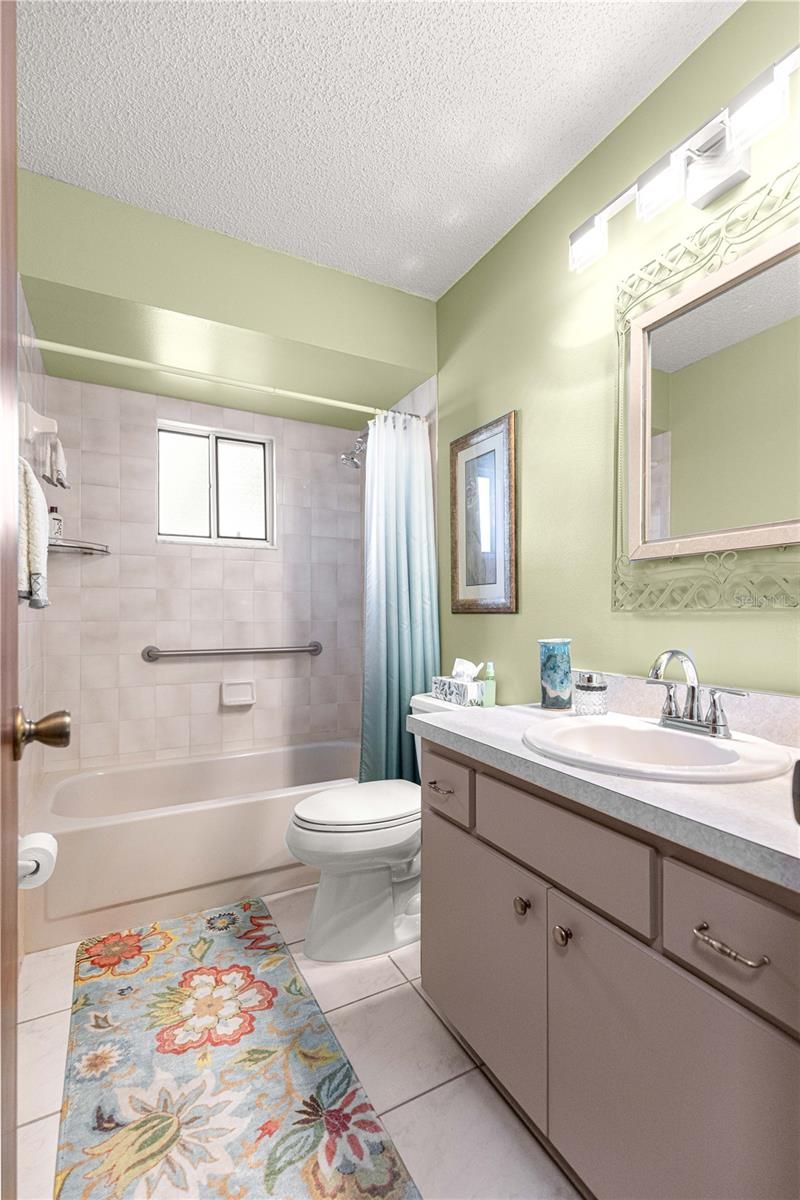This move-in-ready 2-bedroom, 2-bath home with a 2-car garage is located in the secure, 55+ Palm Cay community, featuring a 24-hour guarded gate and very low HOA fees. Recent updates include fresh interior and exterior paint using high-quality, long-lasting materials and the roof which has just been updated with a roof-over featuring new shingles. The kitchen offers new stainless-steel appliances, including a three-door counter-depth refrigerator with ice and water dispenser, dishwasher, smooth-top range with convection oven, and a countertop convection microwave that also bakes and air fries. The efficient square layout provides ample cabinet storage. Water filtration is installed at the refrigerator, kitchen sink, and in both showers. Both spacious bedrooms feature walk-in closets. The primary bath includes a walk-in shower, while the guest bath offers a tub/shower combo. Both bathrooms are upgraded with high-rise elongated Kohler toilets, filtered shower heads, updated mirrors, and faucets. Tile flooring is found in the kitchen and baths, with carpet in the living area and bedrooms. The HVAC heat pump was installed in 2022, and double-pane windows improve energy efficiency. The oversized 20x26 garage includes a workshop bench, utility sink, stacked washer and dryer, folding table with cabinets, wooden shelving, and a 15x6 storage rack along one side. Enjoy the covered front porch and the north-facing lanai overlooking a large backyard. The front yard features new landscaping with rose bushes, flowering shrubs, and a mature magnolia tree, all maintained by a 5-zone irrigation system. Palm Cay offers excellent amenities, including a clubhouse with fitness center, billiards, darts, library, activity room, kitchen, and large dining area. Outdoor amenities include a pool, hot tub, pickleball/tennis court, and cornhole. Conveniently located within five miles of shopping, dining, and entertainment, and just 1.5 hours from Gulf and Atlantic beaches and Orlando attractions. Furnishings package available.