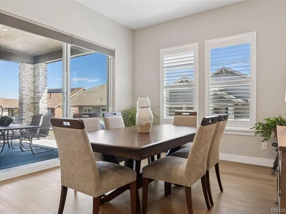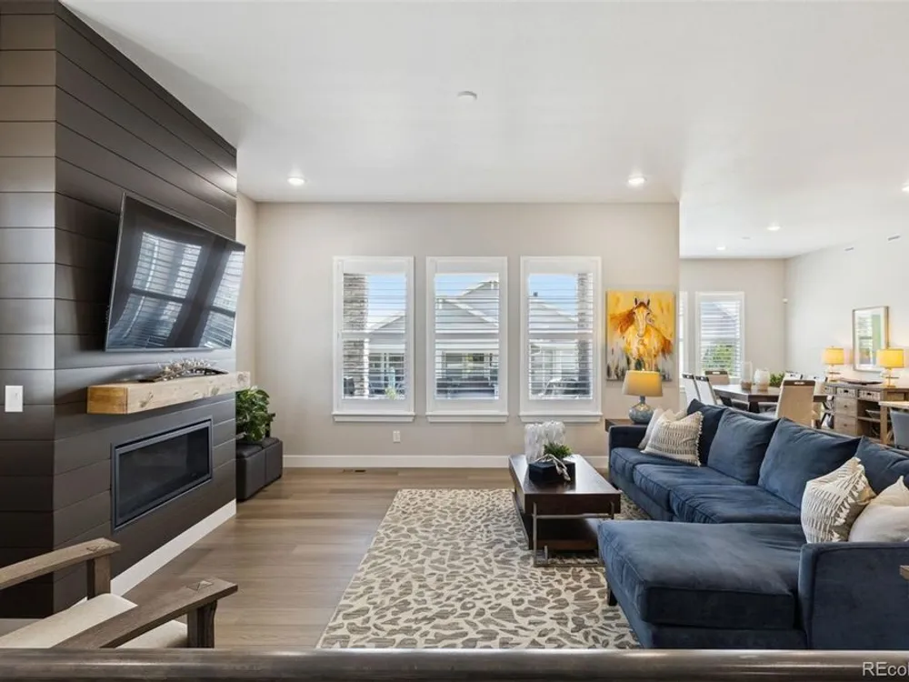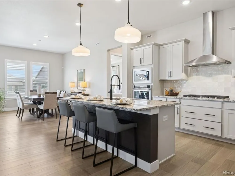 Perfectly situated across from Sunset Park in Hilltop at Inspiration, this thoughtfully designed ranch home captures year-round sunsets and easy, low-maintenance living. The open floorplan seamlessly unites the great room, dining, and chef’s kitchen, creating a light-filled space ideal for entertaining and everyday comfort. The kitchen is a true centerpiece, showcasing an expansive island, granite countertops, upgraded appliances, soft-close cabinetry with pull-out shelving, and a generous walk-in pantry. The private primary suite is a serene retreat with a spa-like bath featuring a no-glass walk-in shower and a custom-designed closet. Throughout the home, you’ll find designer flooring, elegant paint selections, stylish window coverings, and a striking fireplace for added warmth and character. Solar panels, EV charging readiness, and a SimpliSafe system combine modern convenience with peace of mind. The oversized two-car garage includes built-in storage, while the unfinished basement with rough-in plumbing offers room to grow. Relax in the backyard with peaceful morning light, or unwind on the front porch as the sun sets over the park. Nestled in Aurora’s premier 55+ community, Hilltop at Inspiration, residents enjoy access to a private clubhouse, fitness center, pickleball, trails, and an active calendar of clubs and events. With Southlands shopping and dining just minutes away, this home delivers luxury, comfort, and community all in one.