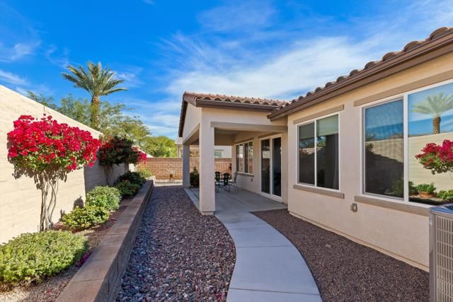 Welcome to resort-style living in the award-winning Four Seasons at Terra Lago, a premier 55+ active adult community in the heart of the Coachella Valley. This impeccable 2019-built Mecca Hills floor plan offers 2,152 square feet of single-story living with 2 bedrooms, 2.5 bathrooms, and a versatile flex room perfect for a home office, fitness studio, or creative retreat.The open-concept layout flows effortlessly from the gourmet kitchen with its generous island to sun-filled living and dining spaces framed by stunning mountain views. The spacious primary suite accommodates a king bed with ease, while the spa-inspired ensuite features a large walk-in shower, dual vanities, and ample closet space. A private guest suite with dedicated bathroom ensures comfort for visitors.Beyond your front door, The Lodge, a 22,000 square-foot clubhouse, serves as the heart of the community with a state-of-the-art fitness center, indoor and outdoor pools, tennis and pickleball courts, bocce ball, a ballroom, library, bistro, and on-site salon and massage services. Clubs range from book discussions to watercolor painting, with social activities filling every day of the week.The lifestyle here is unmatched. Named the City of Festivals, Indio attracts more than 1 million visitors each year for world-famous events like Coachella and Stagecoach. The nearby Acrisure Arena hosts top concerts, professional hockey, and premier entertainment year-round. Golf enthusiasts will find paradise with over 100 courses throughout the valley, while nature lovers can explore Joshua Tree National Park, the Indian Canyons, and desert hiking trails just minutes away. Enjoy polo matches, the Living Desert Zoo, legendary date shakes at Shields Date Garden, or gaming at Fantasy Springs Resort Casino.Convenience abounds with quick access to Interstate 10, shopping centers nearby, Palm Springs just 20 miles away, and the international airport only 30 miles out. The upscale boutiques of El Paseo and endless dining options complete the picture.This is more than a home--it's your invitation to embrace an active, connected lifestyle where every day feels like vacation.