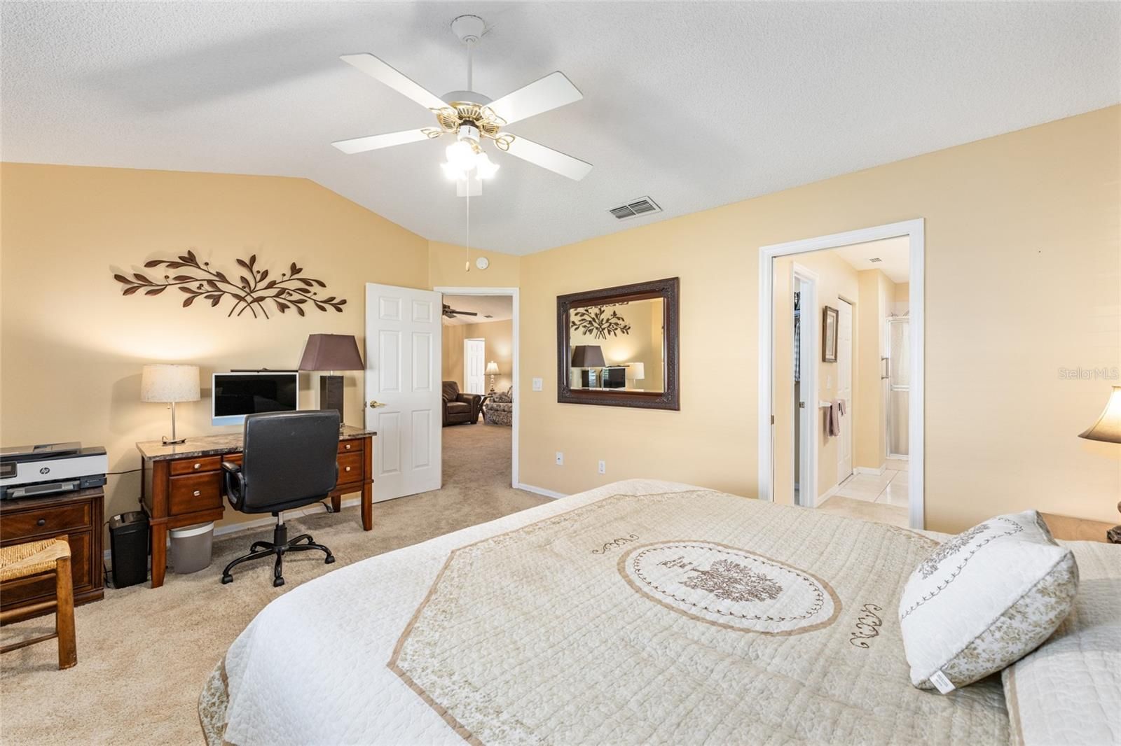 - Accessibility Features, Ceiling Fan(s), Eat-in Kitchen, Living/Dining Room, Main Level Primary, Split Bedrooms, Thermostat, Vaulted Ceiling(s), Walk-In Closet(s), Window Treatments
