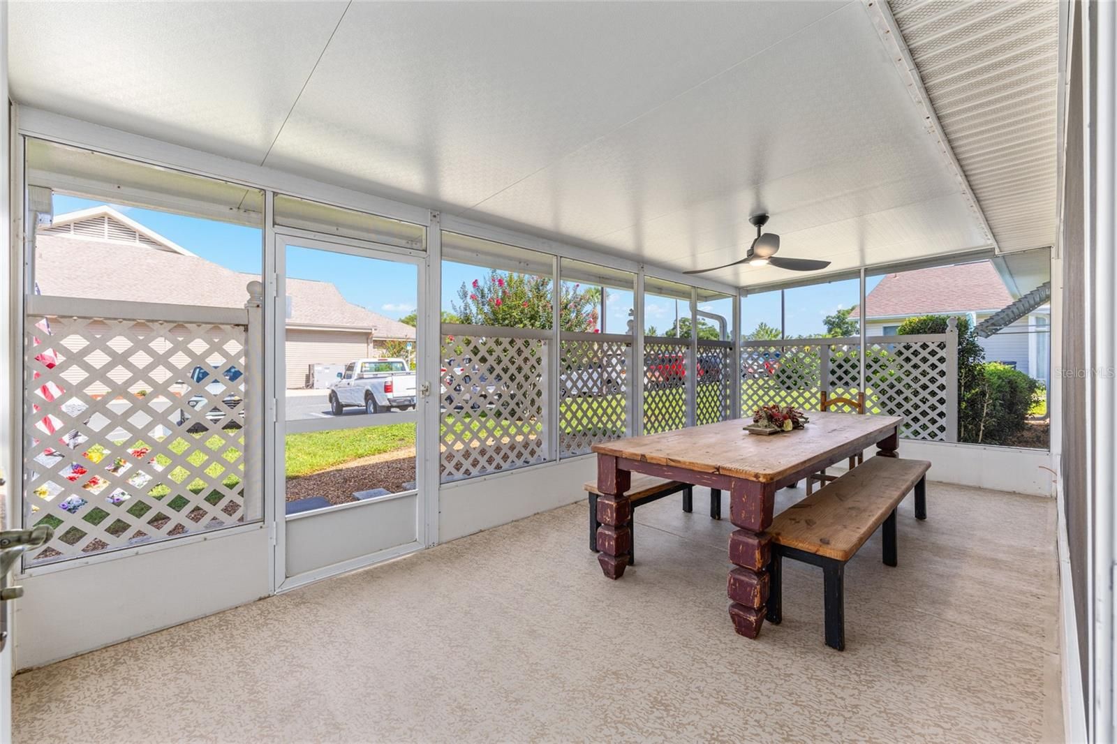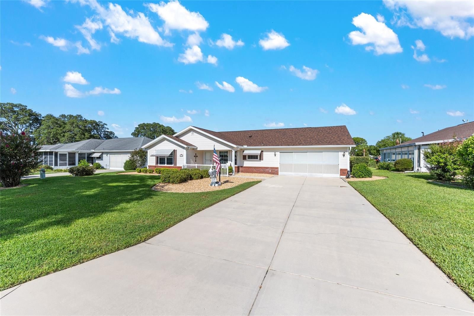 Price Improvement! This beautifully maintained home offers a spacious split floor plan with two large bedroom suites, each featuring its own walk-in closet. A versatile third room with glass sliders to the lanai can function as a den, craft room, or additional bedroom. The enclosed lanai adds 176 square feet of air-conditioned space to the 1,653 sq ft interior, providing a total of 1,829 sq ft of year-round comfort. Vaulted ceilings enhance the open feel of the living space. Located right next to the community center, this home offers unbeatable access to the many amenities of this vibrant SW Ocala 55+ community — including a pool and spa, fitness center, tennis, pickleball, shuffleboard, and even a bowling alley! Conveniently situated off SR 200, you'll be close to medical facilities, restaurants, shopping, a public library, and more. Recent updates include a new roof (2023), AC (2021), water heater (2014), new windows (2014), and newer appliances. Pride of ownership is evident throughout — this is truly a must-see home! 3D Tour and Floorplan available upon request.
