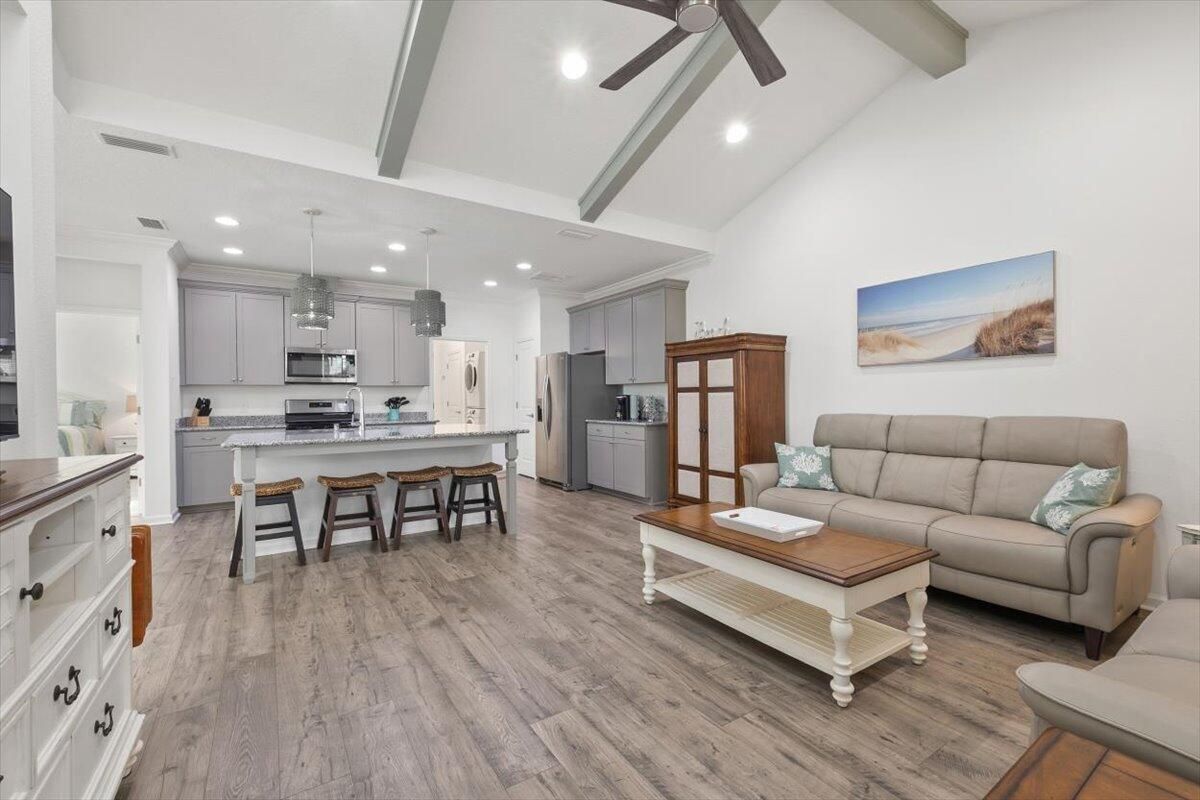 Ready to Live the Dream? Well you have found it! Welcome to this beautiful Camellia Cottage at 8556 Dreams Float Ct! Being SOLD fully furnished and ready to go! Located in the fantastic 55+ community of Latitude Margaritaville Watersound, This is not your ordinary cottage so many upgrades there is nothing standard about this home! As you step inside this piece of paradise you will discover a beautifully appointed haven, soft neutral colors, an extended kitchen island with gorgeous countertops and upgraded cabinetry that is every chef's delight! Home is still under warranty with the builder until March 2026! Relax on your screened-in porch, a perfect spot for morning coffee or sunset cocktails. Hop in your golf cart and cruise around the neighborhood. The onlything missing is You!