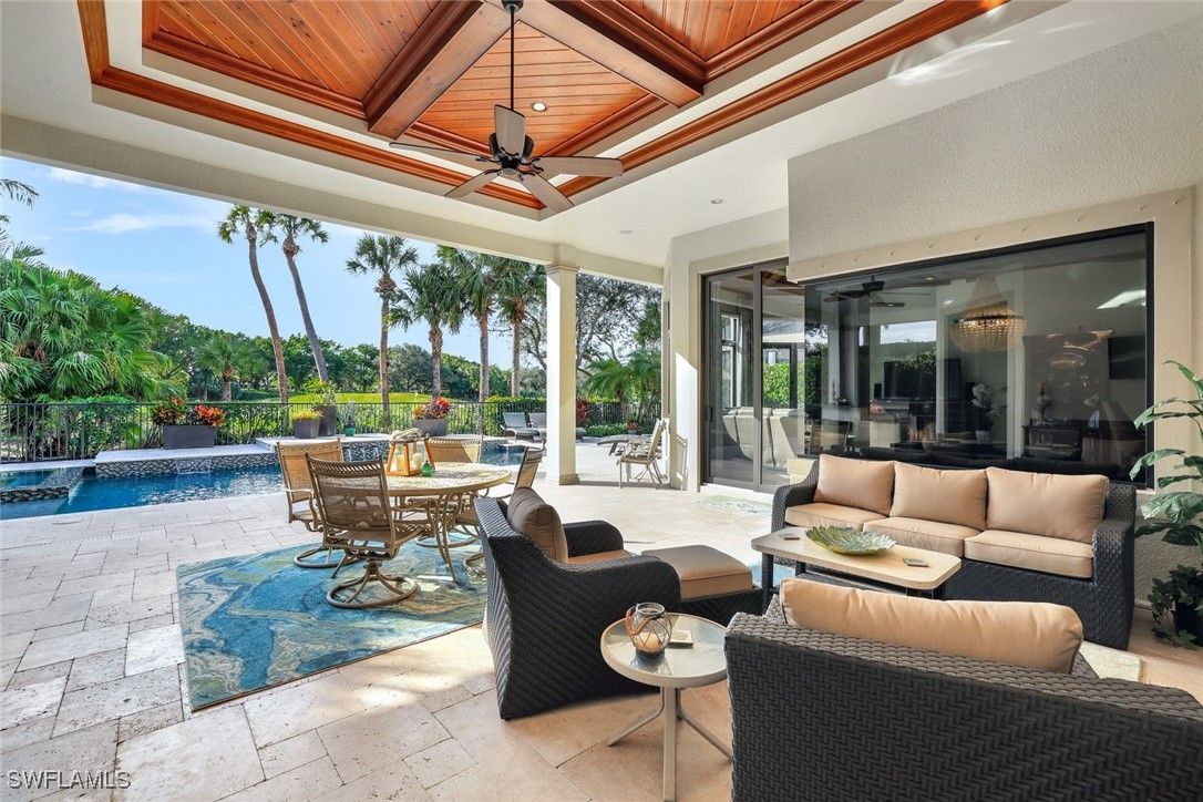 Your Dream Florida Home Awaits! Step into a world of luxury in this stunning custom home in Majorca at Fiddler’s Creek, perfectly situated on a prime golf course lot. You’ll love the spacious bedrooms, each with their own private en-suite bathroom, offering ultimate comfort and privacy. The soaring 12-14 ft ceilings create an open, elegant vibe, while the chef’s kitchen, cozy den, living room, great room, and formal dining area make hosting unforgettable gatherings a breeze. Your backyard is a resort-style paradise, with travertine floors flowing into a covered lanai featuring remote-controlled screens, overlooking the scenic hole 7 green. Dive into the open-air saltwater pool and spa, or fire up the granite outdoor kitchen with dual grills for al fresco dining. Plus, there’s an extra full pool bath for convenience. The primary suite is your personal retreat, boasting dual closets, direct pool access, separate vanities, a Roman shower, and a luxurious soaking tub. You’ll also enjoy practical perks like an air-conditioned 3-car garage, a new tankless water heater, a whole-house generator, and a Kinetico water system. This home comes with high-end furnishings, built-in speakers, powered blinds, and the ease of a maintenance-free community. Enjoy the incredible amenities at Fiddler’s Creek Club, spa, award-winning golf course, fine dining, adult and children’s pools, hot tub, fitness center, tennis/pickleball courts, jogging/ bike paths, and a Marco Island Beach Club membership. Skip the wait for golf with a transferable social membership to the Marriott club! This isn’t just a home- it’s your Naples luxury lifestyle come to life.