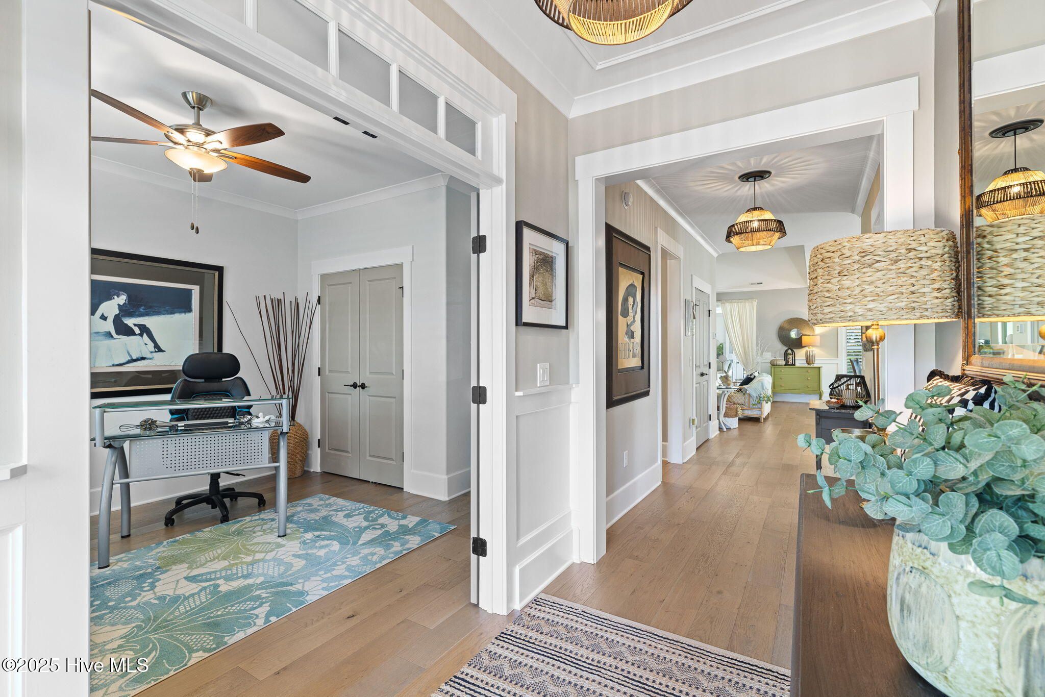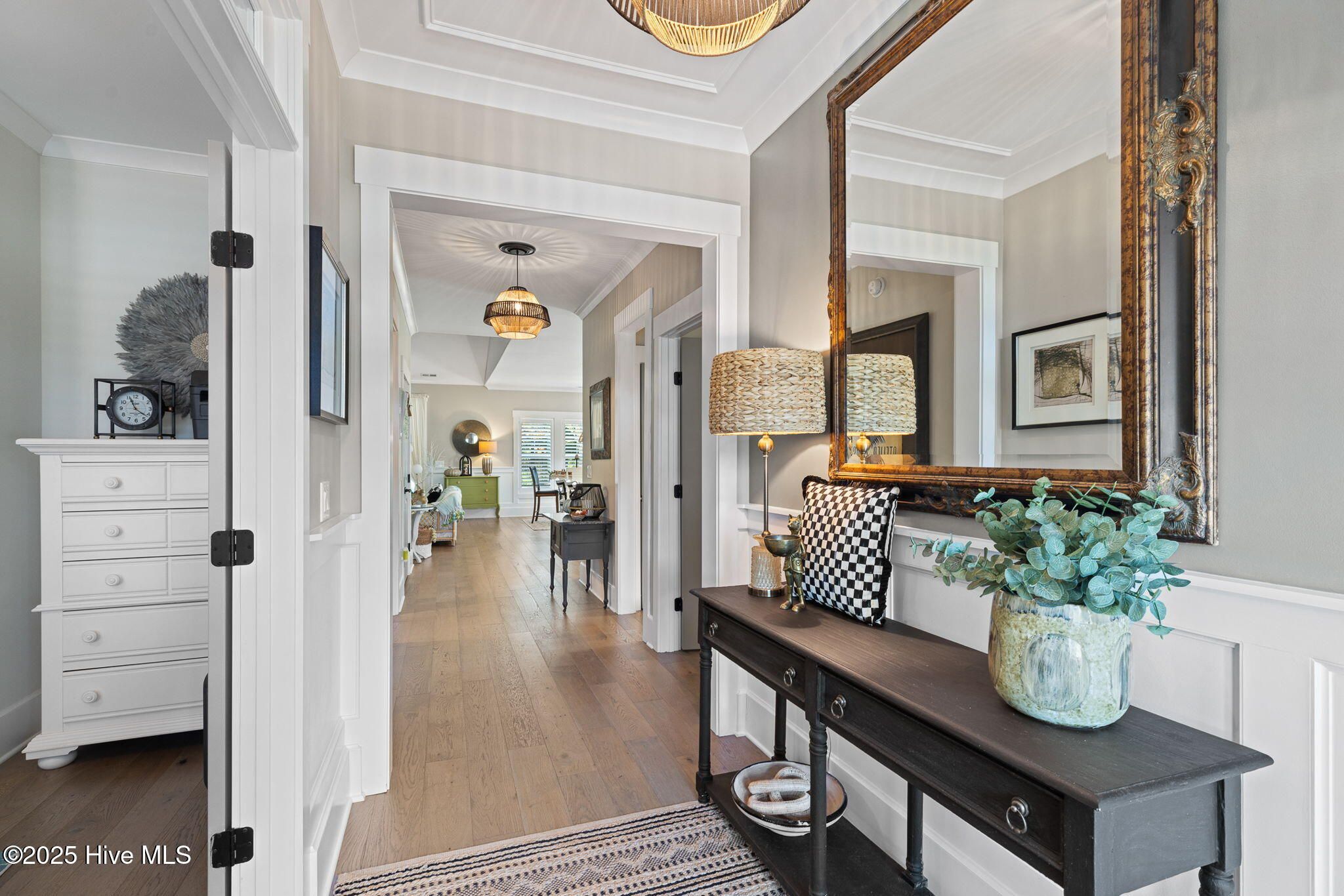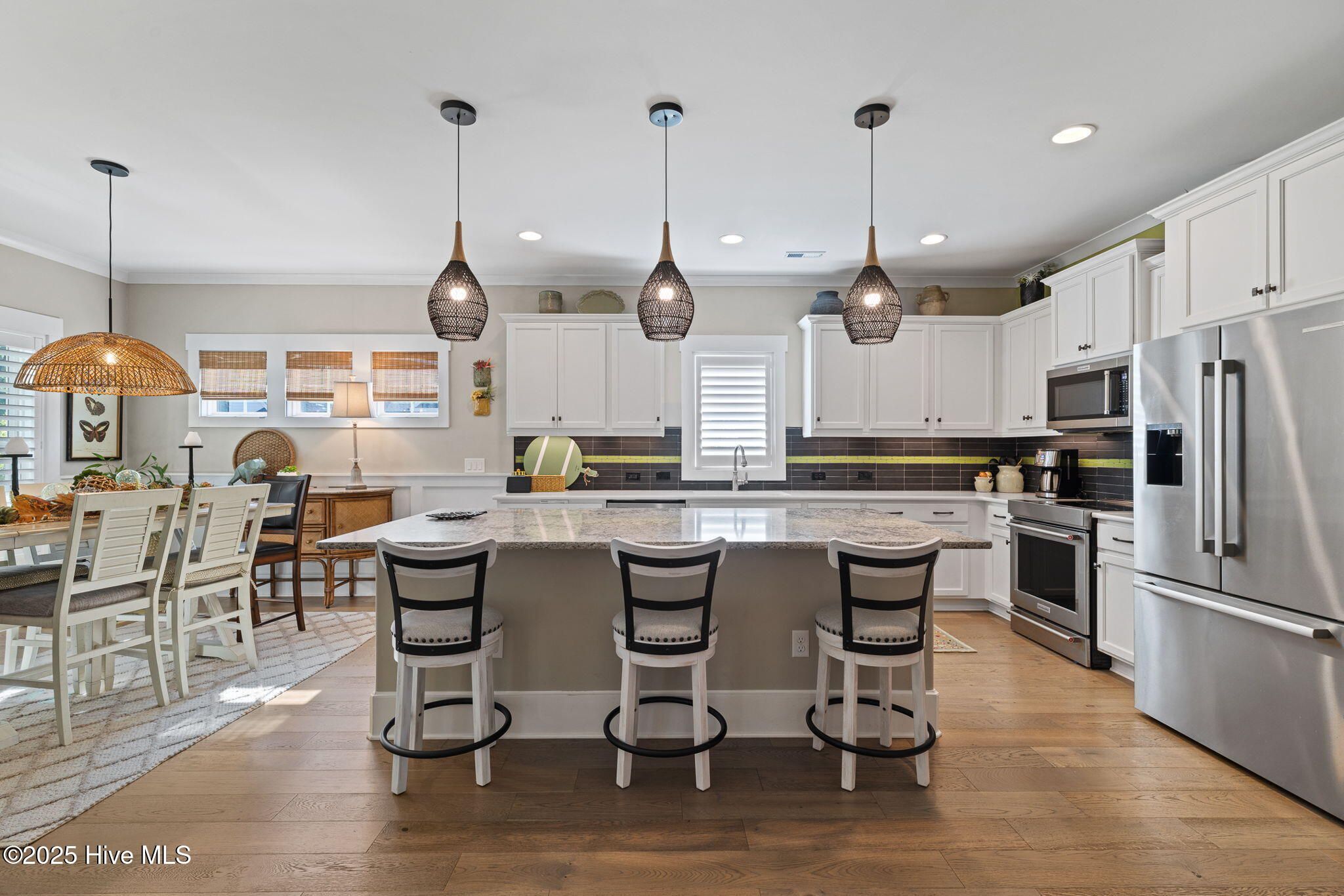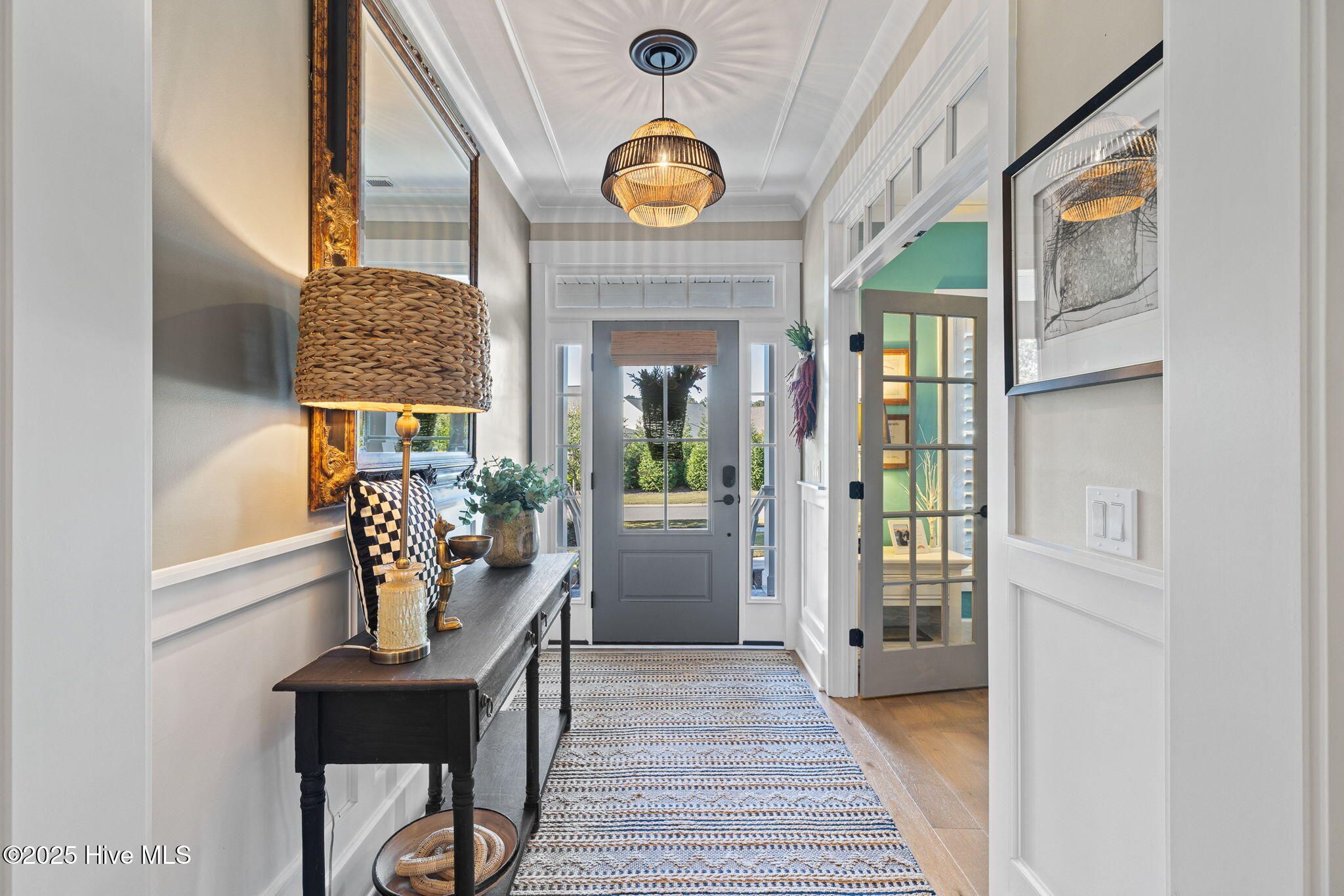 Step into this like-new home that shines with thoughtful upgrades and modern finishes throughout! From the moment you arrive, you'll be impressed by the inviting front porch, wide driveway, and oversized 3-car side-load garage—perfect for guests or extra storage. Inside, the open floor plan welcomes you with French oak hardwood floors, abundant natural light, and a seamless connection between the living, dining, and kitchen areas. The gourmet kitchen is the heart of the home, featuring upgraded quartz countertops, sleek appliances, and an induction range—ideal for any home chef. A bright enclosed sunroom offers additional living space, complete with sliding glass windows and its own dedicated HVAC zone for year-round comfort. The owner's suite is a retreat of its own, highlighted by vaulted ceilings and a luxurious en suite bath boasting a custom tile shower and elegant finishes. A guest suite with a full bath and tiled shower provides privacy and comfort for visitors, while the front bedroom or study with glass French doors makes a perfect home office. Step outside to enjoy beautifully upgraded landscaping with mature trees and an expansive backyard designed for relaxation or entertaining. Located within the desirable gated community of Compass Pointe, residents enjoy resort-style amenities including an indoor and outdoor pool, lazy river, fitness facilities, pickleball and tennis courts, dog park, kayak launch, walking trails, and an on-site golf course. All just minutes from the shops, restaurants, and historic charm of downtown Wilmington—and seven beaches within a short drive!