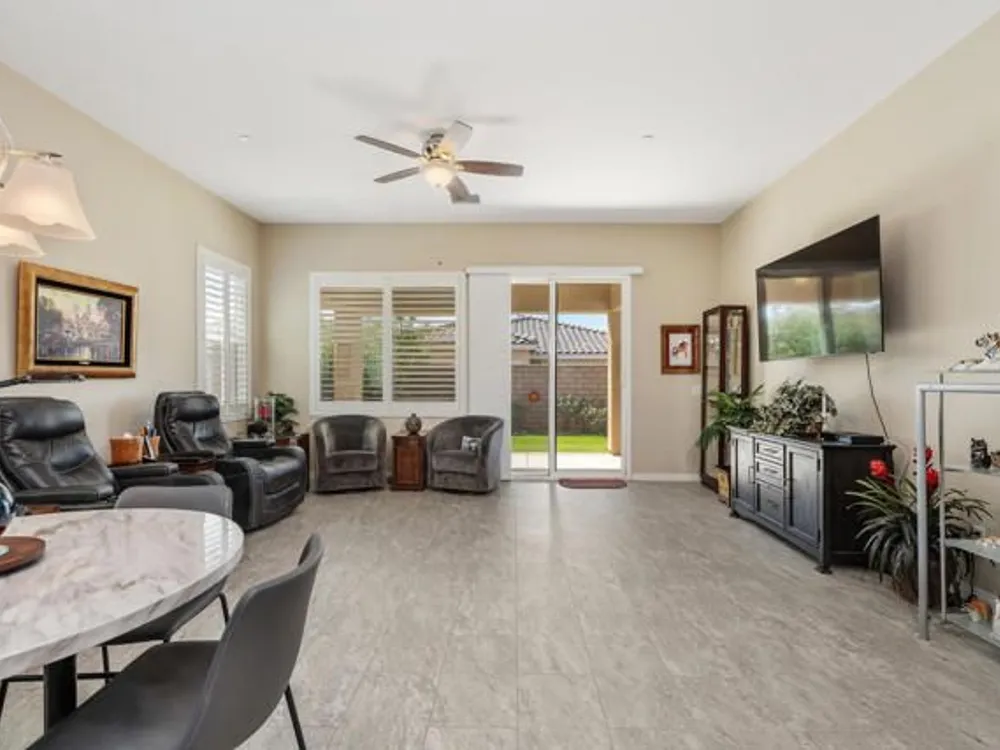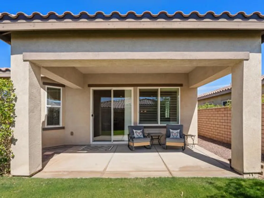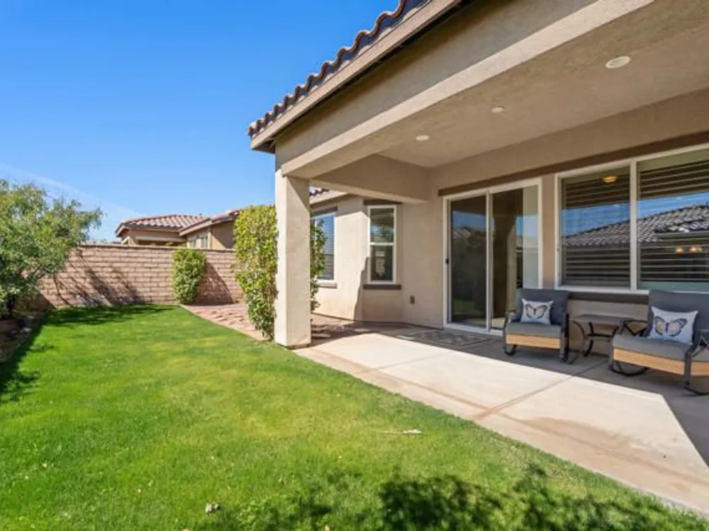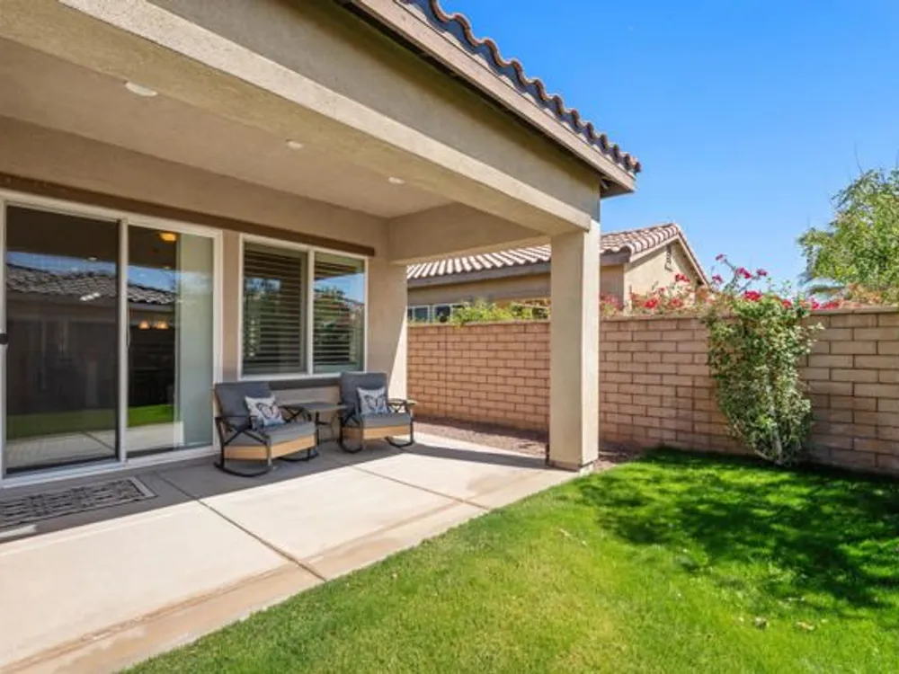 Live Your Best Life - at a Fraction of the Cost with this Rare Assumable Mortgage.This thoughtfully designed 2-bedroom, 2-bathroom home with a versatile den is perfect for a home office, creative space, or guest room. The open-concept layout creates an inviting atmosphere for both entertaining and everyday living. The chef-inspired kitchen features stunning granite countertops, stainless steel appliances, and a spacious walk-in pantry--ideal for culinary adventures.With 1,623 sq ft, this home offers the perfect balance of space and low-maintenance living.Step outside into your private retreat: a covered patio and flat, south-facing backyard offer the perfect canvas for a garden, a morning coffee spot, or evening gatherings. Just across the street, you'll find a peaceful green space--perfect for relaxing or connecting with neighbors while enjoying the desert landscape.Need extra room? The oversized 2-car garage includes space for a golf cart, hobby station, or additional storage.Welcome to Four Seasons at Terra Lago - A 55+ Resort-Style Community. You'll enjoy a beautifully designed clubhouse with social gathering areas. A modern fitness center, indoor/outdoor pools and courts for tennis, basketball and bocce. A well-stocked library, craft room and a variety of clubs from book discussions to watercolor painting.Whether you're seeking adventure, wellness, or community connection, Four Seasons at Terra Lago offers it all.Just minutes from dining, shopping, and entertainment at Fantasy Springs Resort and Spotlight 29 Casino, you'll love the convenience of your location.*This assumable VA loan at 2.75% is available to qualified buyers--even if you're not a veteran. Loan must be serviced through Freedom Mortgage, and buyers must meet their qualification criteria.