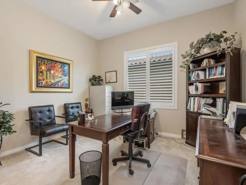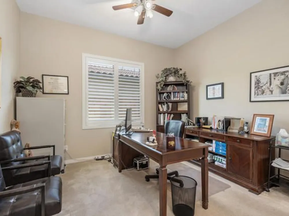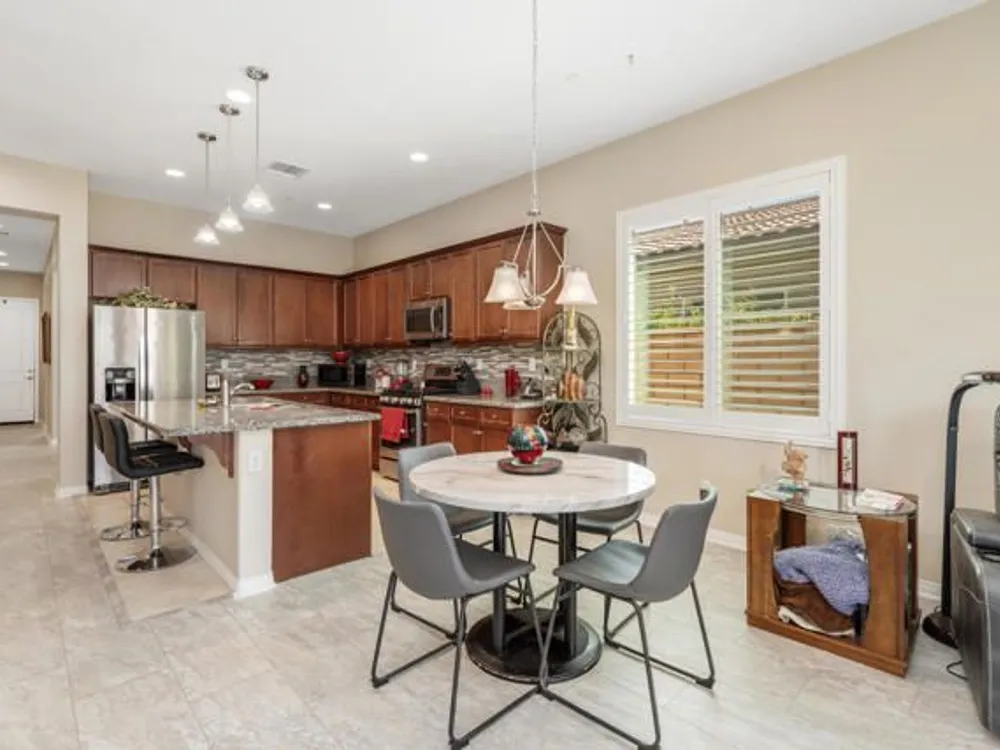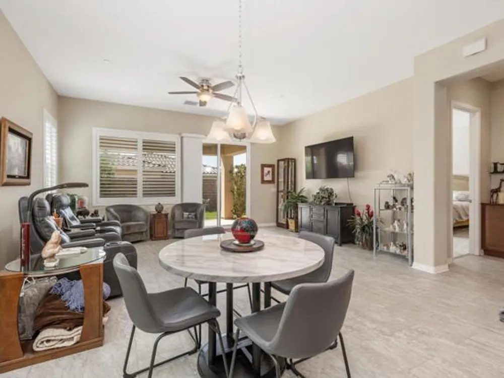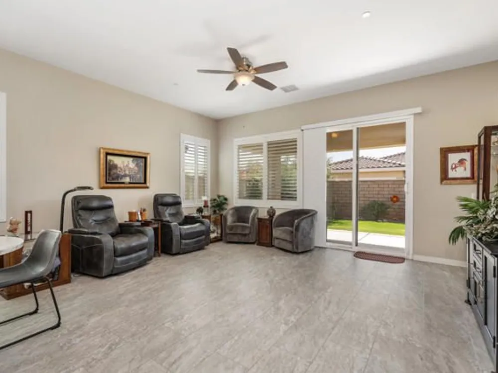Live Your Best Life - at a Fraction of the Cost with this Rare Assumable Mortgage.This thoughtfully designed 2-bedroom, 2-bathroom home with a versatile den is perfect for a home office, creative space, or guest room. The open-concept layout creates an inviting atmosphere for both entertaining and everyday living. The chef-inspired kitchen features stunning granite countertops, stainless steel appliances, and a spacious walk-in pantry--ideal for culinary adventures.With 1,623 sq ft, this home offers the perfect balance of space and low-maintenance living.Step outside into your private retreat: a covered patio and flat, south-facing backyard offer the perfect canvas for a garden, a morning coffee spot, or evening gatherings. Just across the street, you'll find a peaceful green space--perfect for relaxing or connecting with neighbors while enjoying the desert landscape.Need extra room? The oversized 2-car garage includes space for a golf cart, hobby station, or additional storage.Welcome to Four Seasons at Terra Lago - A 55+ Resort-Style Community. You'll enjoy a beautifully designed clubhouse with social gathering areas. A modern fitness center, indoor/outdoor pools and courts for tennis, basketball and bocce. A well-stocked library, craft room and a variety of clubs from book discussions to watercolor painting.Whether you're seeking adventure, wellness, or community connection, Four Seasons at Terra Lago offers it all.Just minutes from dining, shopping, and entertainment at Fantasy Springs Resort and Spotlight 29 Casino, you'll love the convenience of your location.*This assumable VA loan at 2.75% is available to qualified buyers--even if you're not a veteran. Loan must be serviced through Freedom Mortgage, and buyers must meet their qualification criteria.