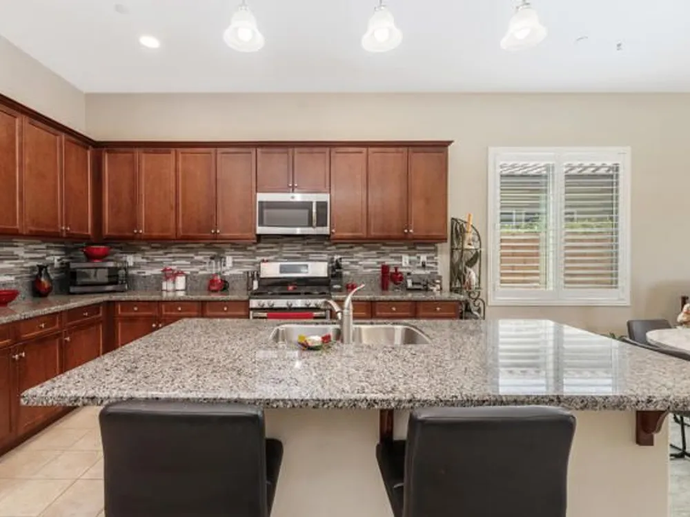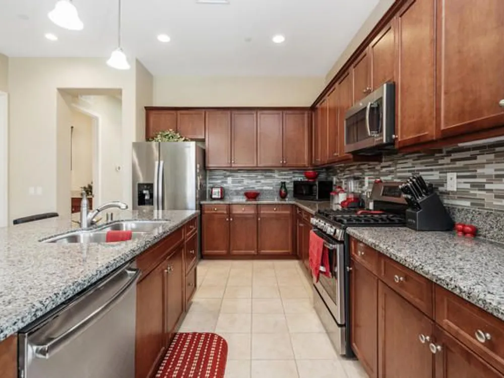 - Vented Exhaust Fan, Microwave, Gas Oven, Gas Cooktop, Water Line to Refrigerator, Refrigerator, Dishwasher, Range Hood