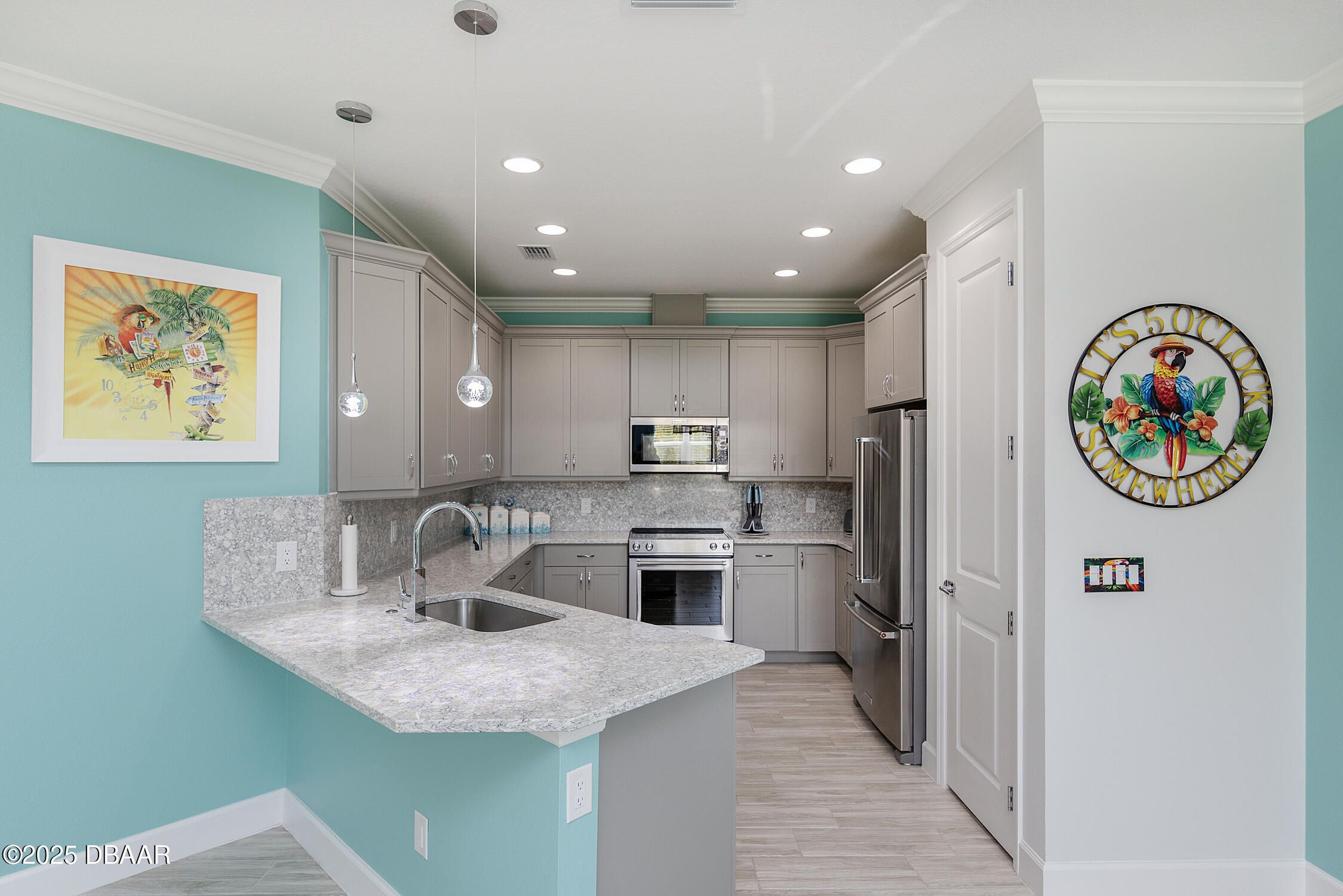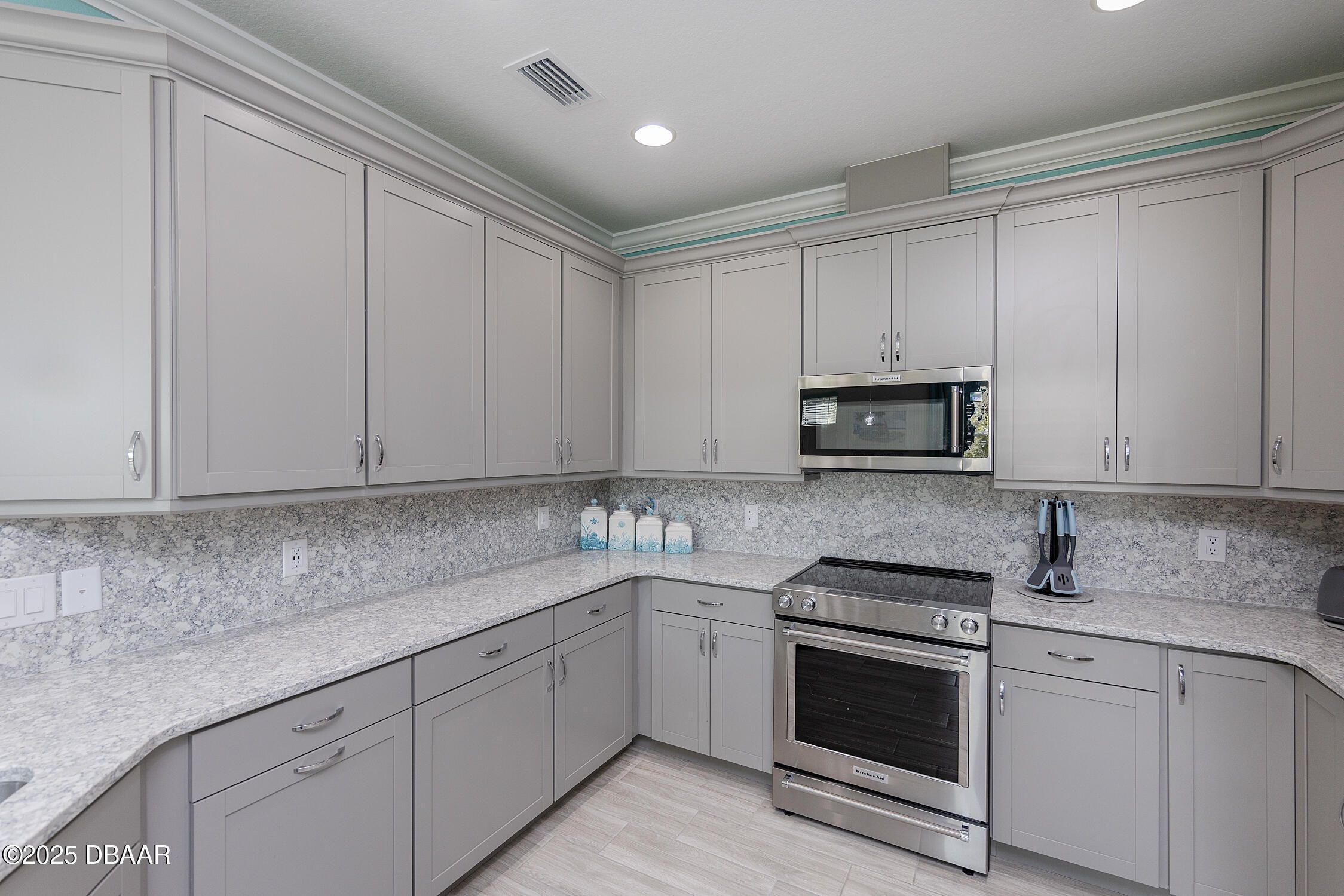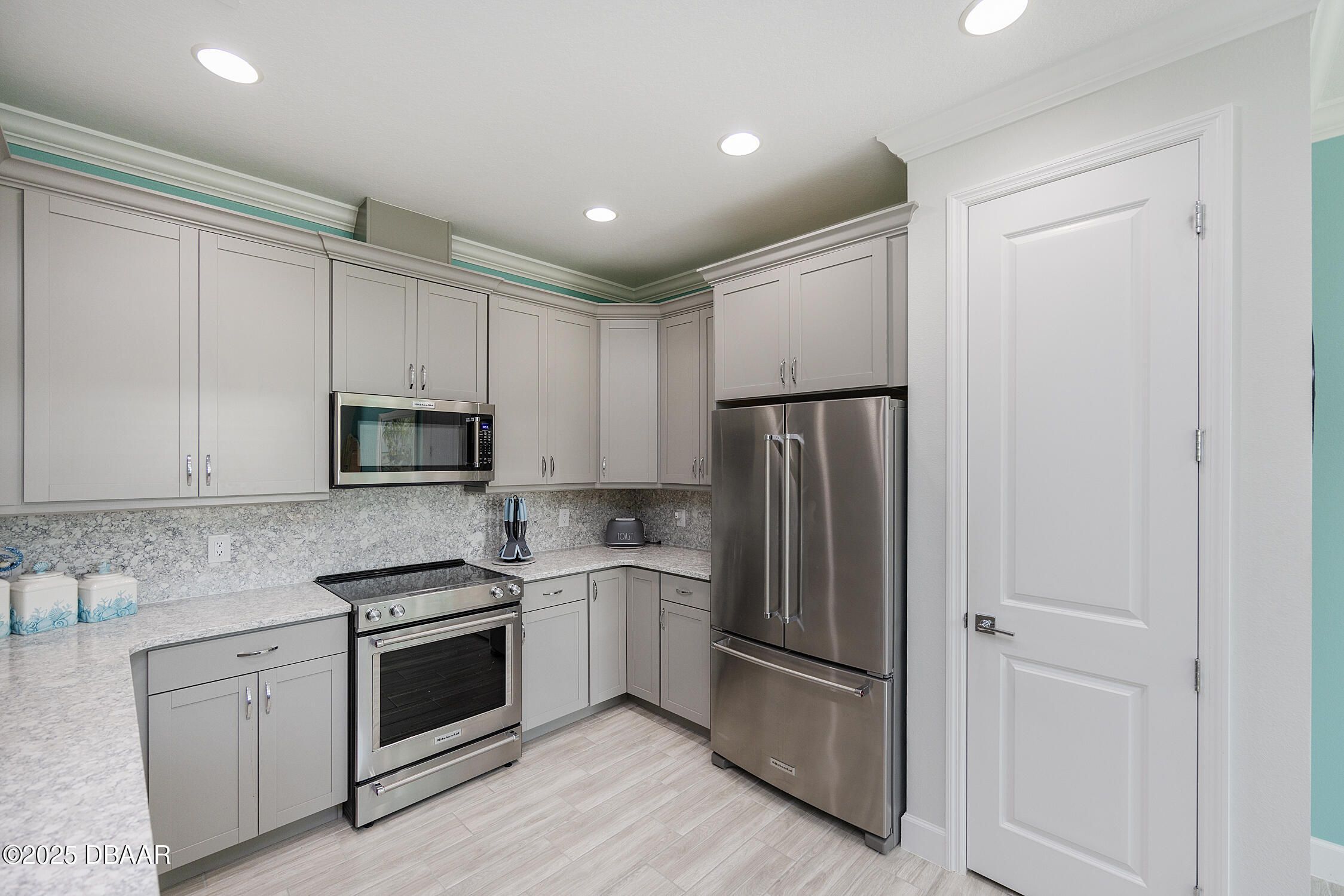Welcome to your rare opportunity for a Nevis model packed with upgrades on a highly desirable lot! Backing to a peaceful preserve, this home features an extended lanai with room for a potential private pool, and has extra privacy with no neighbor on one side! Plus, there is a gas line already installed for your future grill setup. Inside, you'll find elegant 8-foot doors, 5¼-inch baseboards, crown molding, and beautiful wood-look tile floors throughout. The kitchen is a showstopper with quartz countertops, matching backsplash, 42-inch cabinets, and like-new KitchenAid appliances—plus, the stove has never even been used! Additional highlights include recessed lighting, upgraded fixtures and ceiling fans, and a brand-new washer and dryer. The builder's warranty is still in effect as well! This home blends luxury, comfort, and community in the best way possible. Latitude Daytona is among the most sought neighborhoods in Florida, with residents enjoying a resort lifestyle that includes a private restaurant / bar, a beach club, multiple swimming pools, tennis, pickleball and much more. You can even drive a golf cart to the local Publix Supermarket! Don't miss out on this rare offering!