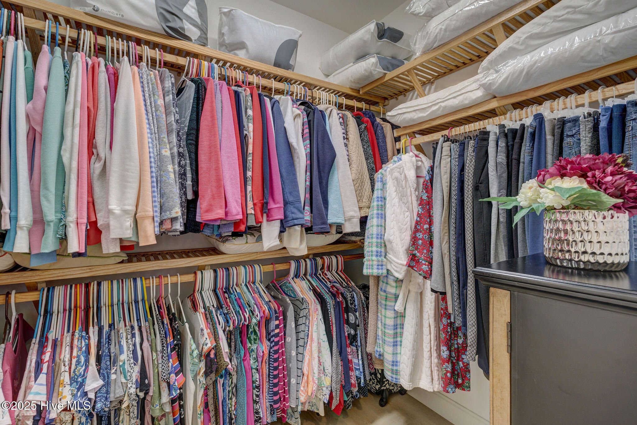 - Blinds/Shades, Sound System, Walk-In Closet(s), Walk-in Shower, Tray Ceiling(s), Entrance Foyer, Pantry, Master Downstairs, Kitchen Island, High Ceilings, Gas Log, Ceiling Fan(s), Bookcases