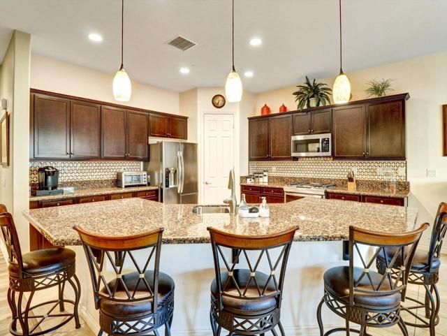 Welcome to 85642 Molvena Drive - an immaculate and spacious single-story home located in the desirable community of Four Seasons at Terra Lago in North Indio Ca. This well-maintained property offers a comfortable and open layout featuring 3 bedrooms (with den), 2 bathrooms, and over 2,400 square feet of living space. Enjoy a bright and airy great room with high ceilings, a modern kitchen with granite countertops, stainless steel appliances, and a center island perfect for entertaining. The primary suite is a private retreat with a walk-in closet and ensuite bath with dual vanities. Step outside to a beautifully landscaped backyard with a covered patio--ideal for relaxing or entertaining. Located in a gated community with low HOA fees, you'll enjoy access to walking paths, lakes, golf courses, and close proximity to schools, dining, shopping, and the I-10 freeway. Whether you're looking for a primary residence, vacation home, or investment property, this home checks all the boxes! Furnishings available outside of escrow. Call today @ 760-574-2299 for a private showing