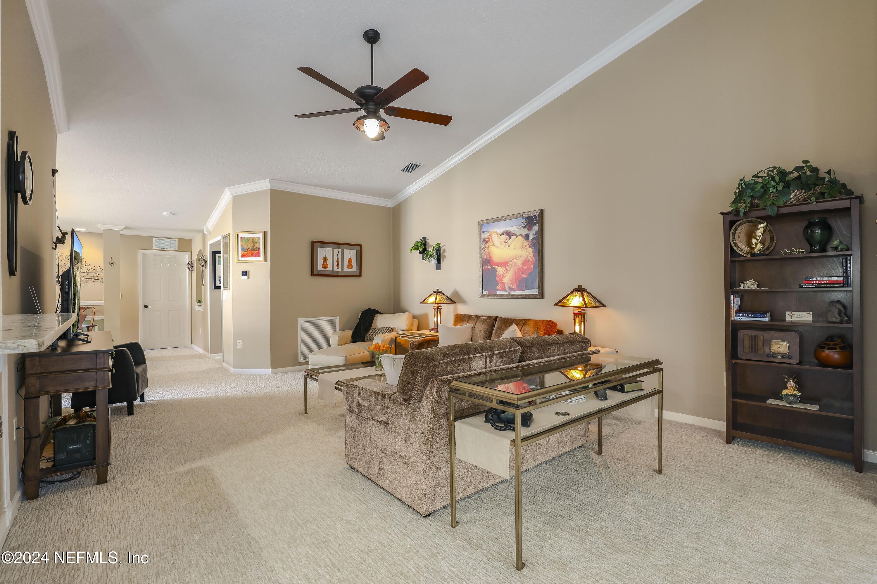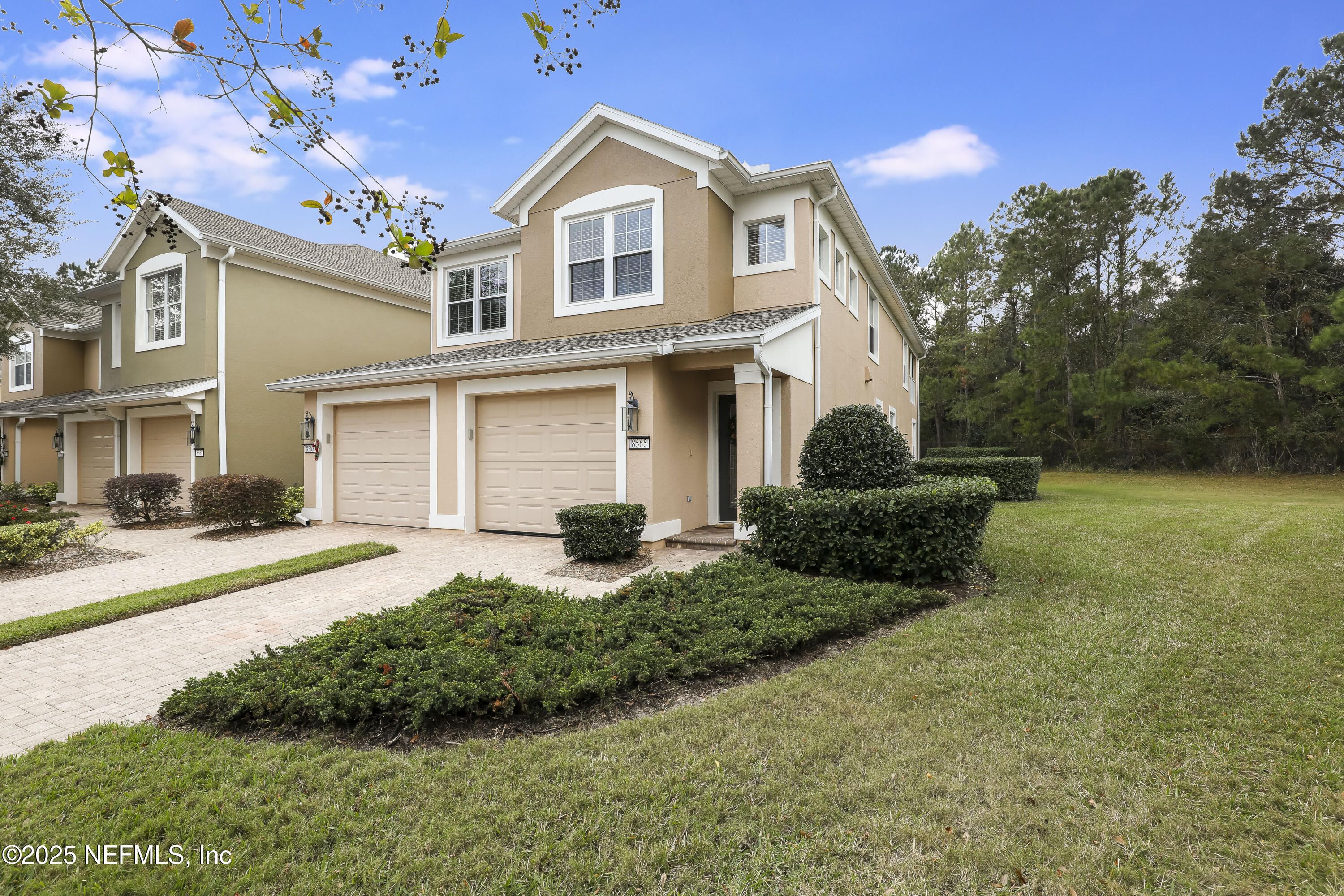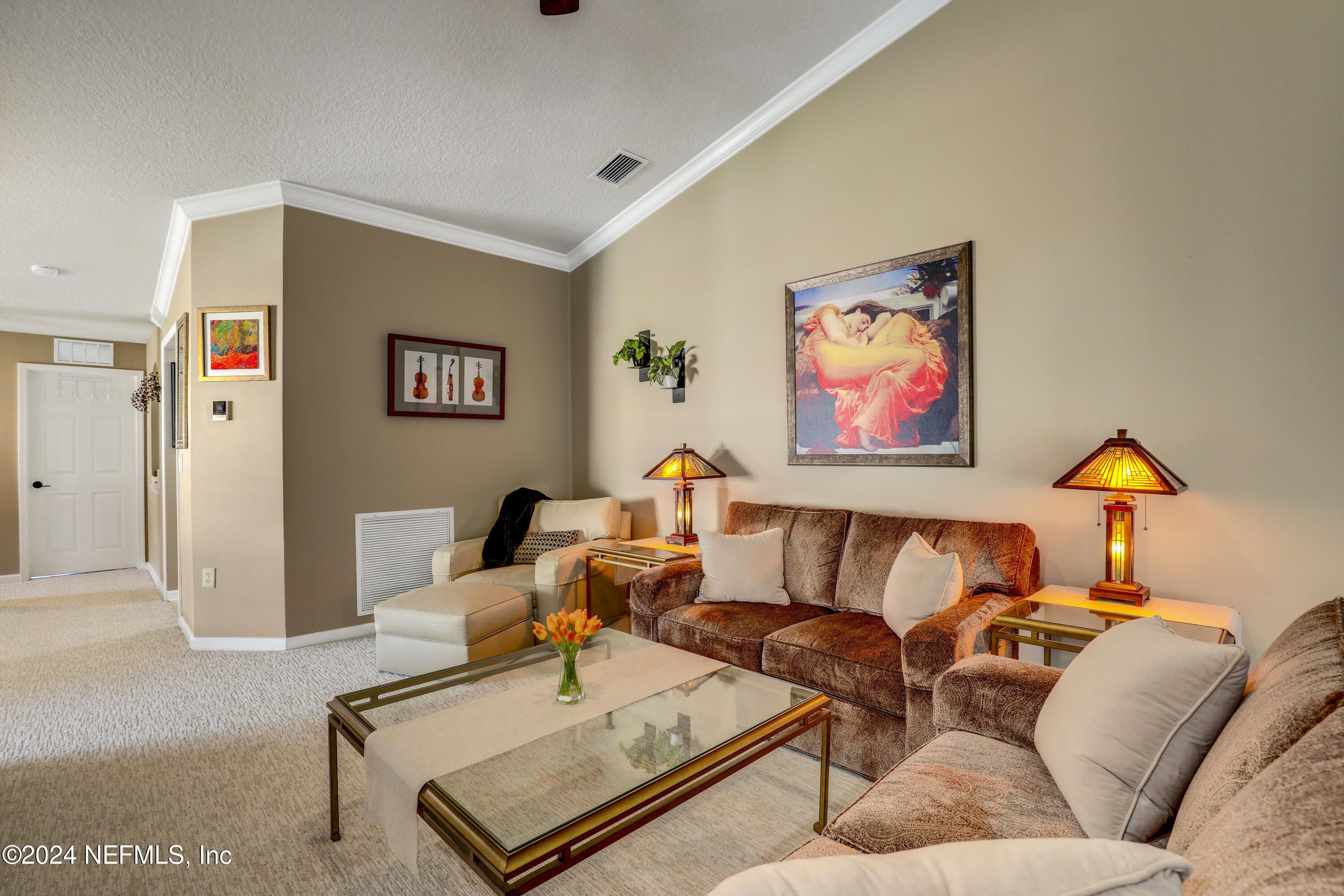 ** END UNIT ** GATED COMMUNITY ** UPDATED ** Embrace effortless living in this impeccably maintained, move-in-ready home within a vibrant 55+ community. This spacious, SPLIT-BED FLOOR PLAN offers privacy and comfort, complemented by elegant finishes like CROWN MOLDING, quartz countertops, VAULTED CEILINGS. Plush carpeting adds comfort, while recent updates, including newer appliances, a 2022 WATER HEATER, newer 2021 HVAC, a RO SYSTEM/SOFTENER, and an upgraded front door with and an upgraded front door with a hard-wired, adjustable LED porch and carriage light -ensure modern convenience. A versatile OFFICE/FLEX SPACE provides extra room for hobbies or work. Enjoy a HUGE SCREENED BALCONY that overlooks a serene NATURE PRESERVE, ensuring privacy and no neighbors ever behind the unit. Constructed with durable block, this quiet home provides exceptional sound insulation. A pavered driveway and extra parking spaces nearby offer convenience for guests. This safe and friendly community boast a calendar full of activities, from art classes to day trips. Plus, exterior maintenance, including roof, window cleaning, and lawn care, are taken care of. So you can simply relax and enjoy the easy life. Schedule your showing today!