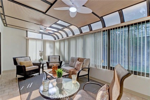 Very Popular Laguna Model 3 Br Single Story End Unit with Solarium Room. Private Location with Surrounding Greenery. Large Living Room with Vaulted Ceiling and Skylight. Solarium Room adds so much extra sq ft of Living Space. Newly Painted. New Lighting. New Door & Cabinet Hardware t/o. New Ceiling Fan and Lights in each Br and in Solarium Room with Nice dimmers throughout. All the Outlets and Switches have been newly replaced with Decora. All White Kitchen with Updated Countertop and Refaced Cabinetry. One of the Guest Brs has a Murphy Bed providing the perfect space for an Office and a place for Guest to stay overnight. The Showers have been Newly Reglazed. New Bath Exhaust Fans. The property has been Repiped. Currently the Only 3 Br Single Story for sale so Don't Miss Out! Private Laundry Closet with Included Washer and Dryer. Garage has an End spot location with Roll Up Garage Door. Feels Like Being at a Resort with a Fabulous Recreation Center. 2 Pools, 2 Spas with Main Rec Center Pool being almost Olympic Size! Tennis Courts, Pickleball Courts, Ping Pong, Dances, Trips, Movies, Clubs, Parties, Concerts, Fitness Center, Fitness classes-Water Aerobics, Yoga & Zumba, Woodshop, Chorale, Quilters, Art & Ceramics Clubs & Classes, Billiards, Putting Green, Library & Much More. Well Maintained Grounds with Mature Trees. Hunt Landmark is located close to the Post Office and Grocery Store and Famous Beaches of Huntington Beach. Near the HB Pier, Downtown Area & Pacific City. You are Close to Shopping and the Post Office. 24 Hr Guard Gated 55+ Community Near the Ocean (Approx.1.2 Miles).