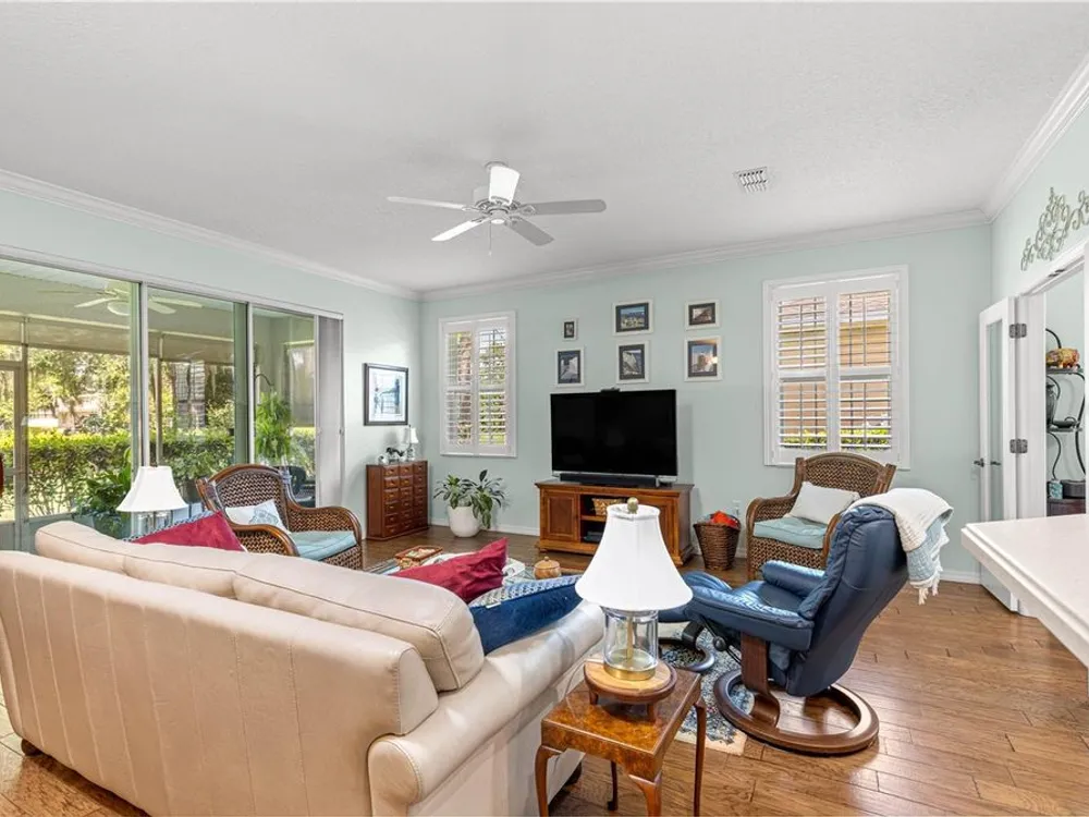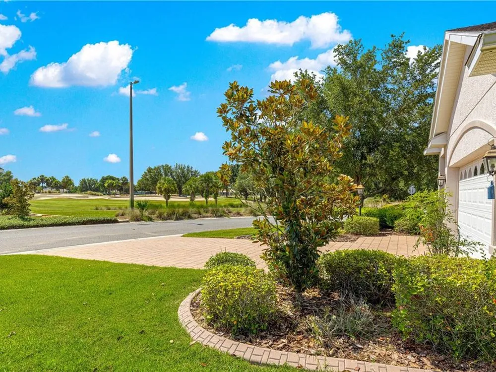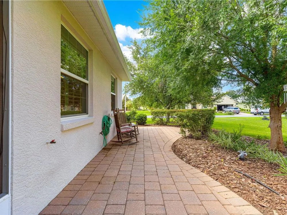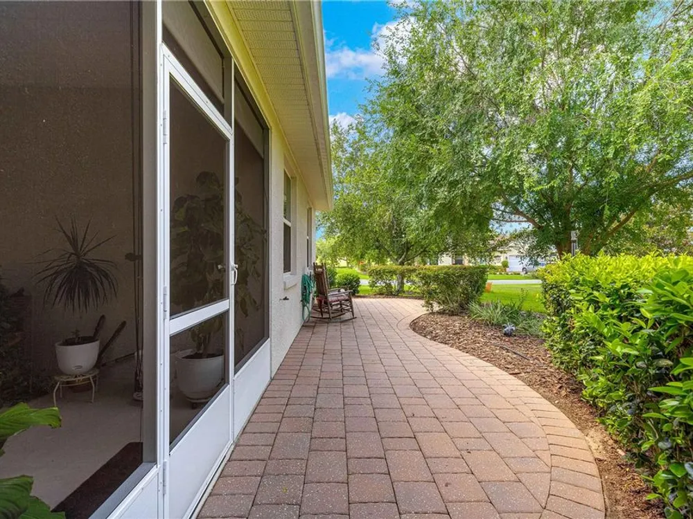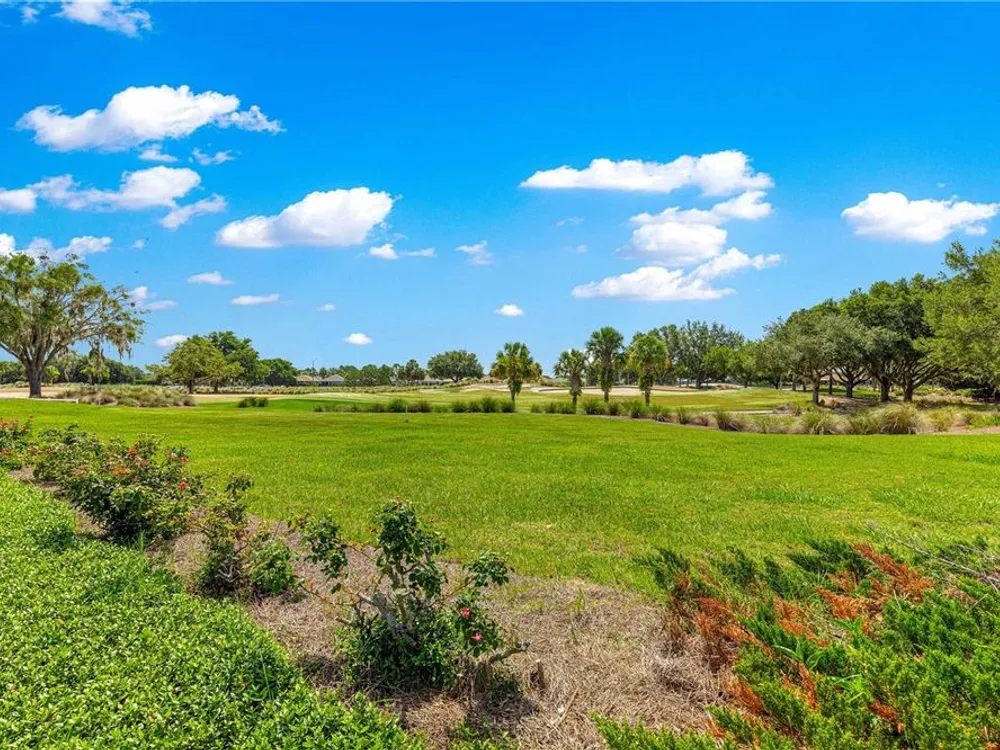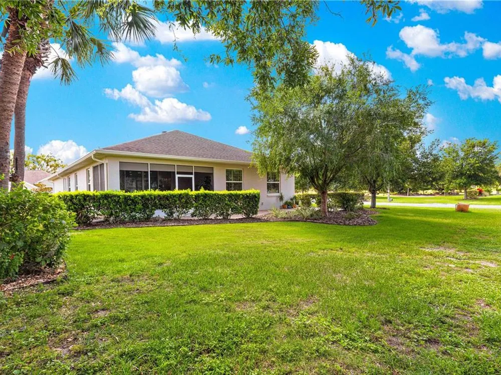 Welcome to this wonderful home on a corner home site and across from the 1st green, and the 2nd tee box, of the prestigious Candler Hills Golf Course. This 2/2 plus office is sure to impress as you pull up to the brick paved driveway and walk. The lovely front porch is a great spot to enjoy the most stunning sunrises over the 1st green. With tall ceilings with crown molding and an open kitchen this home lives larger than square footage indicates. The sculpted hardwood floors are a rarity and striking! The kitchen features solid surface counters, staggered cabinets with crown molding and stainless steel appliances. The office has French doors to make the room light and bright. Plantation shutters throughout add elegance and functionality. The primary bedroom is large but also has an added sitting area. The primary bath features dual sinks and a large walk-in shower. The screened in lanai features pull down shades for the utmost in privacy and shade. There is even a brick patio beyond the lanai for additional outdoor living area. A natural gas bib to the patio ensures that you will never run out of gas in the middle of a cook. The views from the front, rear and side of this home are just gorgeous. You have to see this home to appreciate how well it has been maintained and to truly understand how unique the location is. Schedule your private tour today!