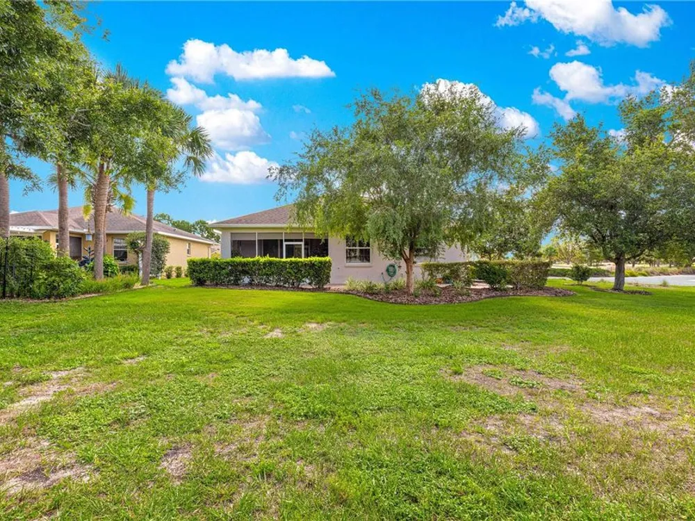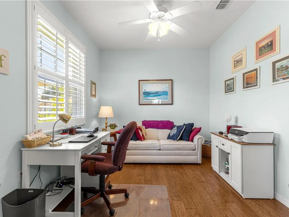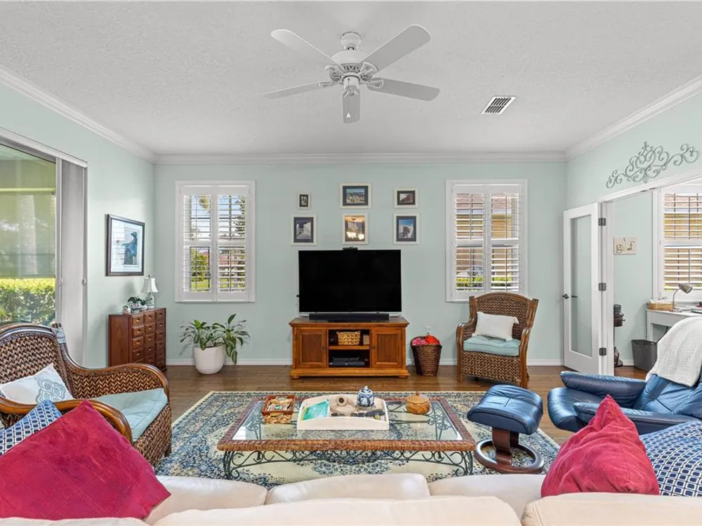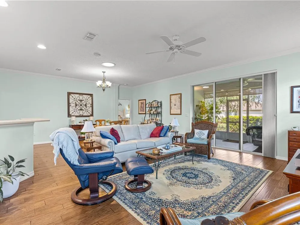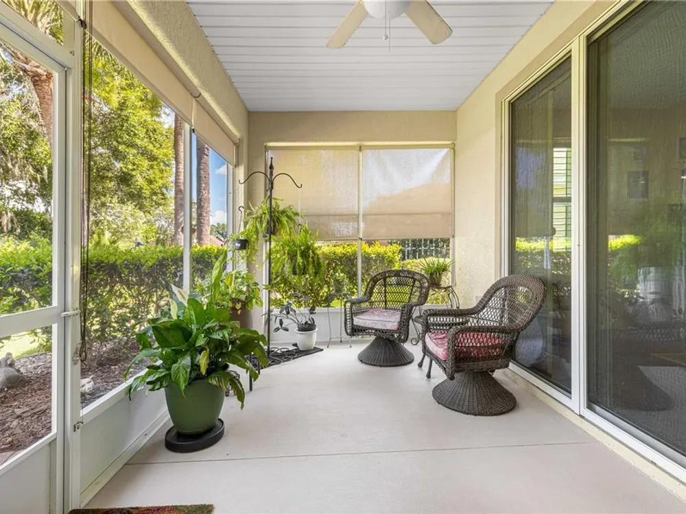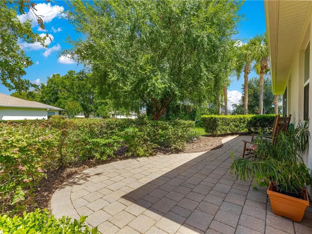 Welcome to this wonderful home on a corner home site and across from the 1st green, and the 2nd tee box, of the prestigious Candler Hills Golf Course. This 2/2 plus office is sure to impress as you pull up to the brick paved driveway and walk. The lovely front porch is a great spot to enjoy the most stunning sunrises over the 1st green. With tall ceilings with crown molding and an open kitchen this home lives larger than square footage indicates. The sculpted hardwood floors are a rarity and striking! The kitchen features solid surface counters, staggered cabinets with crown molding and stainless steel appliances. The office has French doors to make the room light and bright. Plantation shutters throughout add elegance and functionality. The primary bedroom is large but also has an added sitting area. The primary bath features dual sinks and a large walk-in shower. The screened in lanai features pull down shades for the utmost in privacy and shade. There is even a brick patio beyond the lanai for additional outdoor living area. A natural gas bib to the patio ensures that you will never run out of gas in the middle of a cook. The views from the front, rear and side of this home are just gorgeous. You have to see this home to appreciate how well it has been maintained and to truly understand how unique the location is. Schedule your private tour today!