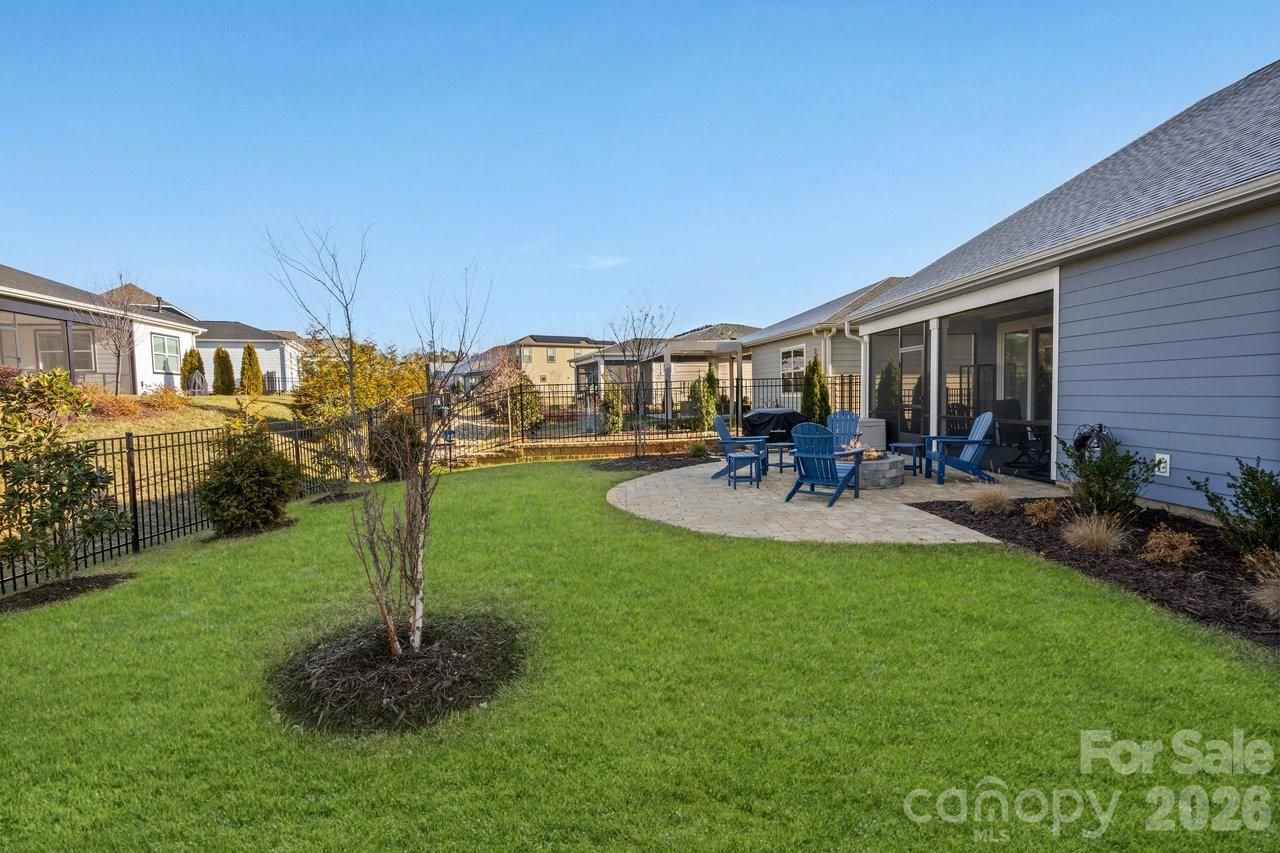 The Affirm Loft features a generous multi purpose, open, flowing floor plan. Exceptional kitchen with amazing storage/counter space, SS appliances, refrigerator, gas range, tile back splash and island breakfast bar that opens to the great room with wall mounted TV included. Dining area with wall of glass opens to a covered and screened Lanai that features an extended paver patio gas fire pit and grill connection plus a fenced yard for added entertaining options. LVP flooring throughout (no carpet) the home. Recessed & designer lighting, custom blinds and a multi use flex/office space with doors adds privacy. Primary bedroom includes an en-suite bath with dual sink vanity, walk in closet & tiled shower. Main floor has an additional guest bedroom with central bath, laundry room w/added cabinetry, (washing machine and dryer included) that connects to the 2 car extended garage. Upstairs is highlighted with an additional guest suite & full bath, 2 walk in closets providing excellent storage & family room area to spread out and relax (wall mount TV included). Trilogy Membership include Freedom Boat Club on Lake Norman plus award winning amenities