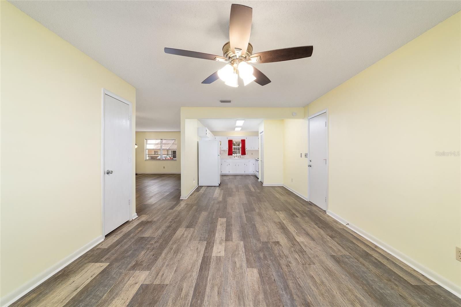 - Eat-in Kitchen, L-Shaped Dining Room, Living/Dining Room, Main Level Primary, Thermostat, Walk-In Closet(s)
