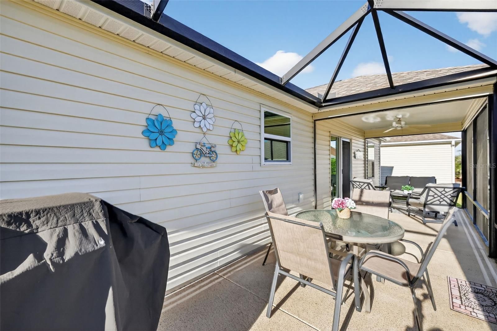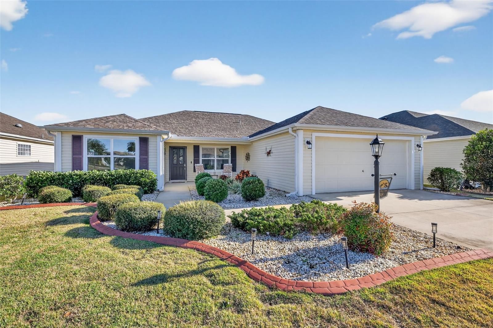 Welcome to this WONDERFUL, TURNKEY 3/2 Bougainvillea with a SCREENED LANAI and EXTENDED BIRDCAGE, IDEALLY LOCATED in the highly sought after Village of Pine Hills! MOVE IN READY! Just bring your toothbrush! From the moment you arrive, you’ll be impressed by the stone-accented CURBED landscape beds and CHARMING front porch—an inviting spot to relax and enjoy Florida’s beautiful weather! Inside, high VAULTED ceilings and an OPEN-CONCEPT design seamlessly connect the living, dining, and kitchen. LUXURY VINYL PLANK flooring flows continuously throughout the main living areas. The AMAZING kitchen features RICH, WOOD cabinetry, NEUTRAL countertops, TILE backsplash, PULL-OUT shelving, STAINLESS steel appliances, and a LARGE U-shaped CENTER ISLAND with a EAT-IN counter-height breakfast bar—perfect for casual dining and entertaining. From the dining area, step through a set of sliding glass doors into the SPACIOUS lanai with EXTENDED BIRDCAGE boasting DECORATIVELY PAINTED floors and PRIVACY LANDSCAPING. This WONDERFUL OUTDOOR RETREAT offers the perfect spot to enjoy your morning coffee, sip an evening cocktail, or relax with a good book! Back inside, the primary suite features TWO GENEROUS WALK-IN closets, and an en-suite bath with WOOD cabinetry, NEUTRAL countertops, DUAL sinks, TILED WALK-IN shower, and a separate water closet. Designed with PRIVACY in mind, the SPLIT FLOOR PLAN includes a SEPARATE guest wing and/or home office behind a POCKET DOOR. Bedroom two features a built-in closet and a large window. The second bathroom includes a WOOD vanity with a NEUTRAL top, TILED tub and shower combination, and a convenient hallway LINEN closet. The third bedroom offers double windows and a built-in closet. A centrally located interior laundry room provides additional storage with WOOD cabinetry, shelving, and a built-in UTILITY SINK. Just beyond, is the two-car garage boasting PLENTY of space for parking cars and a golf cart! DON’T MISS YOUR OPPORTUNITY TO MAKE THIS INCREDIBLE TURNKEY HOME YOUR OWN! The Village of Pine Hills is IDEALLY LOCATED near both Lake Sumter Landing and Brownwood Paddock Squares with live nightly entertainment! Close to Belle Glade Country Club and Championship Golf Course; Colony Cottage Regional Recreation Center; Sarasota Golf Practice Facility; Sharon Rose Wiechens Nature Walk and Preserve; Atlas Dog Park; and Pinellas and Colony Plazas and also CR 466A with an abundance of shopping, dining, banking, medical, and more! PLEASE WATCH OUR WALKTHROUGH VIDEO OF THIS FABULOUS, TURNKEY HOME IN AN AMAZING LOCATION and call today to schedule your Private Showing or Virtual Tour!