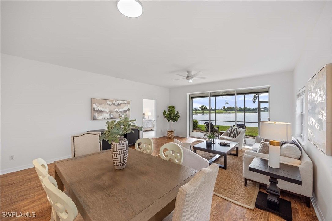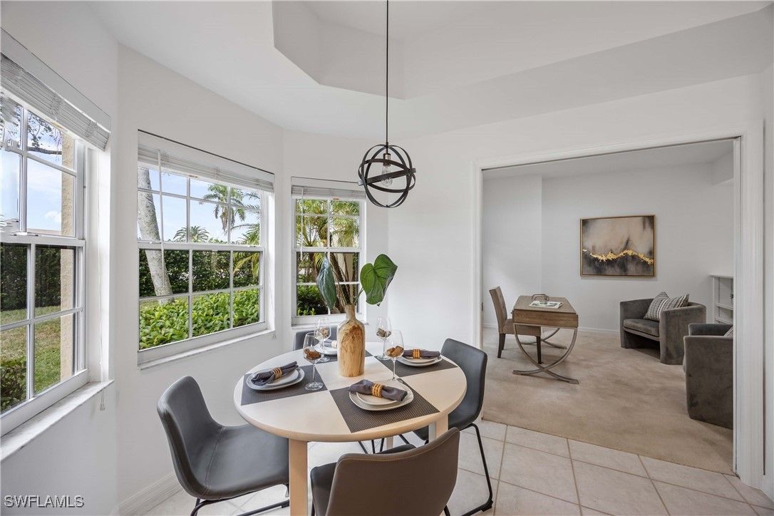 Abundant sunshine and beautiful lake views greet you each day at this charming carriage home. Tastefully updated with fresh paint and impeccably maintained. New AC 2021, new water heater 2023. Split floorpan offers large master suite with lake view and guest bedroom with adjacent full bath. Option (not mandatory) to join the award winning Players Club and Spa! Lely Resort has two public golf courses, Flamingo and Mustang. There is also the Classics which has private memberships available. Easy to show, text listing agent for instructions!
