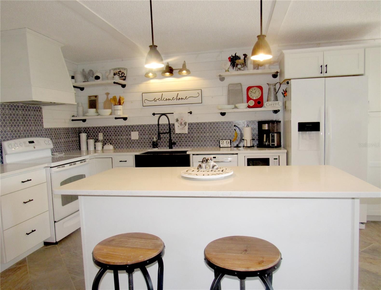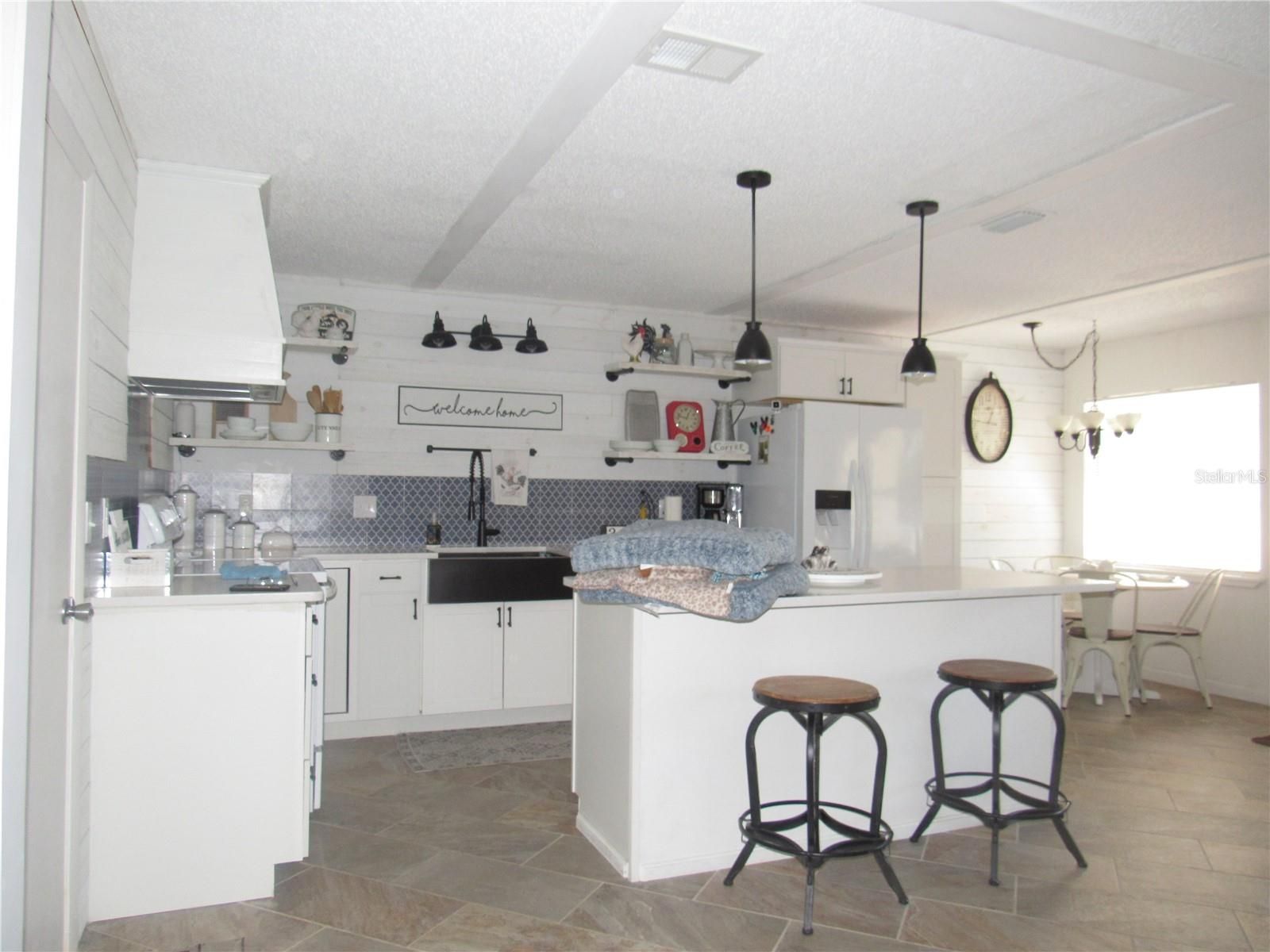This is the villa buyers wait for—and rarely find. Offered FULLY FURNISHED at a REMARKABLE PRICE, this beautifully updated villa is located in Ocala’s premier 55+ community and delivers style, comfort, and convenience in one effortless package. From the moment you arrive, the peaceful, park-like setting and charming covered front patio set the tone for a home designed for easy, elevated Florida living. Inside, porcelain tile flooring spans the entire home, leading into a show-stopping, fully remodeled modern farmhouse kitchen. Thoughtfully designed to impress, it features a deep farmhouse sink, custom cabinetry, quartz countertops, a spacious center island perfect for casual dining or entertaining, and a cozy breakfast nook. The open living area is warm and inviting, enhanced by a built-in corner fireplace that adds both character and ambiance. The spacious primary suite offers a true retreat, complete with walk-in closets featuring custom built-ins, a sleek modern vanity, and a stunning tiled walk-in shower. Enjoy seamless indoor-outdoor living from the open-concept back patio—ideal for relaxing, entertaining, or simply enjoying Florida’s year-round sunshine. Residents of On Top of the World enjoy 24/7 security and resort-style amenities including multiple pools, clubhouses, fitness and recreation centers, and golf-cart access to two nearby shopping centers. Conveniently located just minutes from healthcare, grocery stores, and restaurants, and the World Equestrain Center ALL FOR THE NEWLY REDUCED HOA FEE! This FULLY FURNISHED, move-in-ready villa offers a rare opportunity to step straight into the lifestyle you’ve been waiting for.