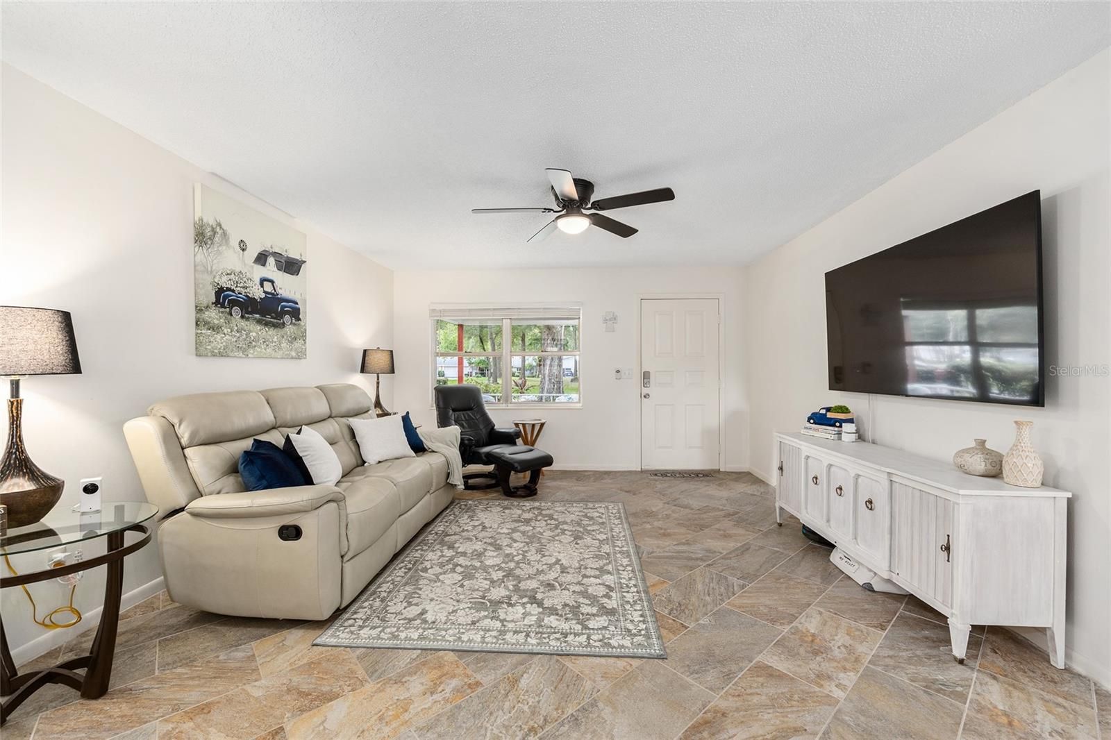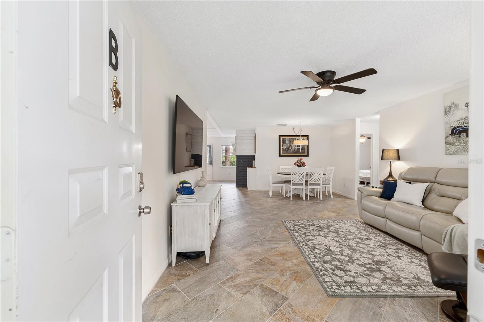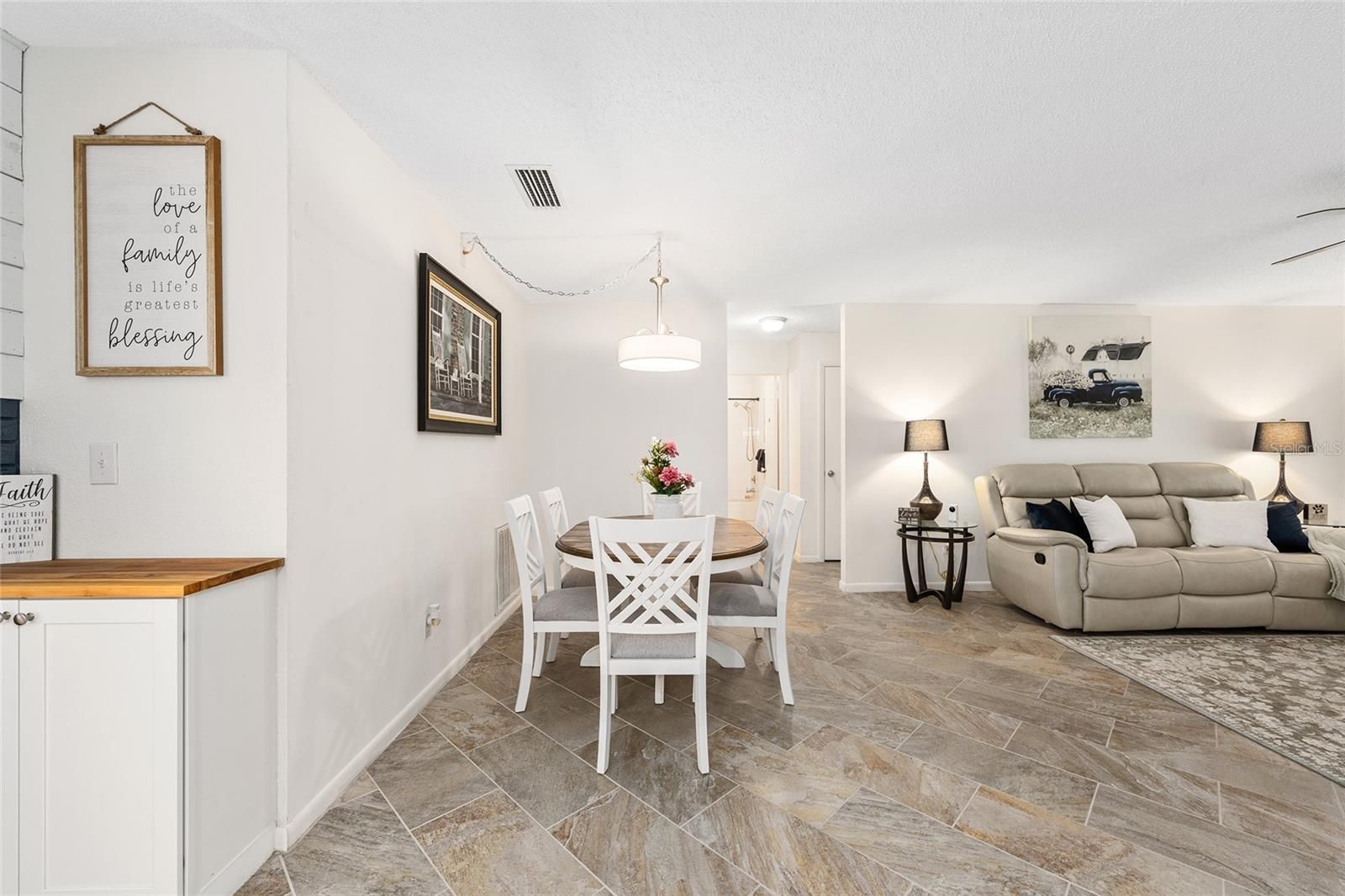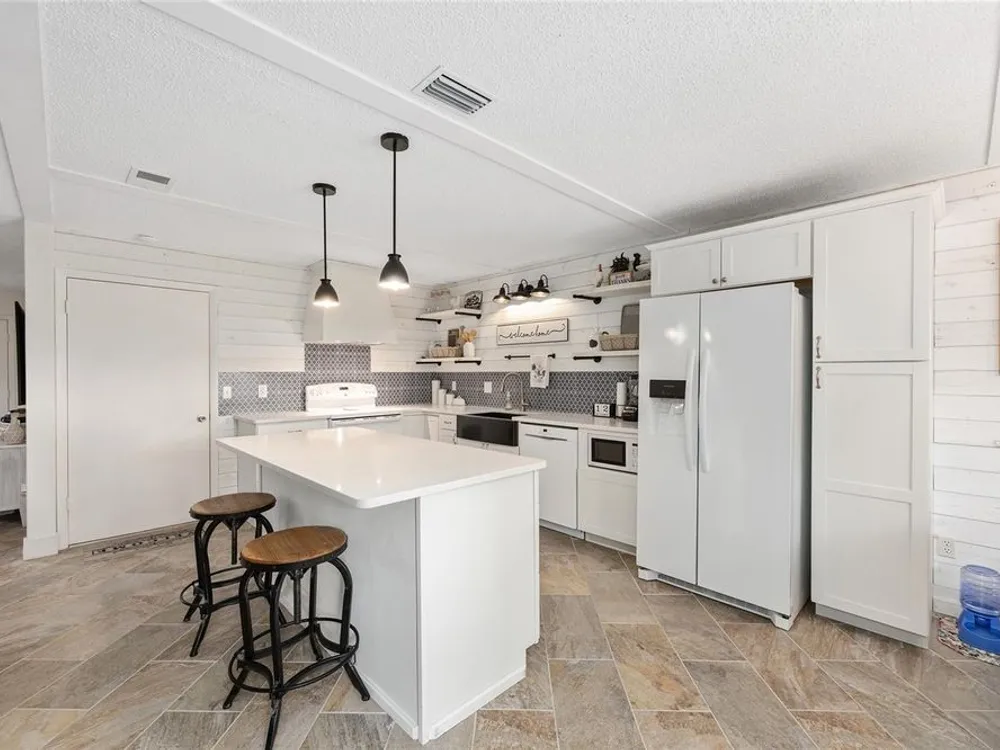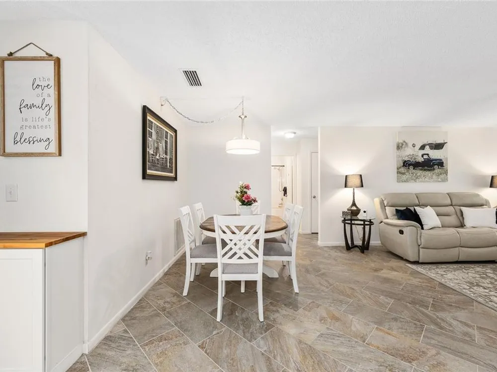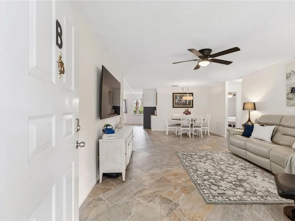 Located in Ocala’s premier 55+ community, YOU won't find another beautifully updated VILLA at such a REMARKABLE PRICE. Nestled in a peaceful, park-like setting, the home welcomes you with a charming covered front patio—perfect for enjoying your morning coffee or evening tea. Step inside to discover porcelain tile flooring throughout and a fully remodeled modern farmhouse kitchen designed to impress, complete with a cozy breakfast nook, deep farmhouse sink, custom cabinetry, quartz countertops, and a large center island ideal for casual dining or entertaining. The open living area is enhanced by a built-in corner fireplace, creating both warmth and character. Retreat to the spacious primary suite featuring walk-in closets with custom built-ins, a modern vanity, and a stunning tiled walk-in shower. Enjoy seamless indoor-outdoor living with an inviting open-concept back patio, perfect for relaxing or hosting guests. Residents of On Top of the World enjoy 24/7 security, resort-style amenities including pools, clubhouse, fitness and recreation centers, plus golf cart access to two shopping centers. Just minutes from healthcare, grocery stores, and restaurants, this home is the perfect place to enjoy your Florida lifestyle.