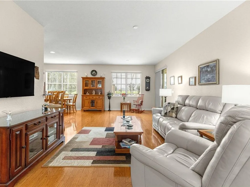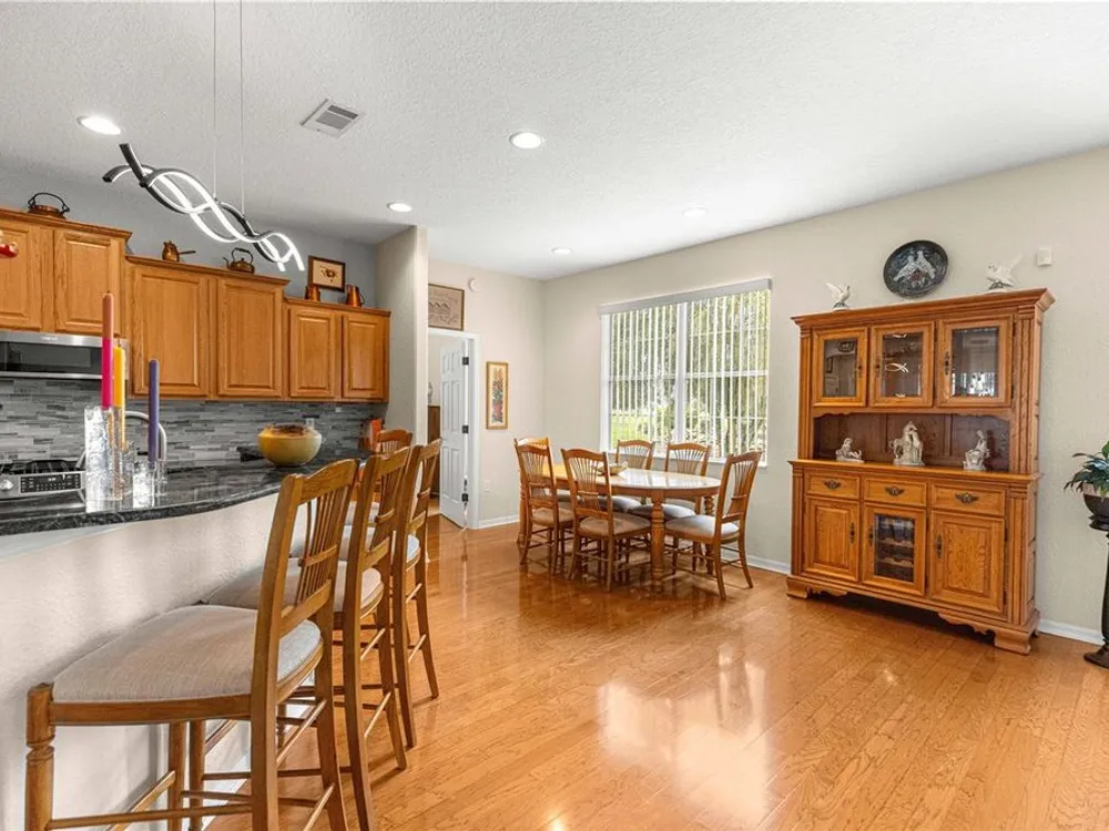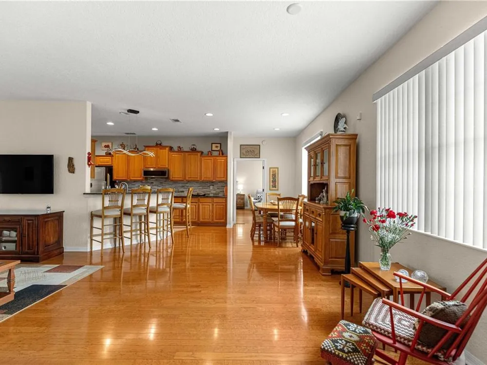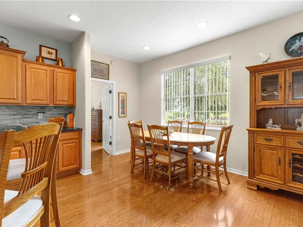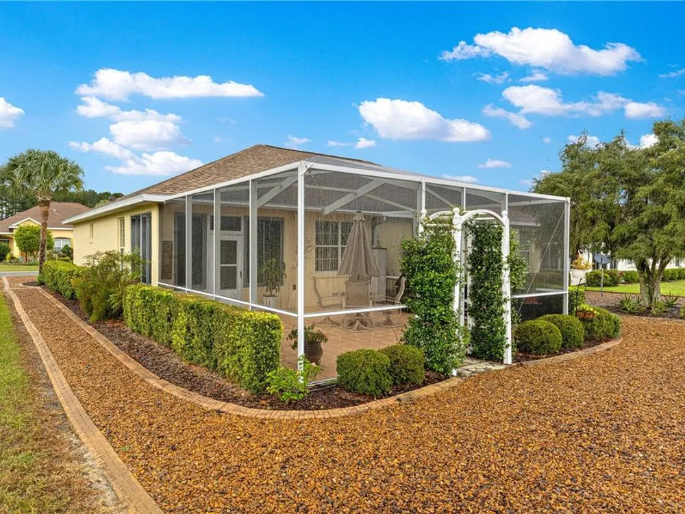 This oversized Ayreshire is located in the much sought-after 55+ community of Candler Hills in On Top of the World. It's situated on one of the very prettiest lots in Candler East on The Preserve with hard-scapes and an impressive rock wall in the rear of the home. Pull up to the paver drive and notice how much space between the homes! Once inside some of the features you will notice are: Hard wood flooring at the entrance, living room, dining room and nook. Tile flooring in kitchen, baths, Florida room and birdcage. Beautiful granite counters with wood cabinets in the kitchen and plenty of them, every chef's dream. Pretty backsplash. New lighting over the bar area. Newer stainless steel appliances including a gas range. Inside laundry with washer and dryer included. Enclosed 3 season Florida Room. HUGE birdcage on the back with wonderful, private views. Bedrooms with laminate flooring. Large primary bedroom. Primary bath with a double sink vanity and updated walk-in tile enclosed shower with a bench. There are two guest rooms perfect for family and friends. Guest bath has a tub/shower combo. The garage features an epoxy floor, helping keep it clean. Gas furnace and hot water heater. CDD PAID! Roof and A/C 2024. This home is truly move in ready! Call for your appointment to view today!